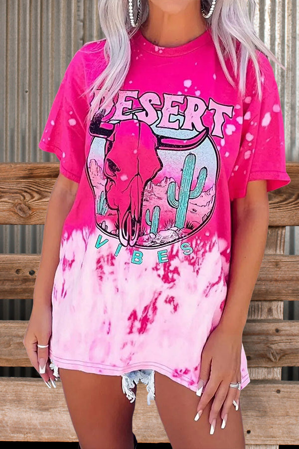 Retro Cow Head Tie-Dye Crew Neck T-Shirt