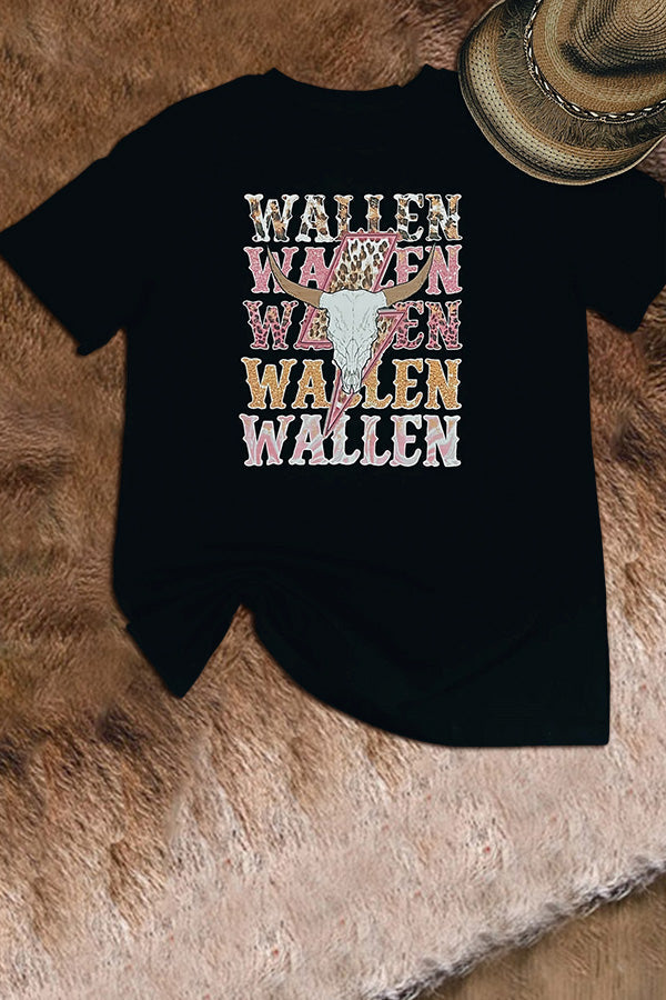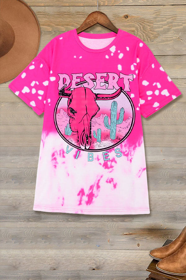Retro Cow Head Tie-dye Crew Neck T-shirt
