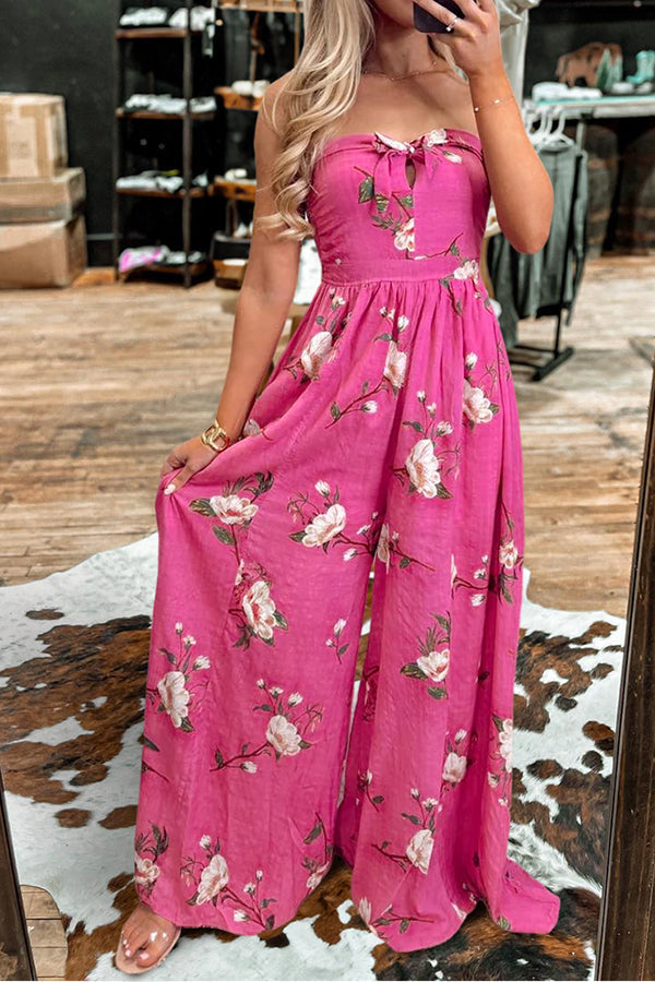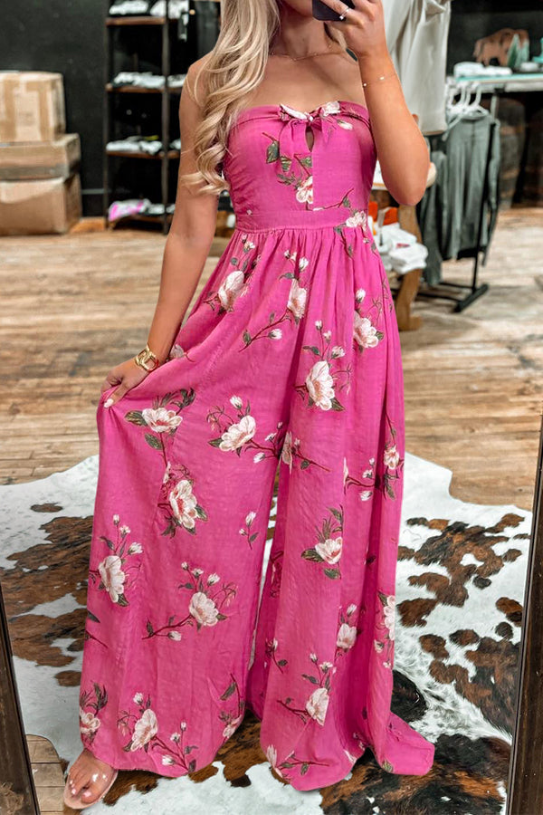 Stay on trend this season in our new casual, strapless jumpsuit. We especially love the flower print fabric and think this piece will be a new favorite in your closet!