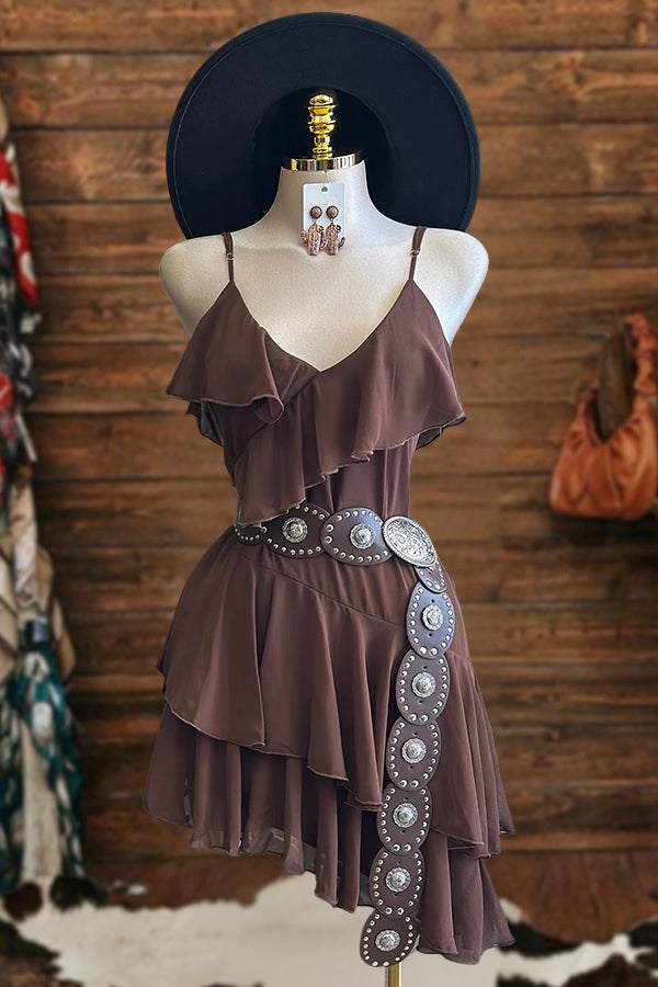 Asymmetric Ruffled Halter Mini Dress