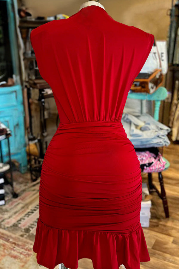 V-Neck Sleeveless Ruffled Hem Mini Dress