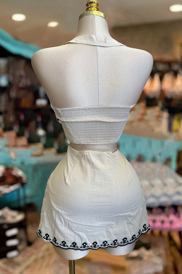 Stay on trend this season in our new pretty, v neck set. We especially love the abstract print fabric and think this piece will be a new favorite in your closet!
