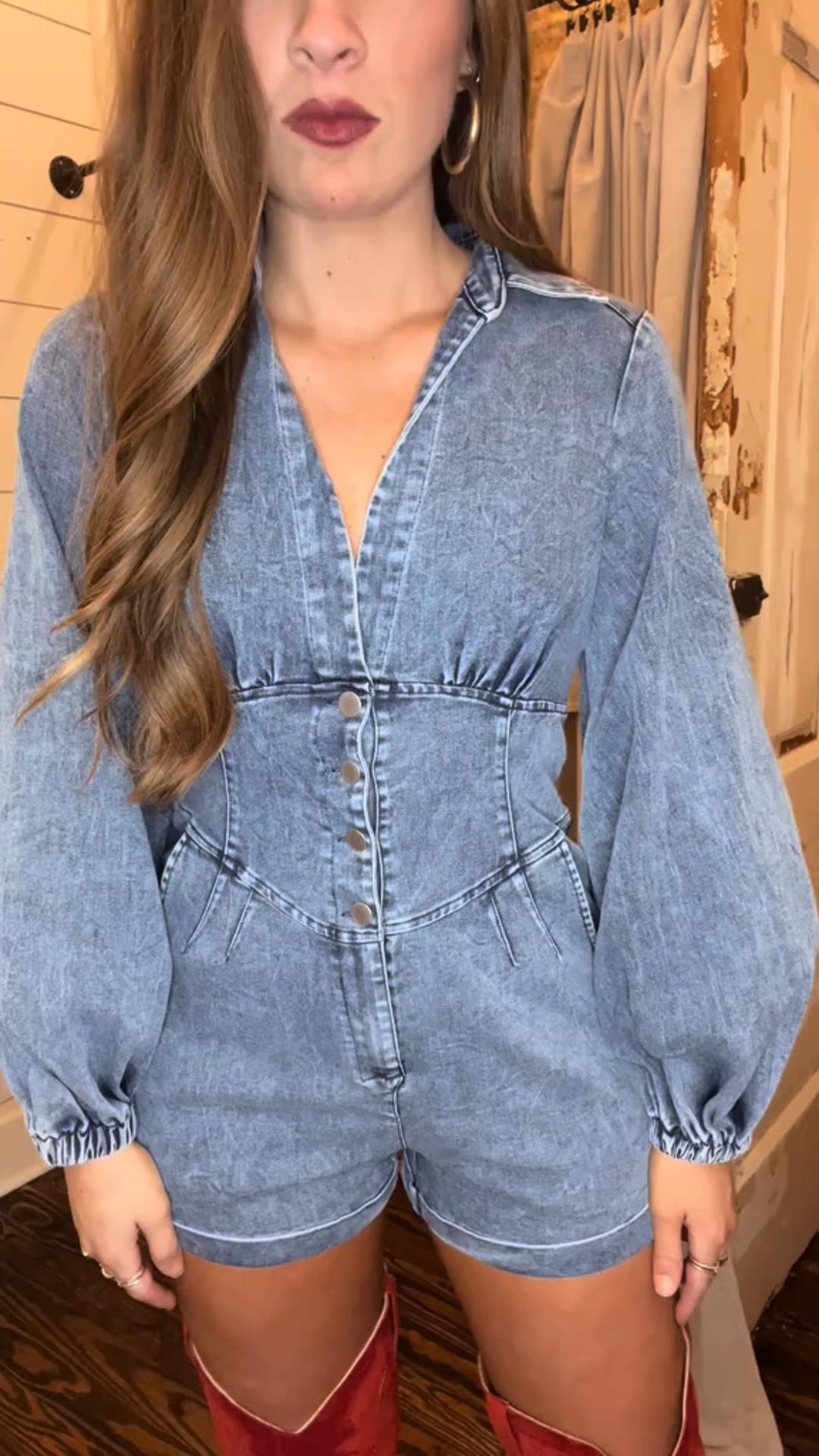 Long Sleeve Button Denim Romper