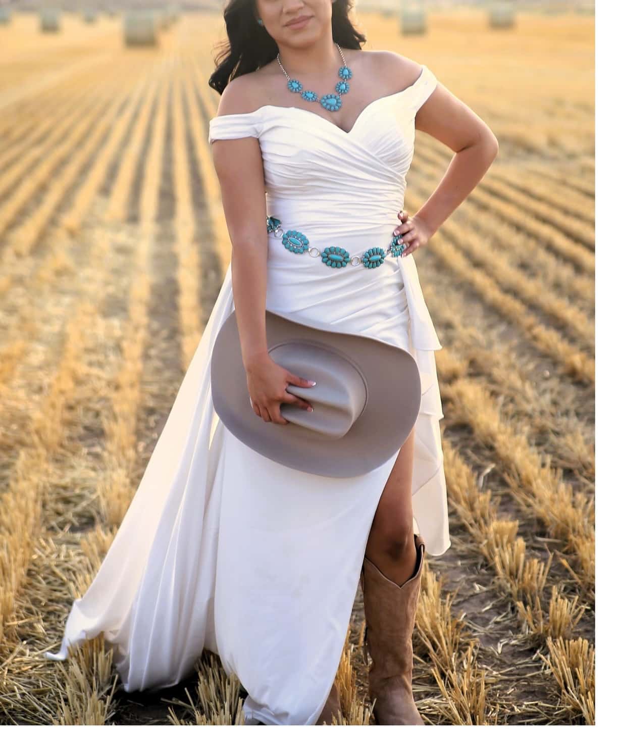 Vintage Off the shoulders Slit maxi Dress ( white )