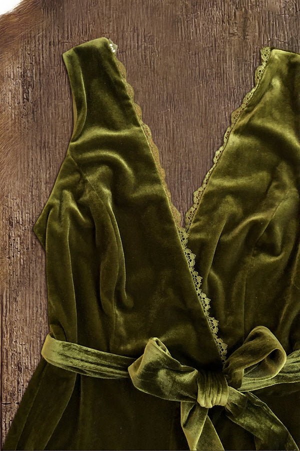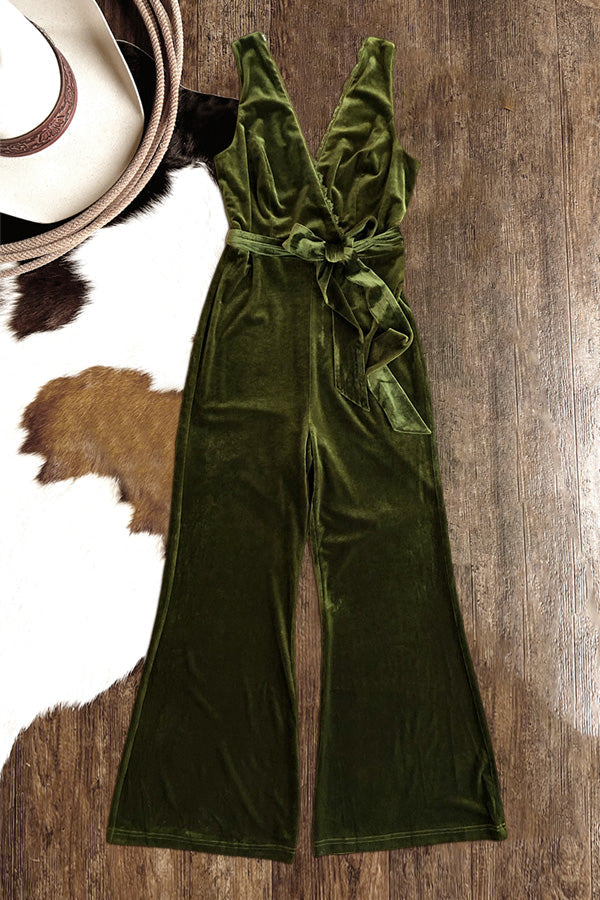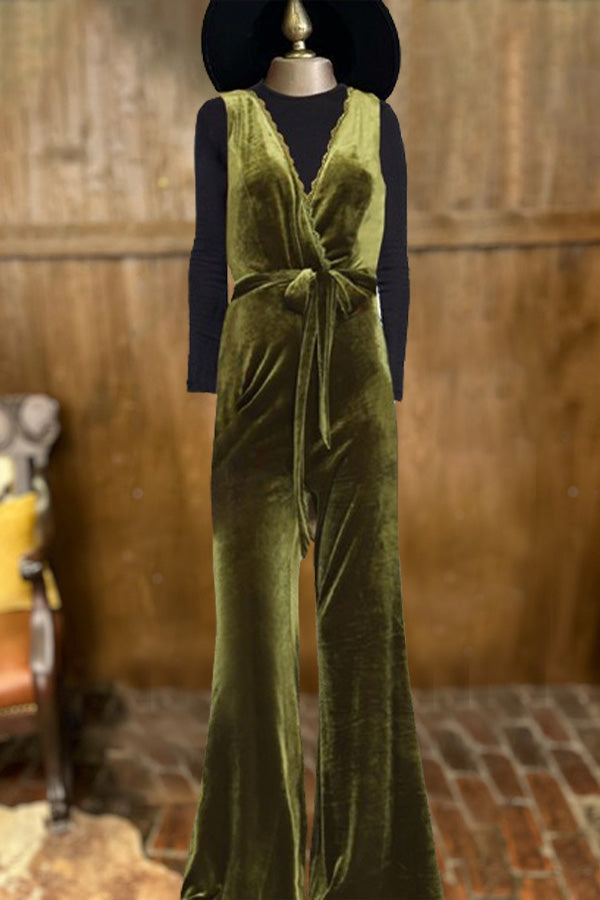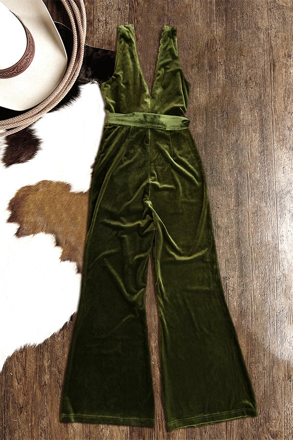 Stunning Overlapping Deep V-Neck Velvet Sleelvess Jumpsuit