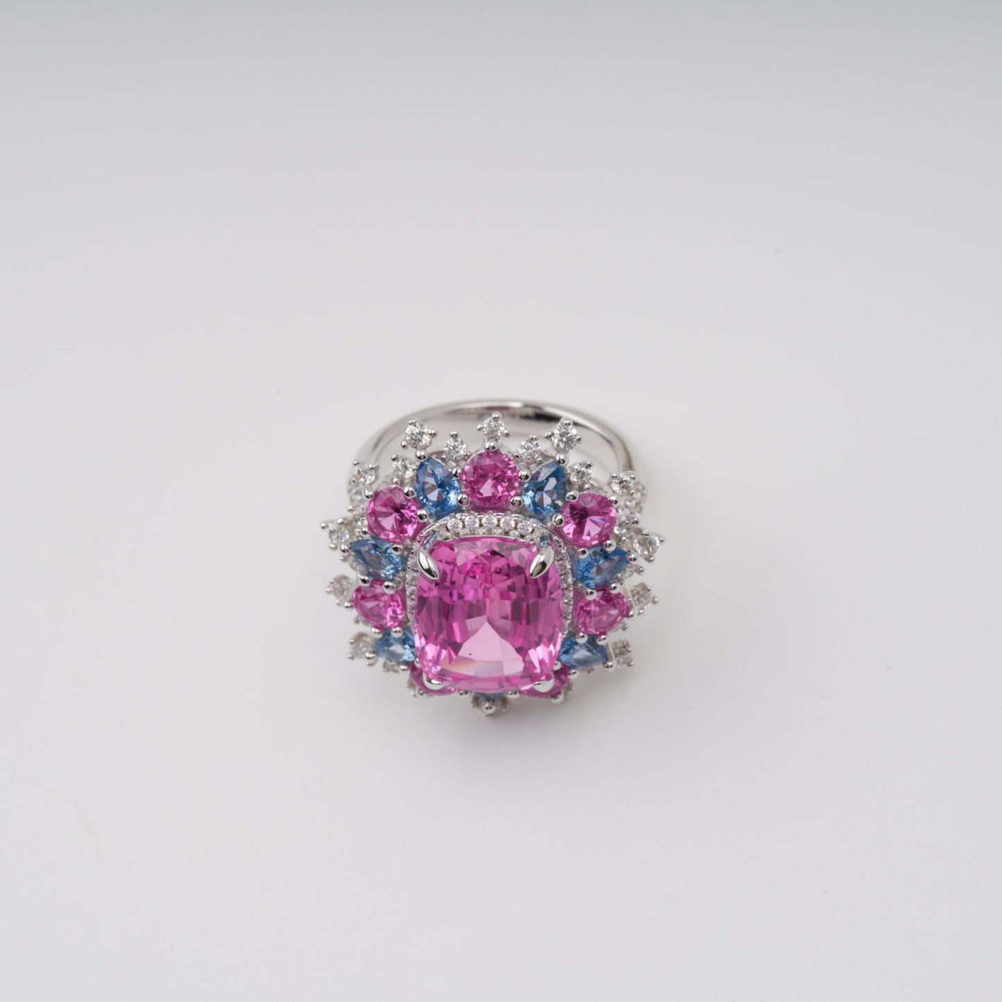Révérence Pink Halo-Set Zircon Gemstone Sterling Silver Ring