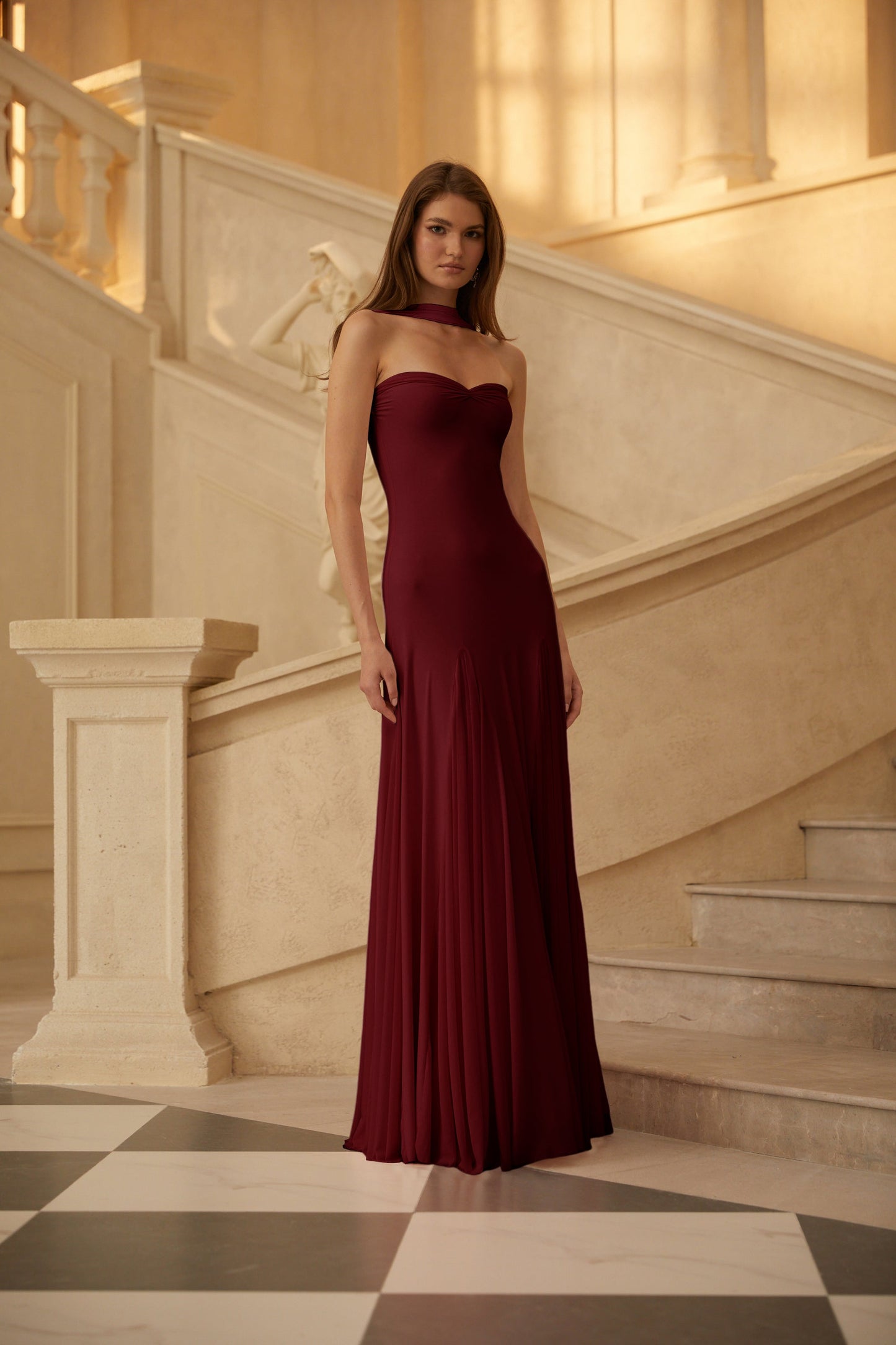 Rêverie Wine Red Sweetheart Neck Maxi Dress
