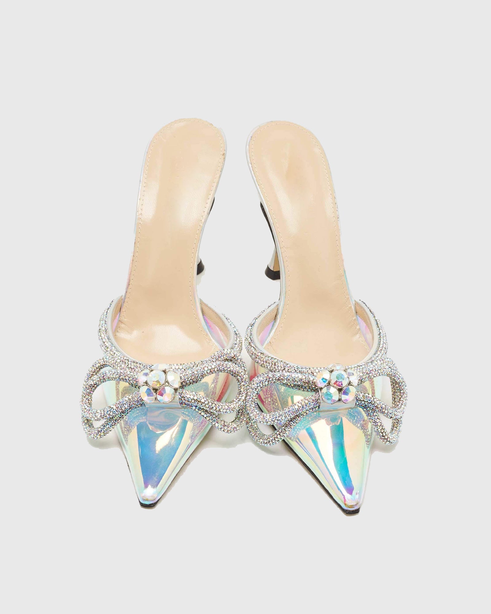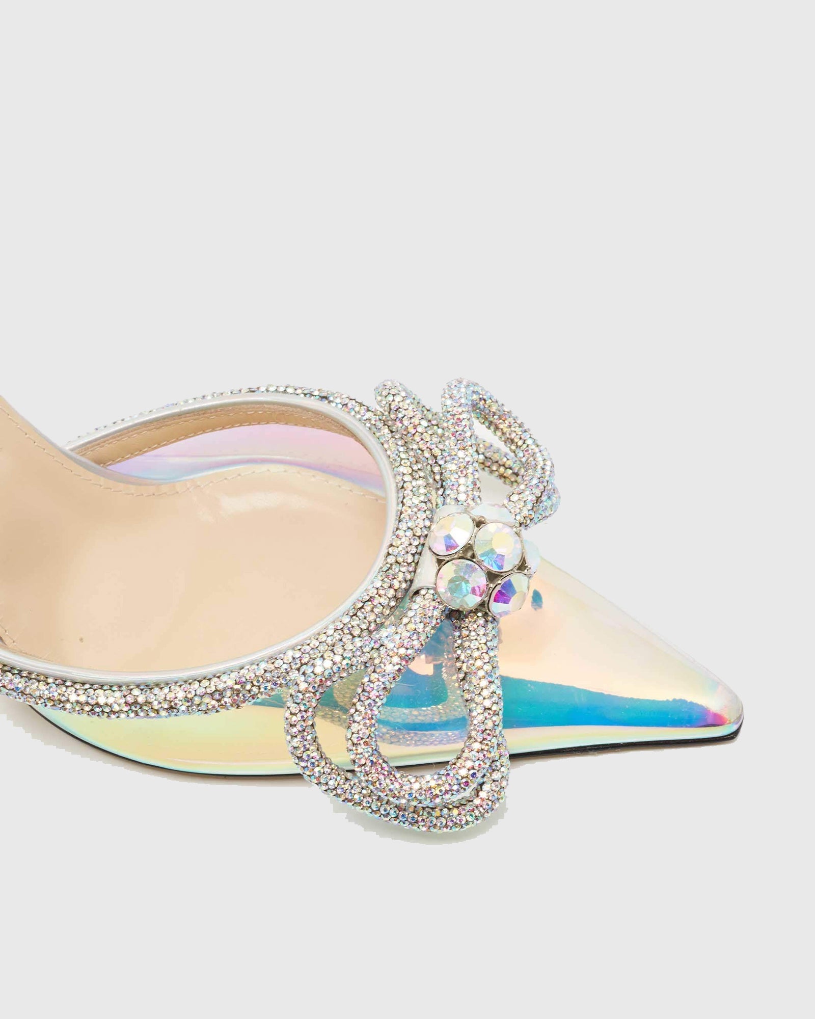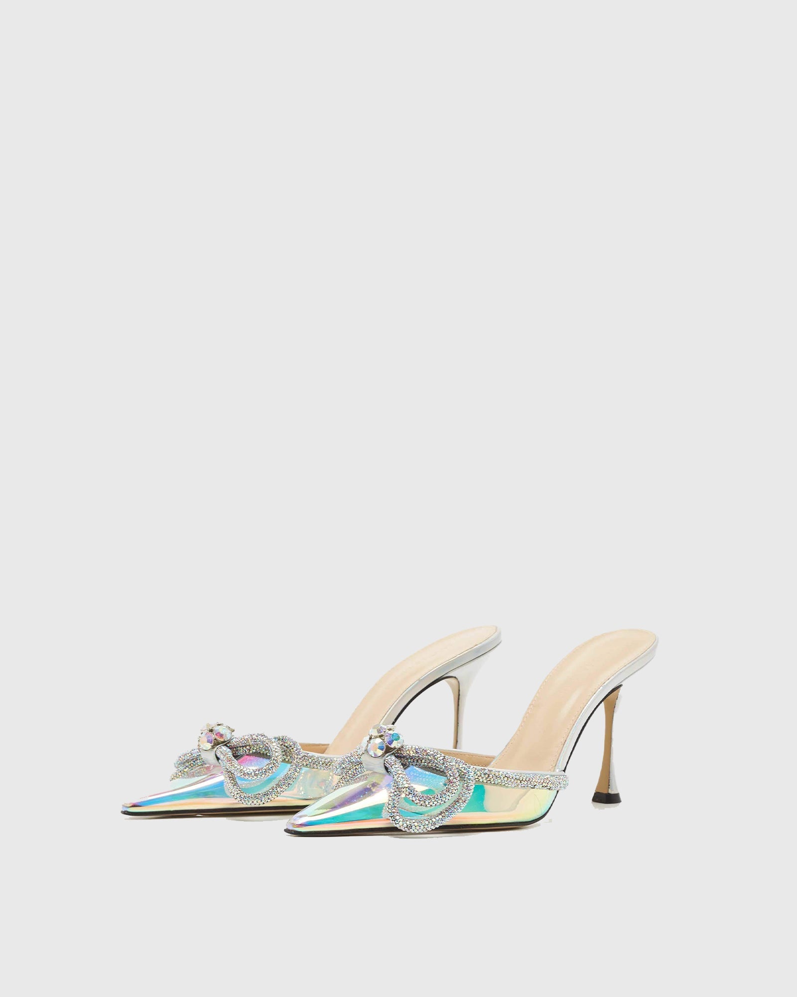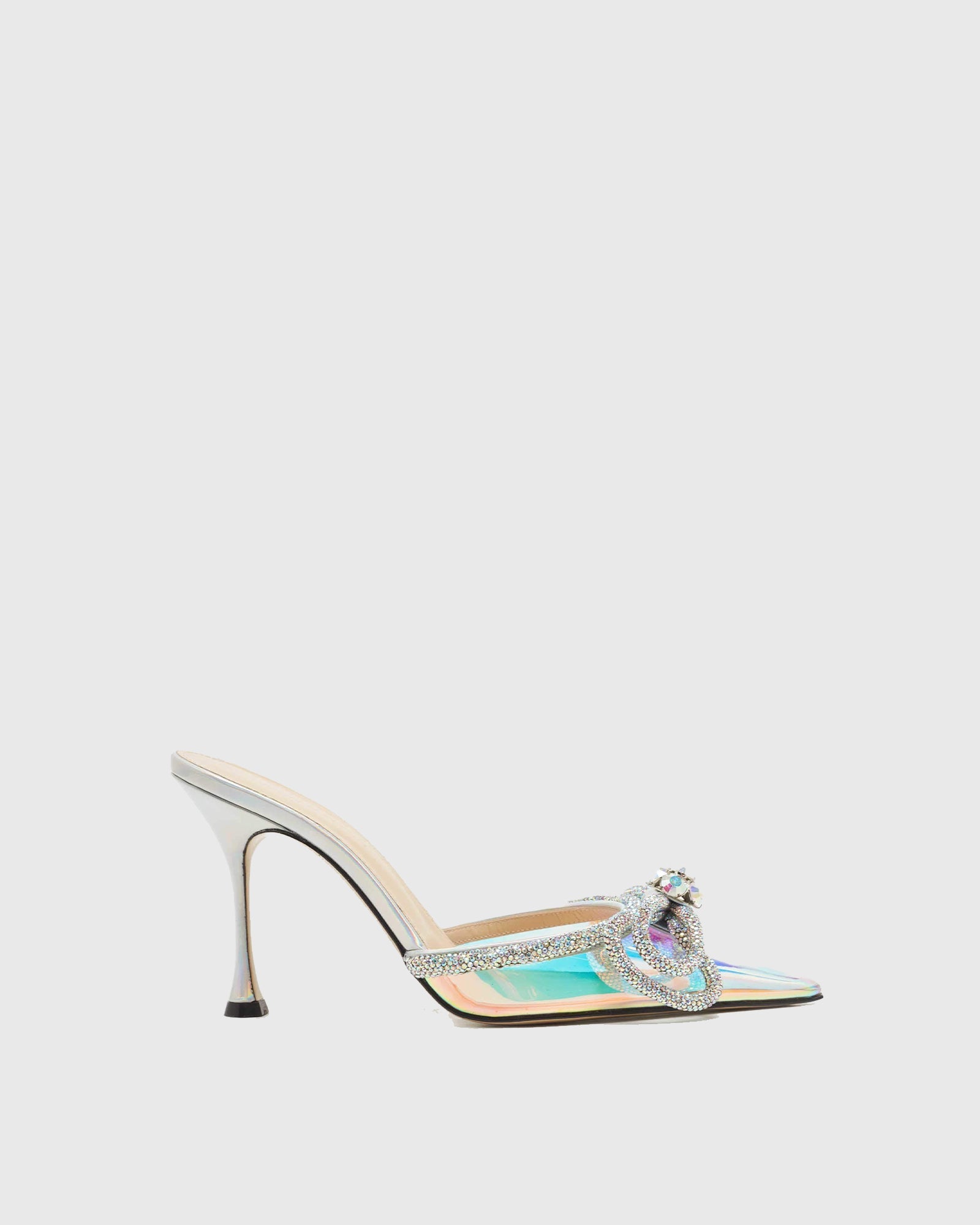 Rina Crystal Bow PVC Mules In Silver