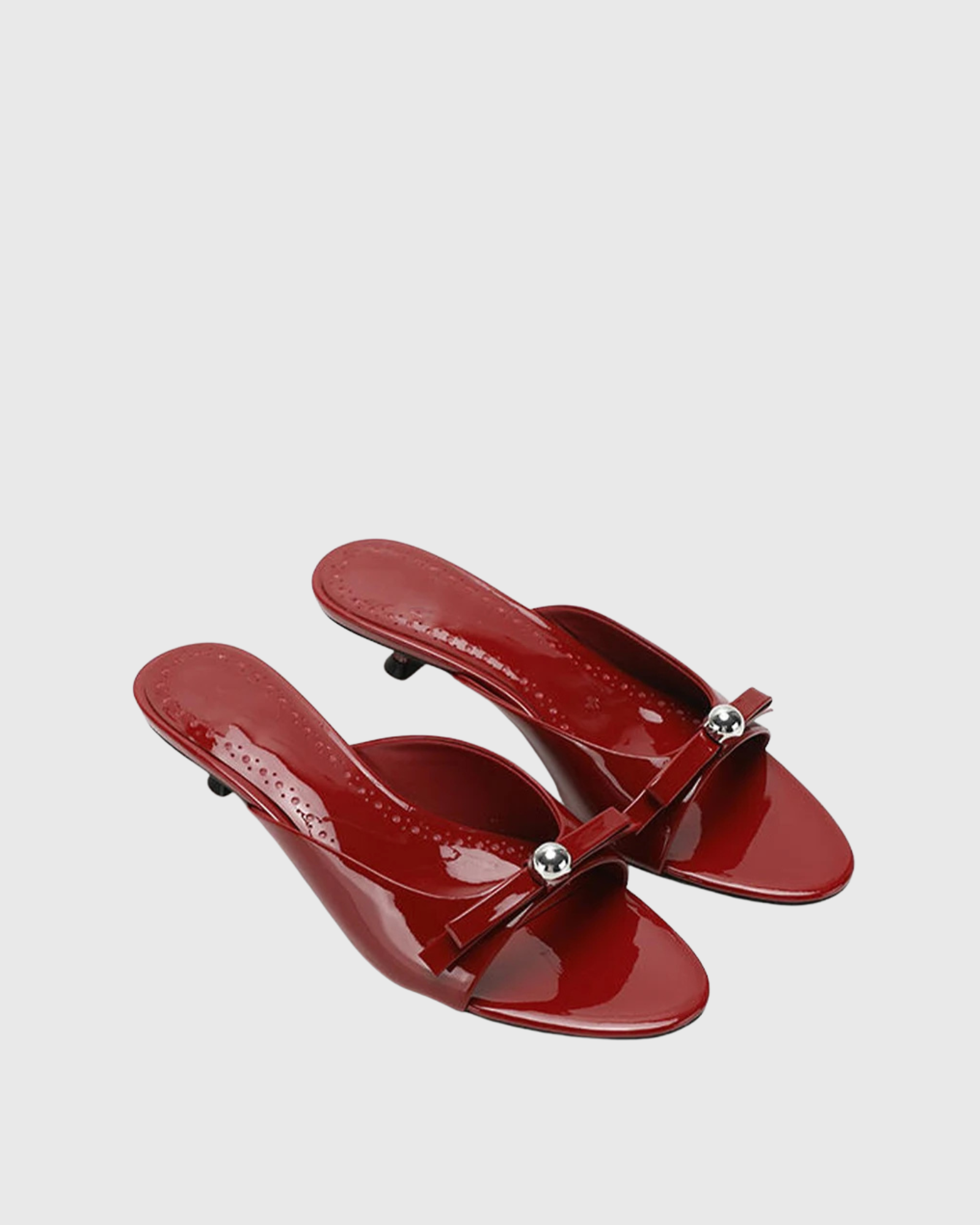 Step into elegance with the Roma Bow Patent Leather Slippers in vibrant red. Crafted from glossy patent leather, these slippers add a bold pop of color to any outfit while offering comfortable wear. The delicate bow detail enhances their feminine charm, making them perfect for both casual outings and stylish occasions. Elevate your footwear collection with a pair that combines striking design and everyday comfort effortlessly.