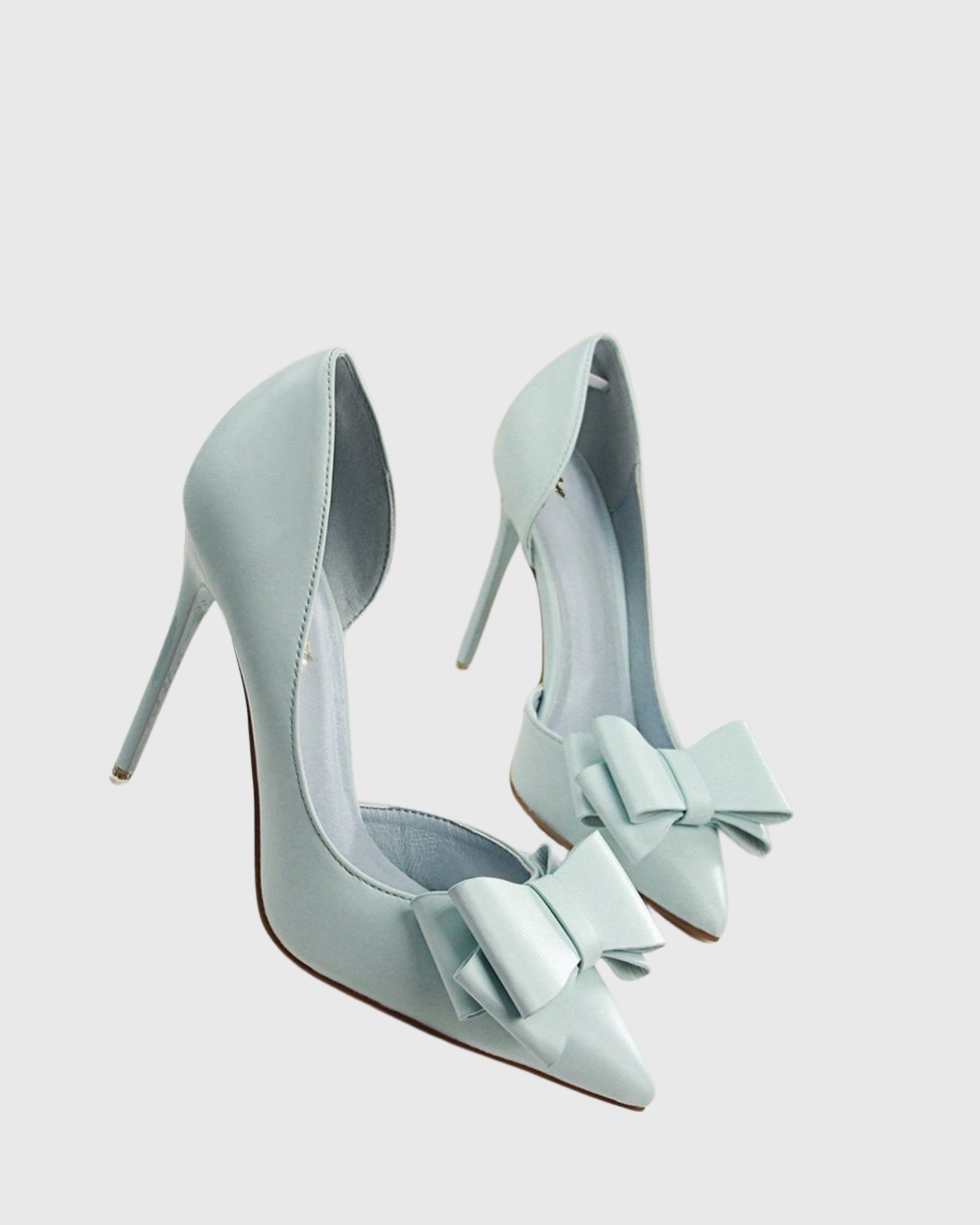 Elevate your style with our Sabri Bow Satin Irregular Pumps in refreshing mint. These statement heels feature an eye-catching asymmetrical design adorned with a luxurious satin bow that demands attention. The unique silhouette not only creates a fashion-forward look but also ensures you stand out at any event. Perfect for those who dare to step beyond ordinary footwear into the realm of wearable art.
