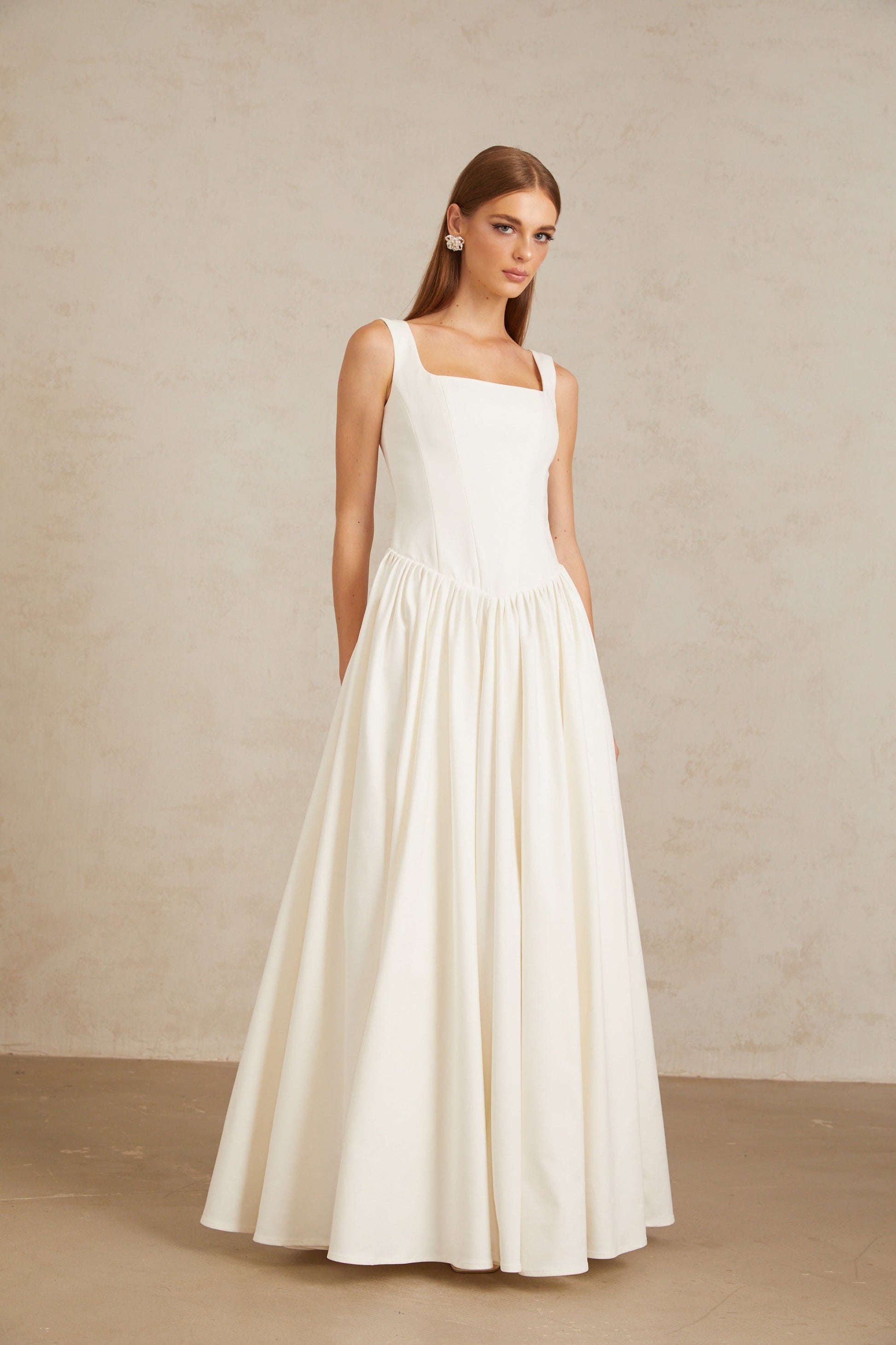 Sadie White Pleated Corset Maxi Gown