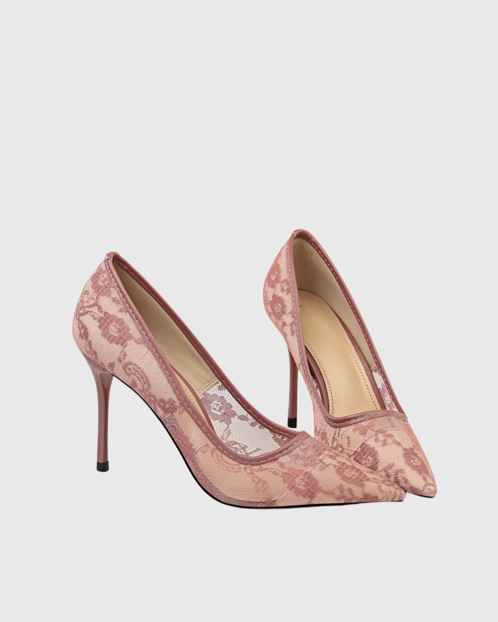 Elevate your style with the fabulous Saidi Lace Pumps In Pink! These stunning pumps feature delicate lace detailing and a beautiful pink color that will add a touch of elegance to any outfit. Comfortable yet stylish, these pumps are perfect for a day at the office or a night out on the town. Transform your look and step out in confidence with the Saidi Lace Pumps!
