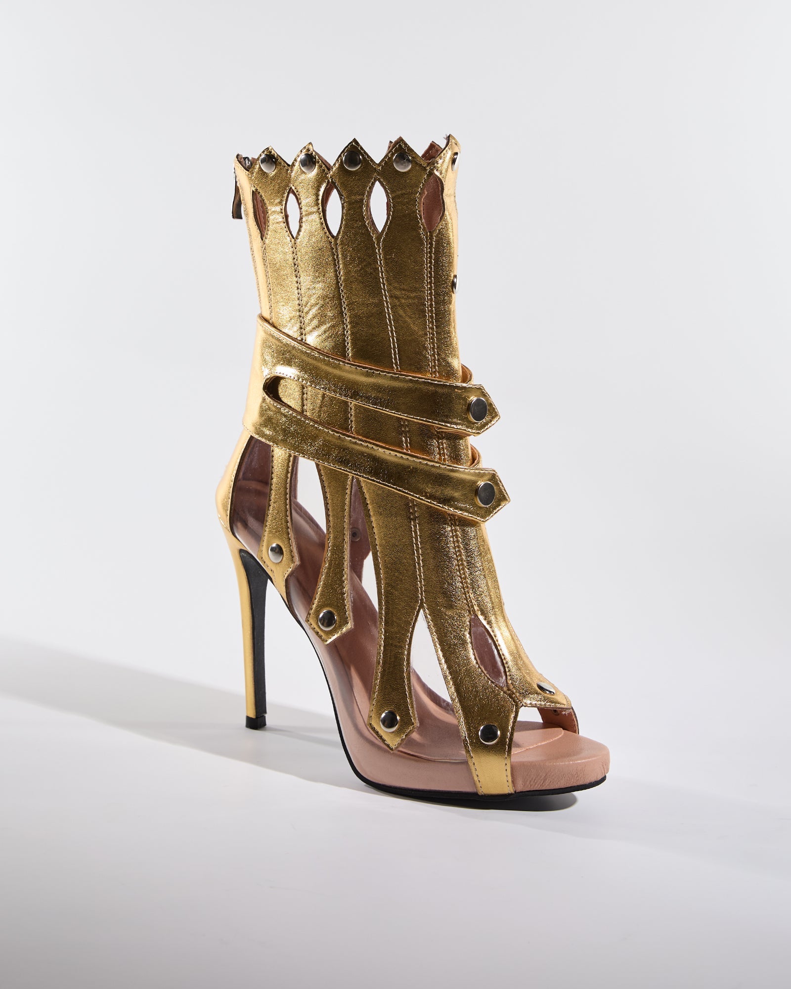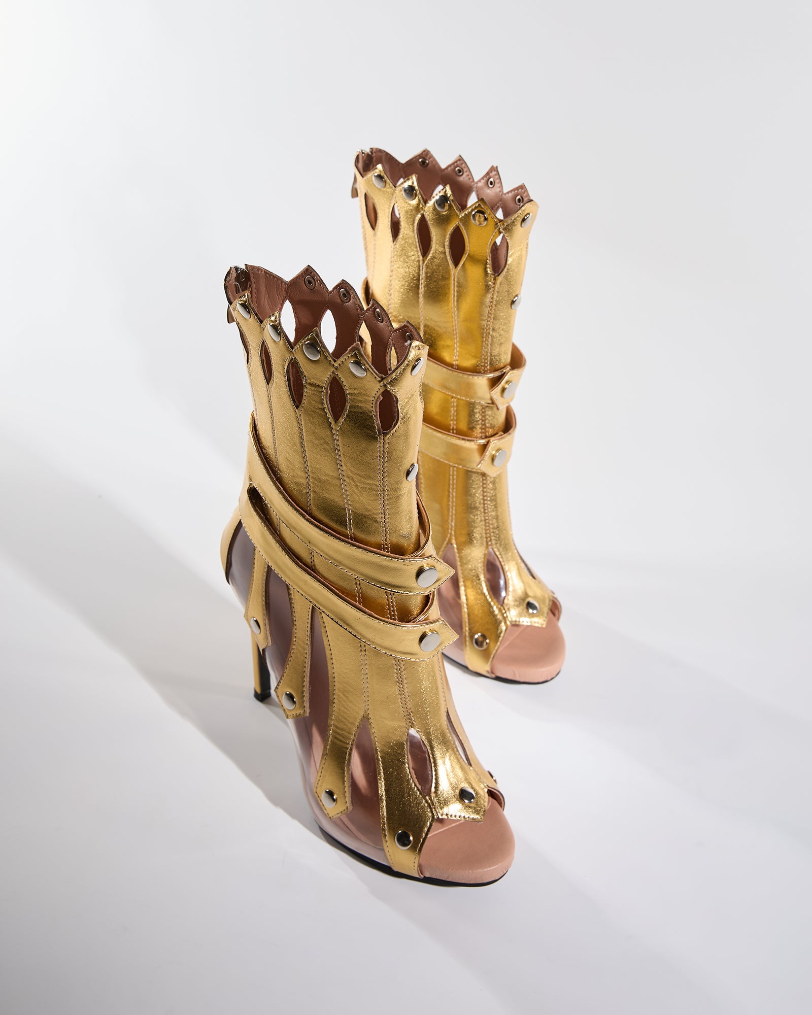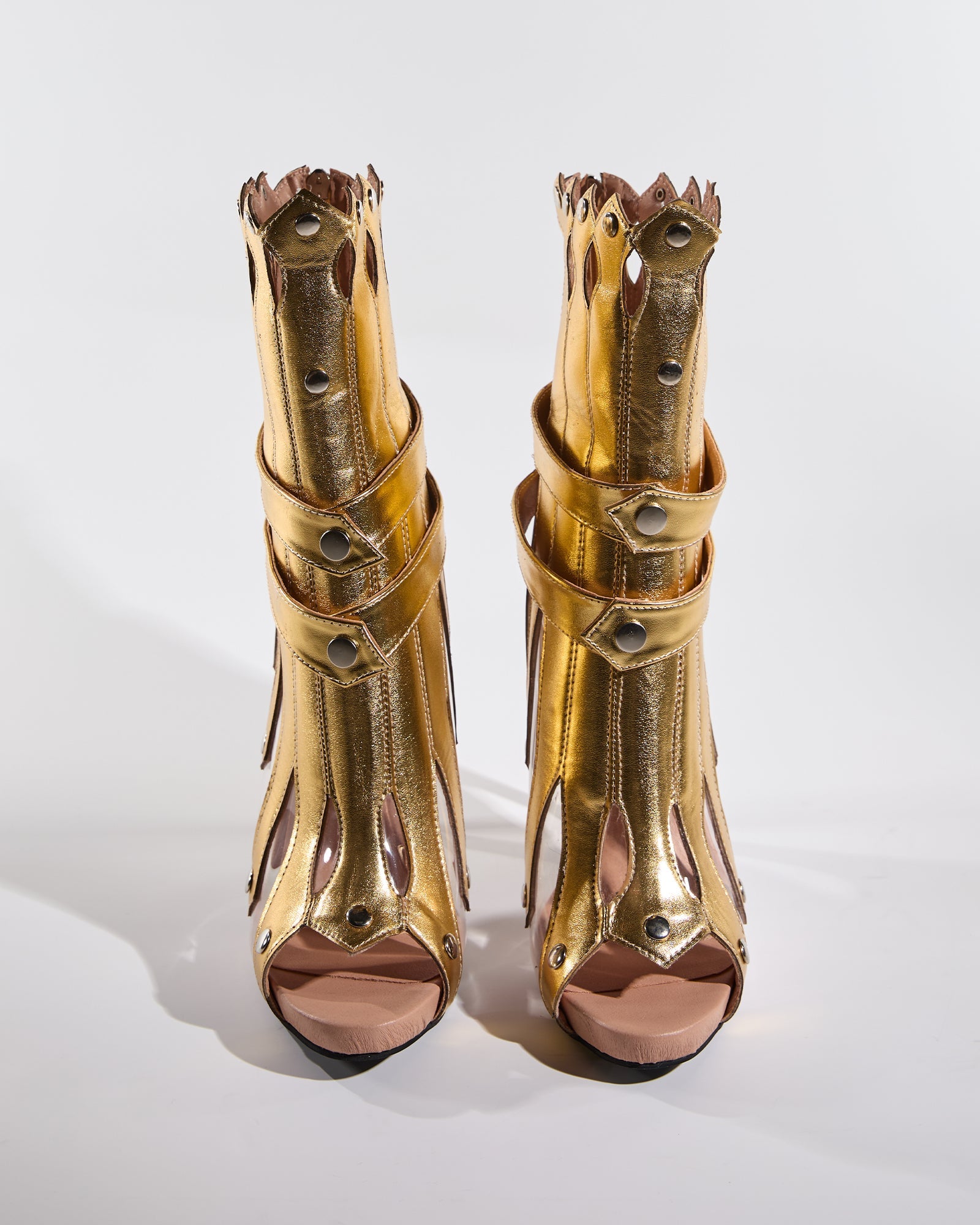 Saige Cutout Deconstruct Ankle Boots In Gold