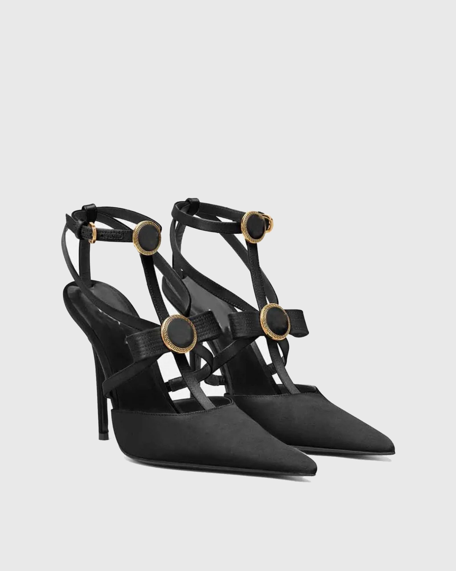 Sailor Buckle Gladiator Satin Pumps In Black