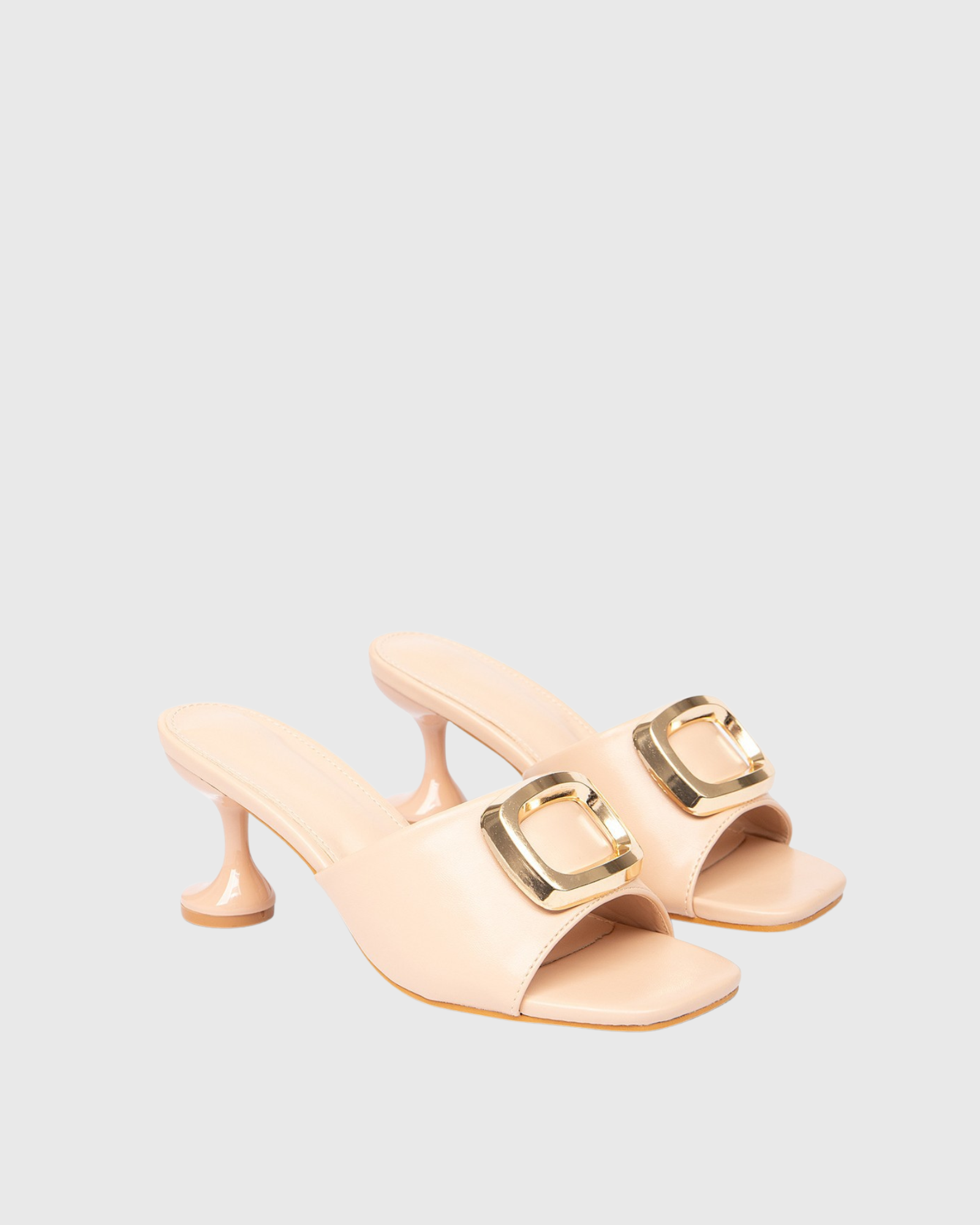 Step out with confidence in the Saira Metal Buckle Flared Heels in Apricot. Featuring a striking metal buckle and a stylish flared heel, these shoes combine elegance and contemporary flair. The apricot shade adds a fresh, vibrant touch to any outfit, perfect for making a memorable impression. Designed to elevate your look while providing comfortable support, these heels are your go-to choice for both day and night occasions. Embrace a blend of fashion and function with every step.