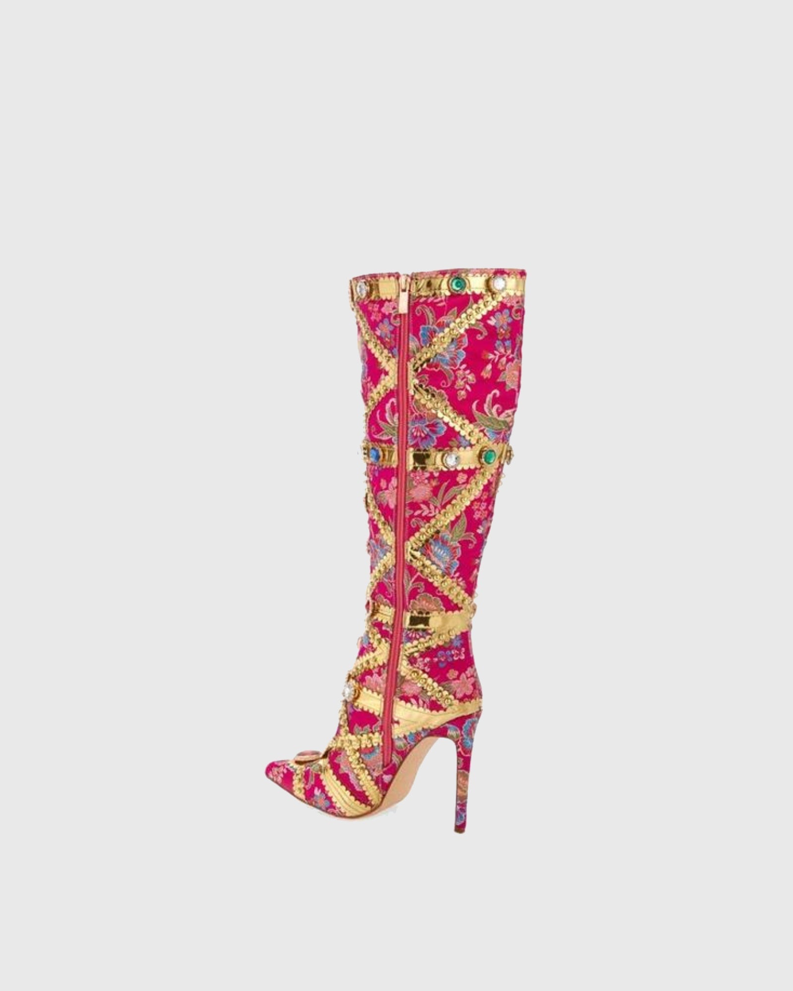 Elevate your style with our Sardinia Rhinestone Embroidery Knee High Boots! Adorned with rhinestones, these hot pink boots will add a touch of sparkle to any outfit. Not only do they make a statement, but they also provide long-lasting comfort and durability. Stand out from the crowd with these stunning boots!