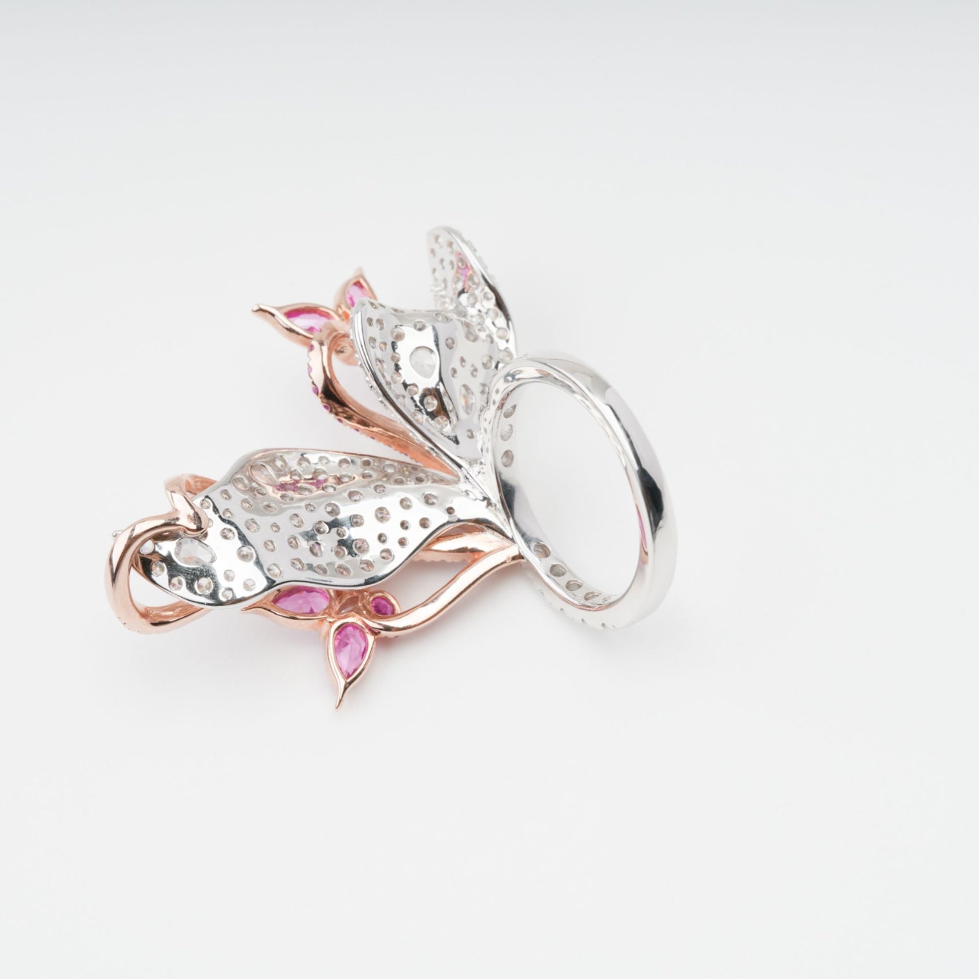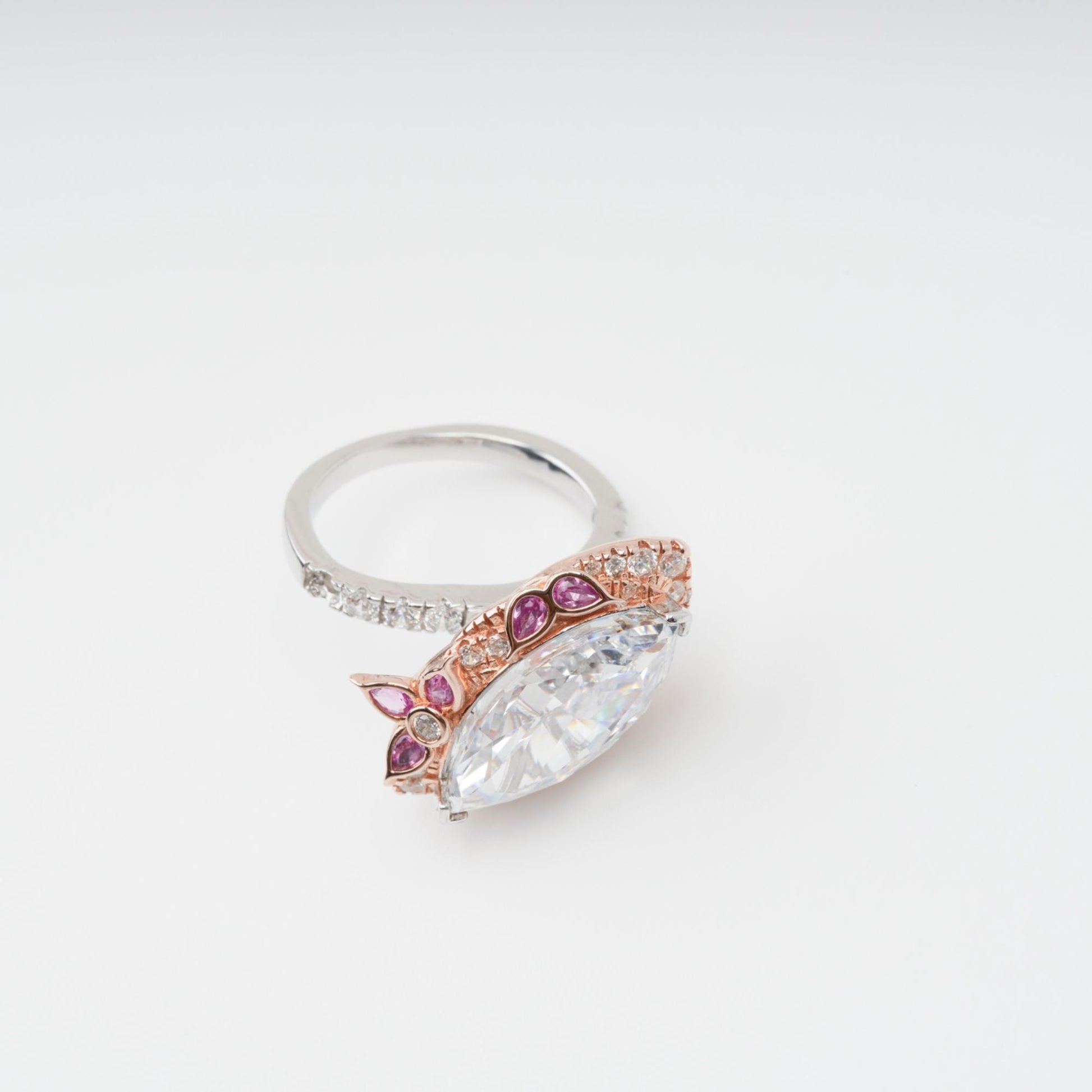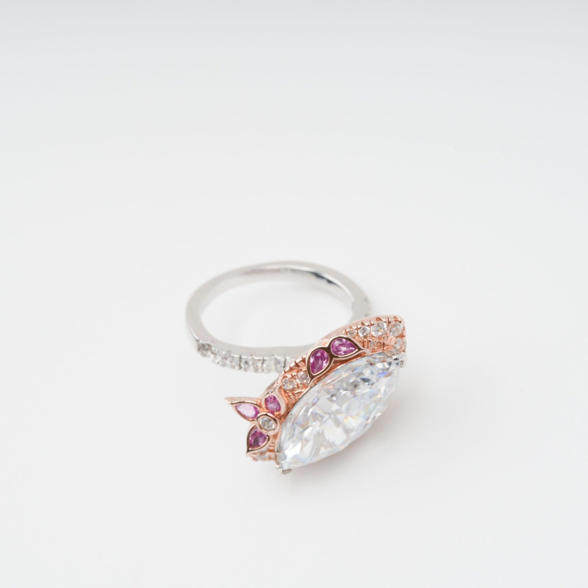 Scintillement Pink Crystal Embellished Sterling Silver Ring Set (3 Pieces)