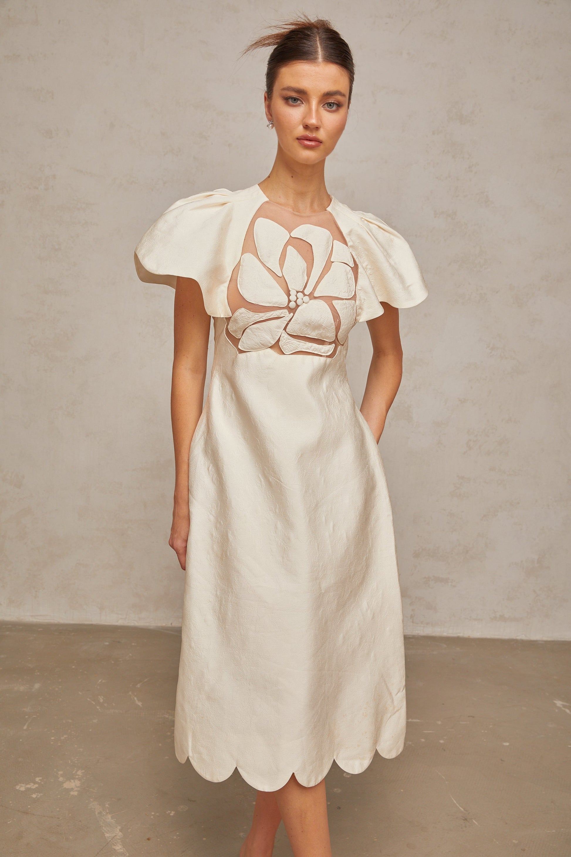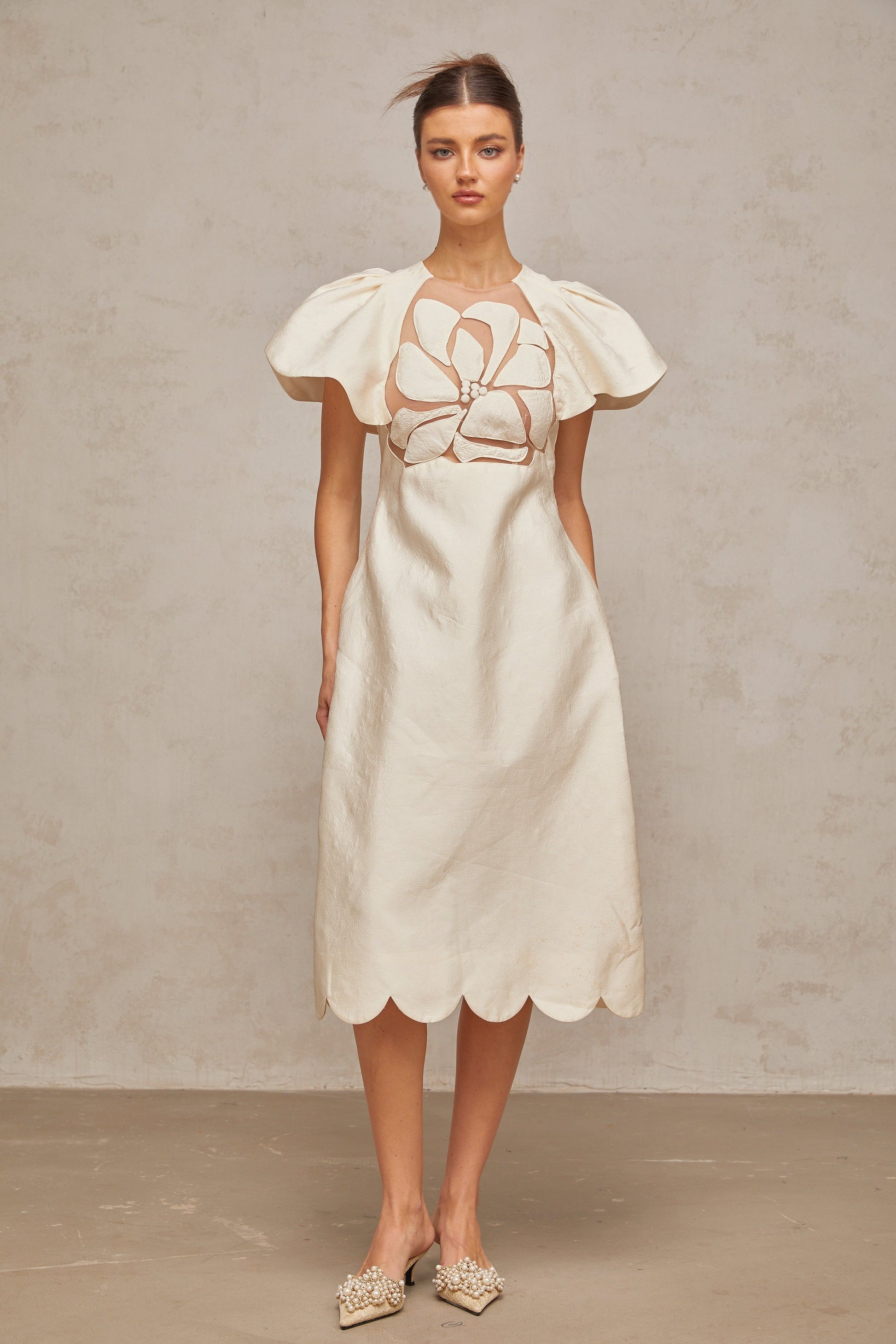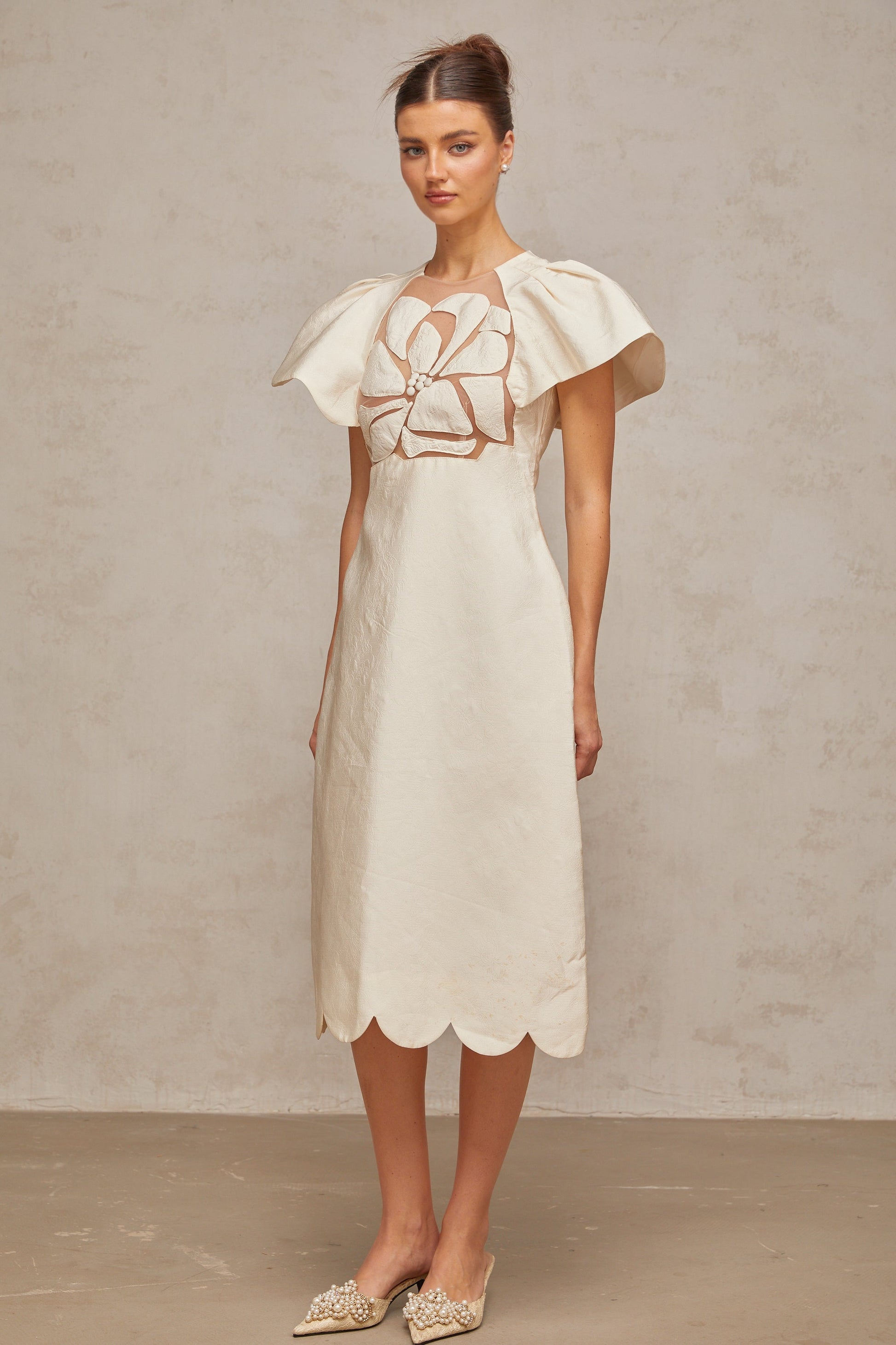 Ségolène white flower jacquard midi dress
