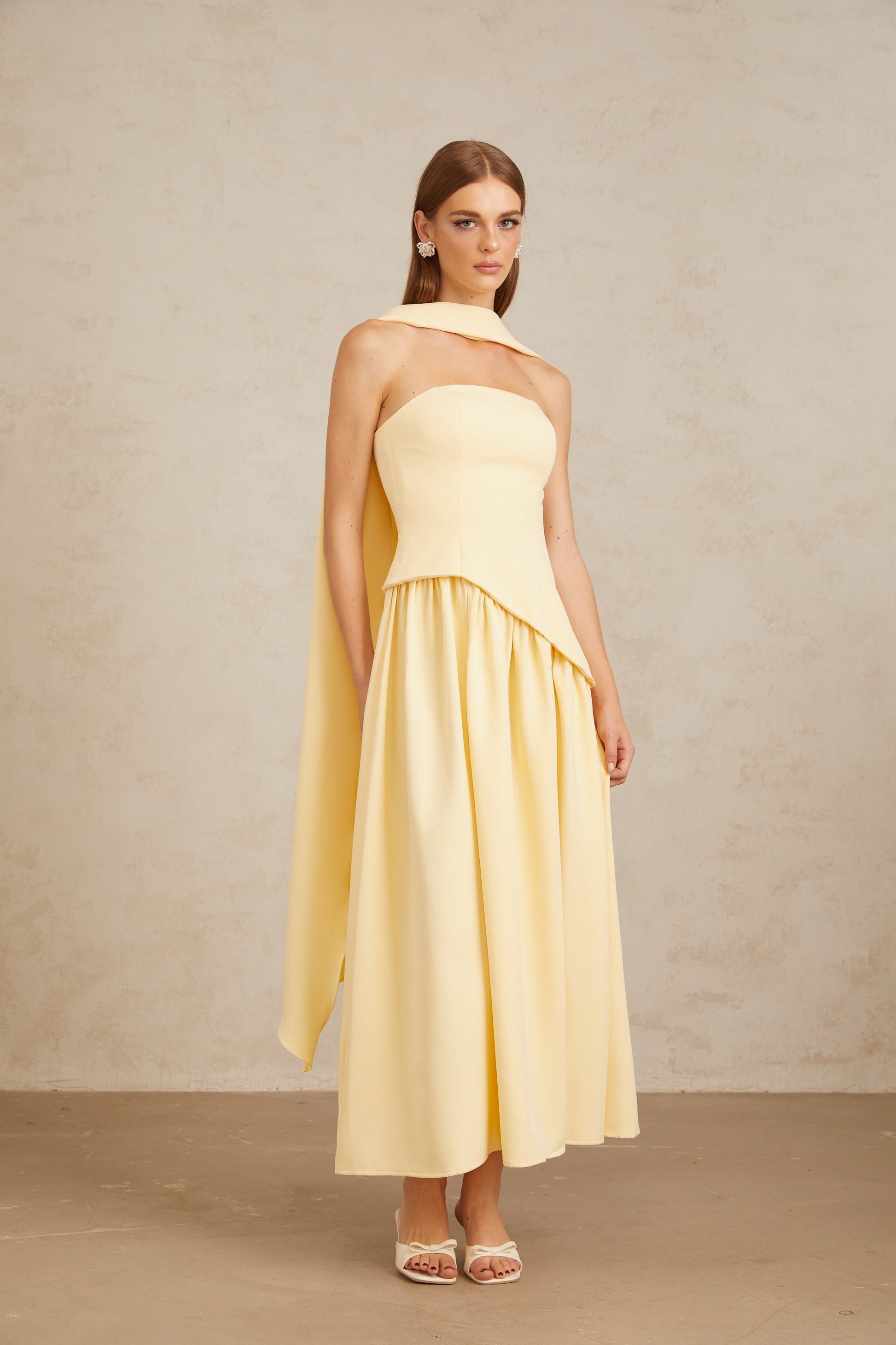 Sidonie Yellow Off-Shoulder Panel Maxi Gown