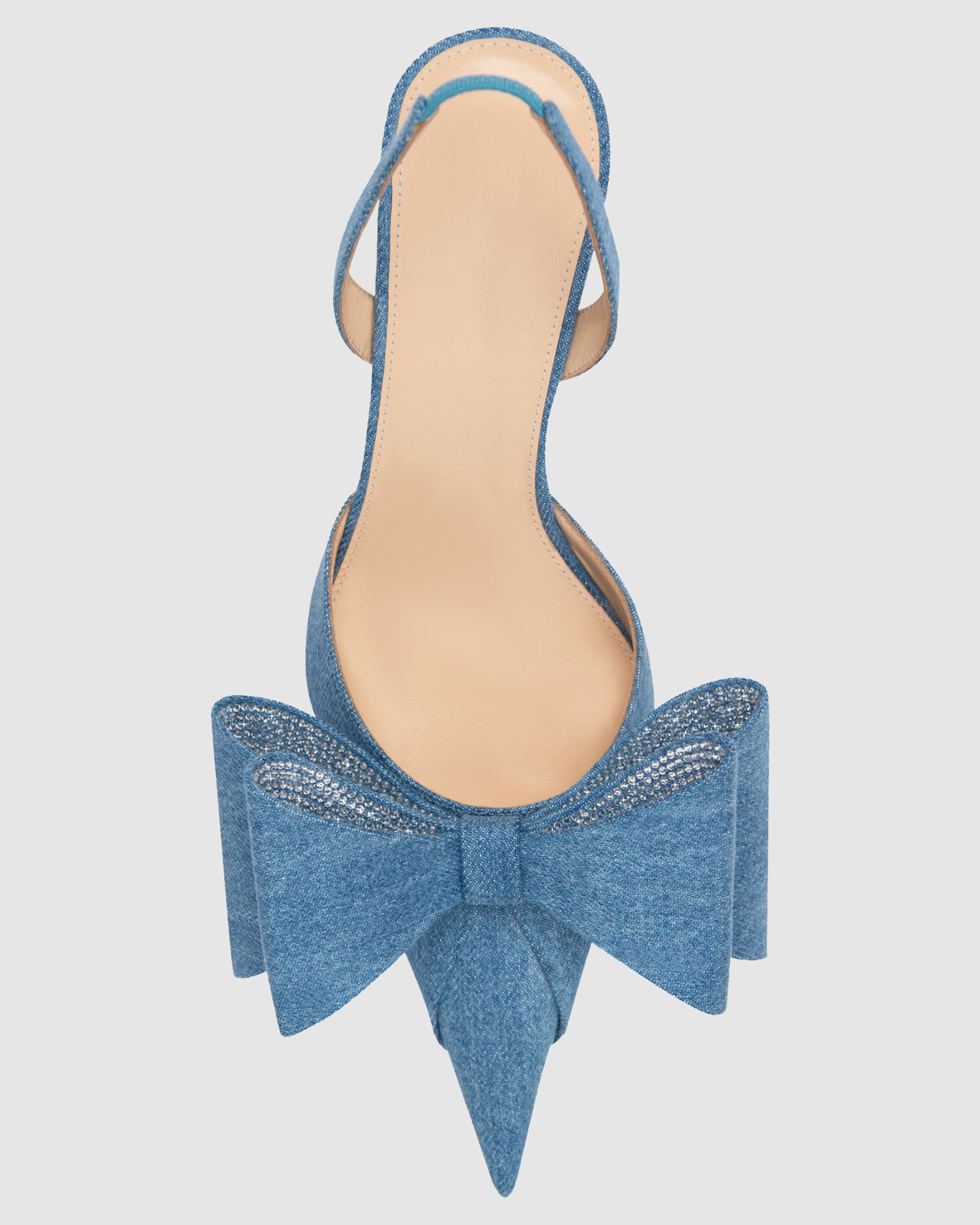Siena Bow Embellished Denim Slingback Pumps In Blue