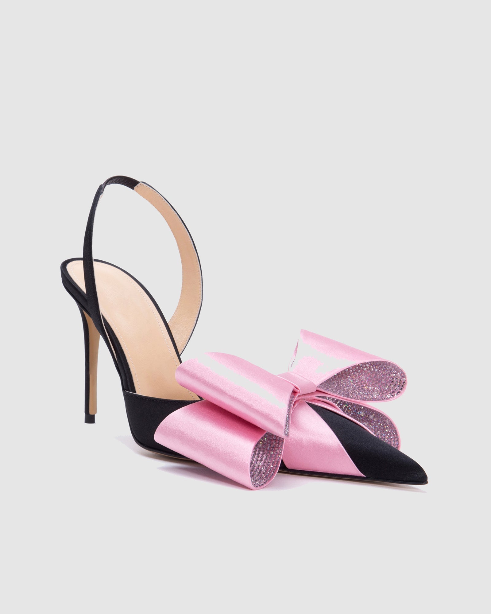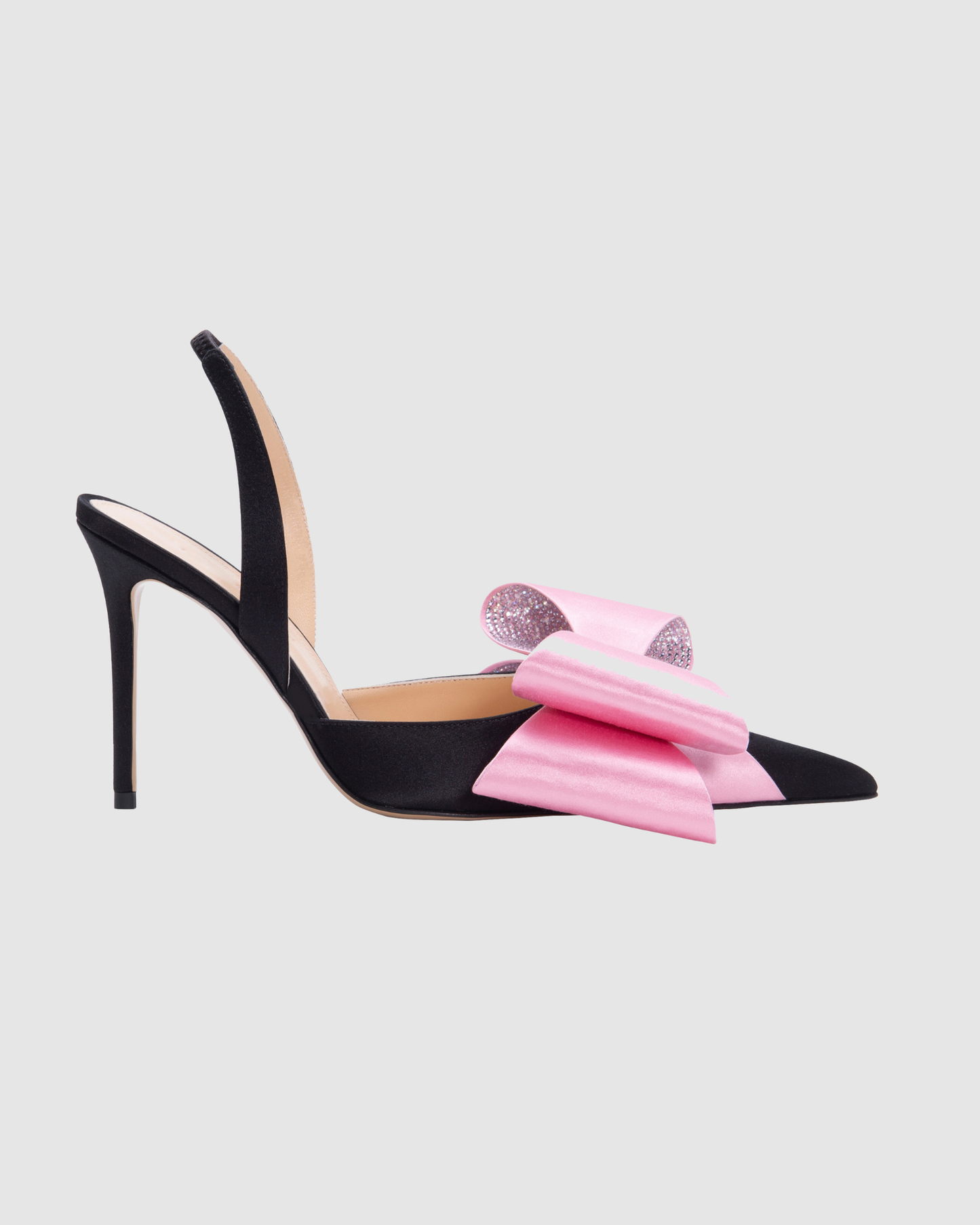 Siena Bow Embellished Satin Slingback Pumps In Black