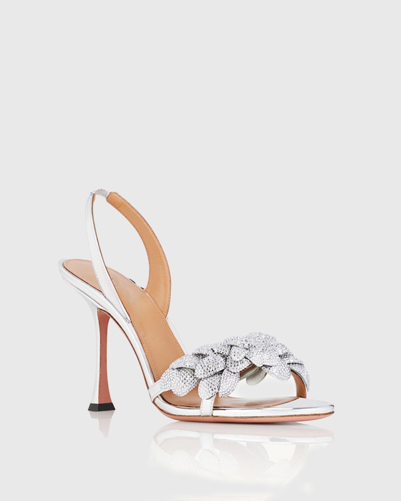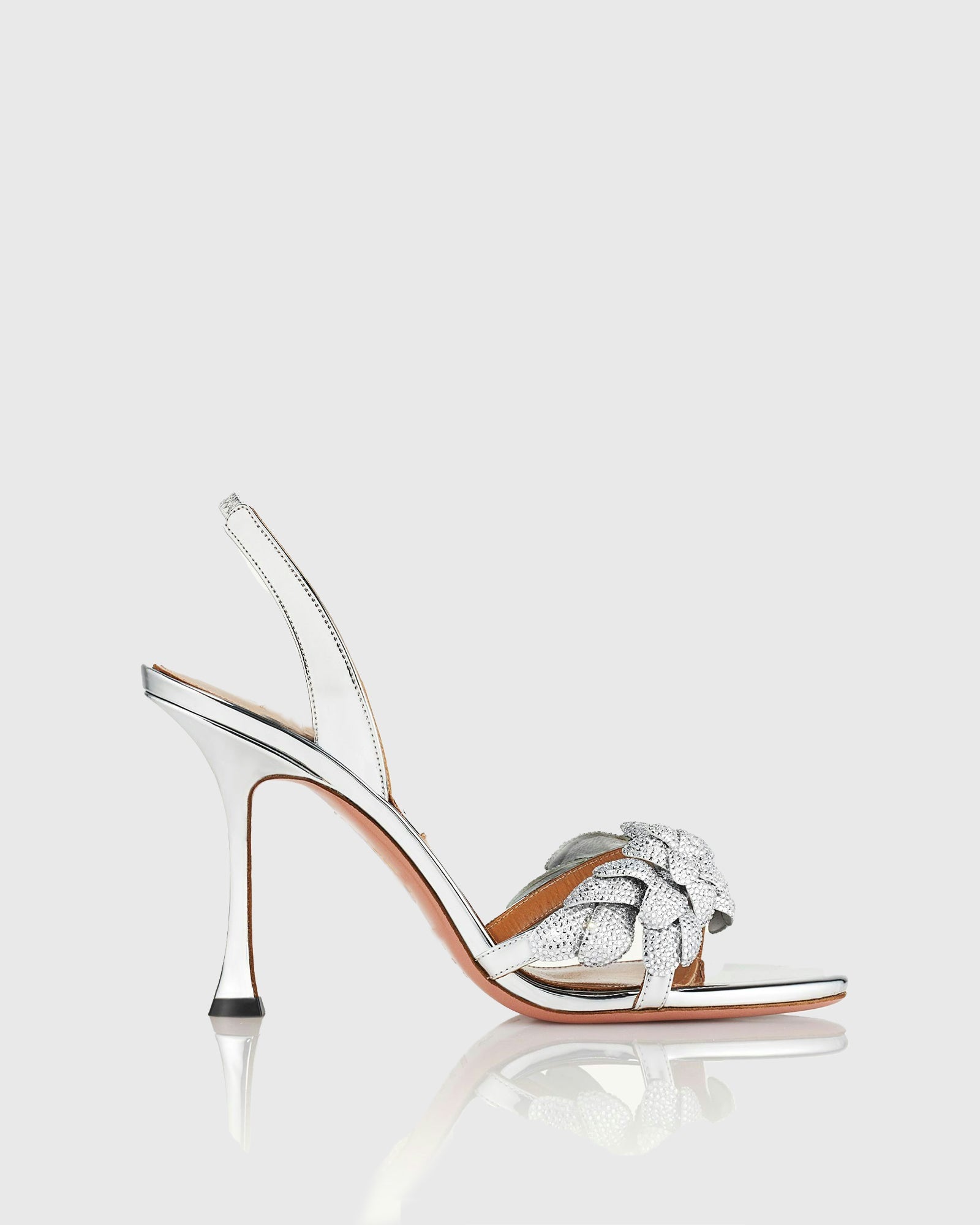 Indulge in the out-of-this-world glamour of the Siria Galactic Flower Slingback Sandals. Featuring a dazzling silver design and delicate flower accents, these sandals will elevate any outfit. With a comfortable slingback strap, you can confidently dance the night away. Get ready to sparkle and shine with every step in these stunning sandals.