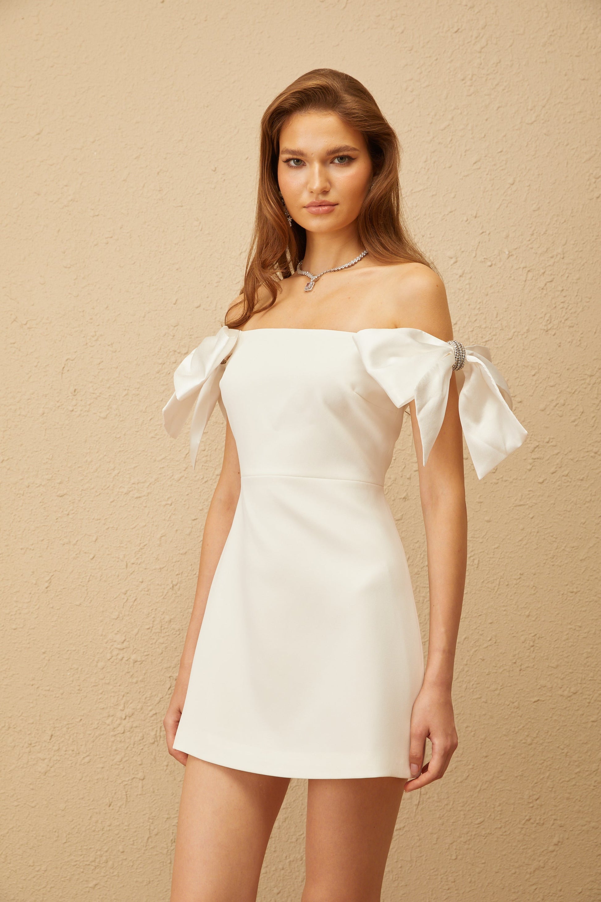 Sirkka White Off Shoulder Bowknot Mini Dress