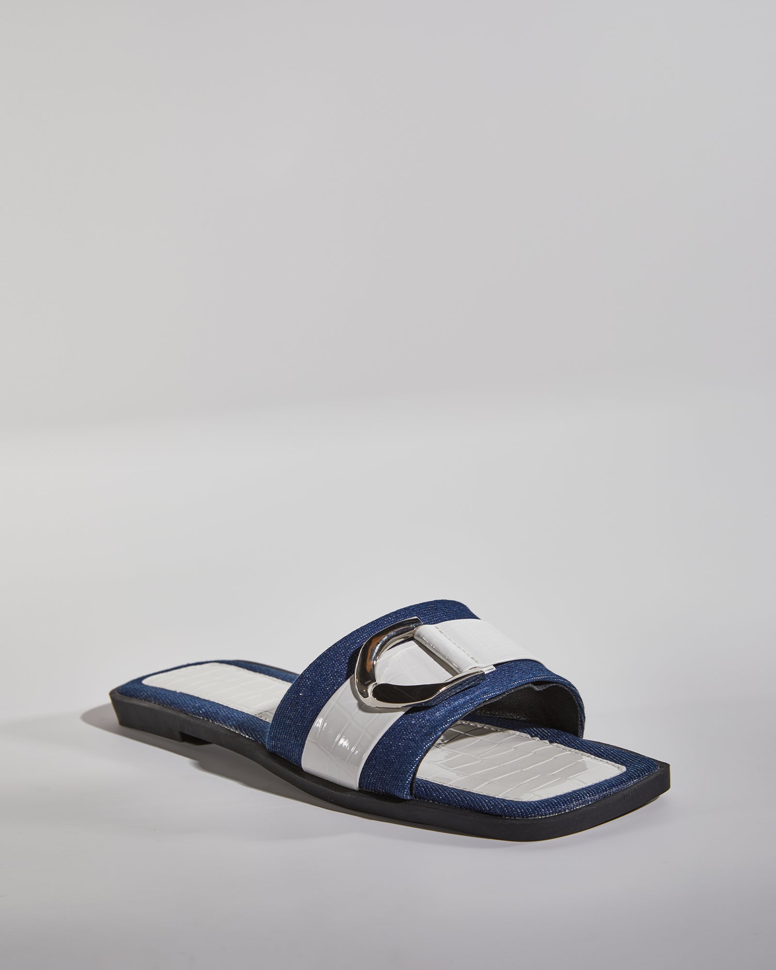 Introducing the Sky Buckle Two Tone Slippers! Experience ultimate comfort and style with these premium slippers. The sleek two-tone design adds a touch of elegance, while the sky buckle detail provides a secure fit. Perfect for lounging at home or running errands, these slippers are a must-have for any fashion-forward individual. Elevate your everyday life with the Sky Buckle Two Tone Slippers!