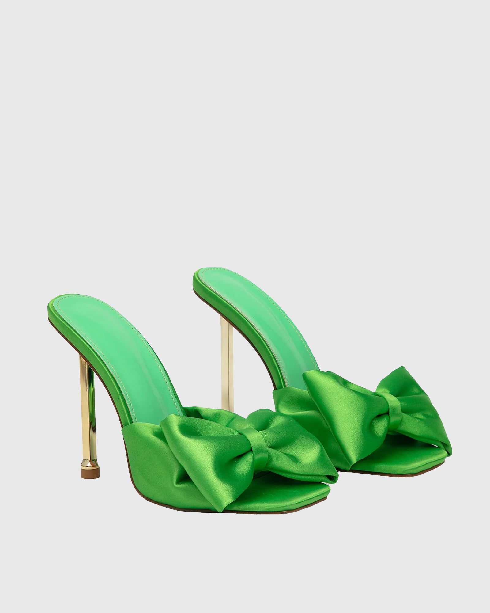 Sofia Bow Satin Slippers In Green