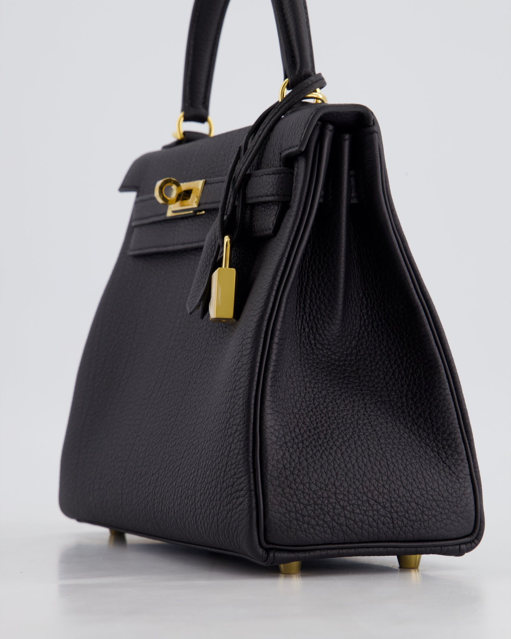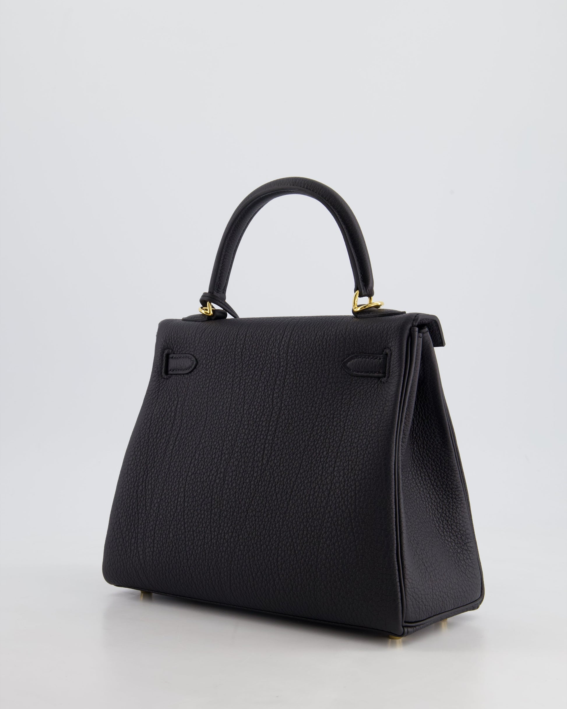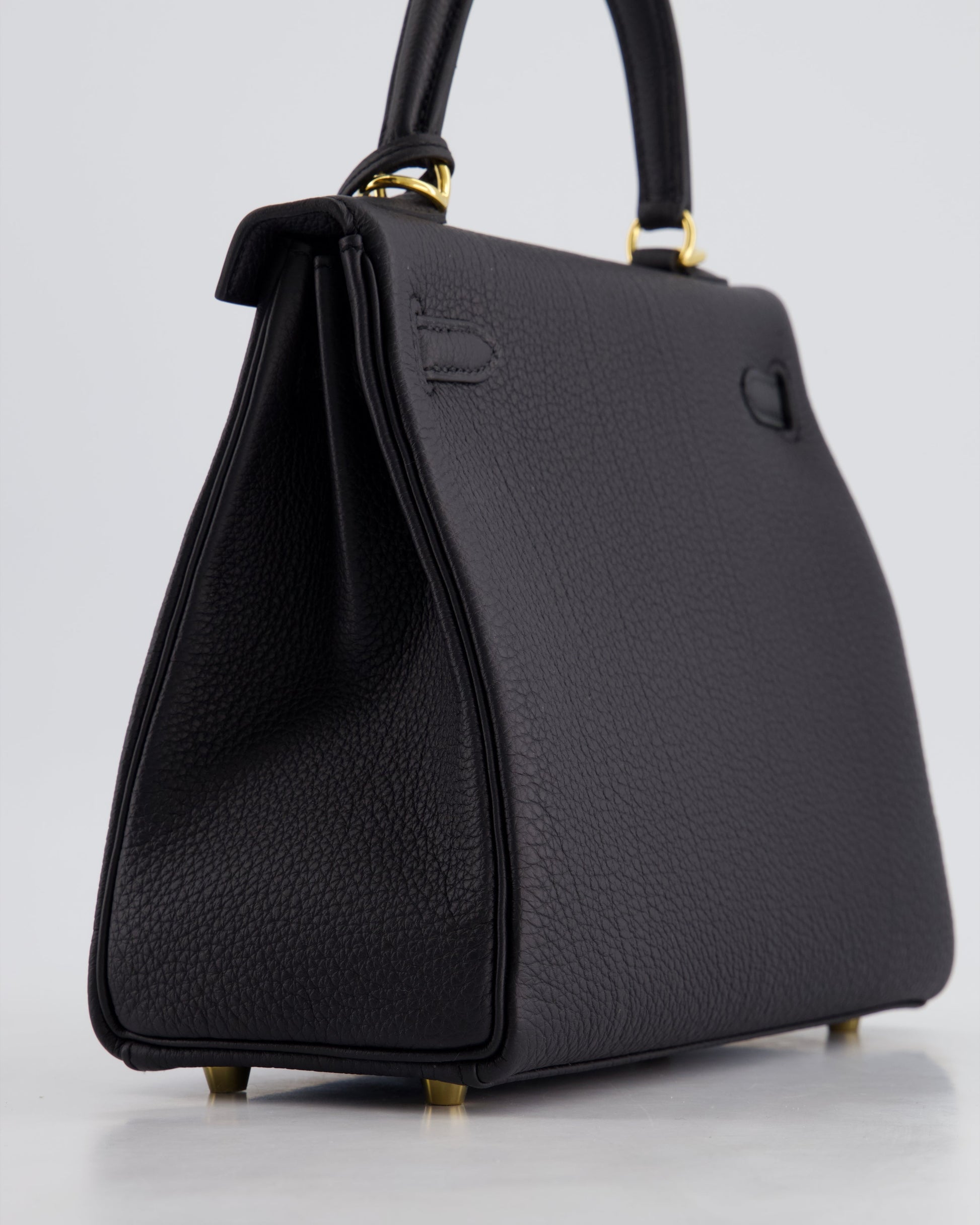 *HOT* Hermès Kelly 25cm Retourne Bag in Noir Togo Leather and Gold Hardware