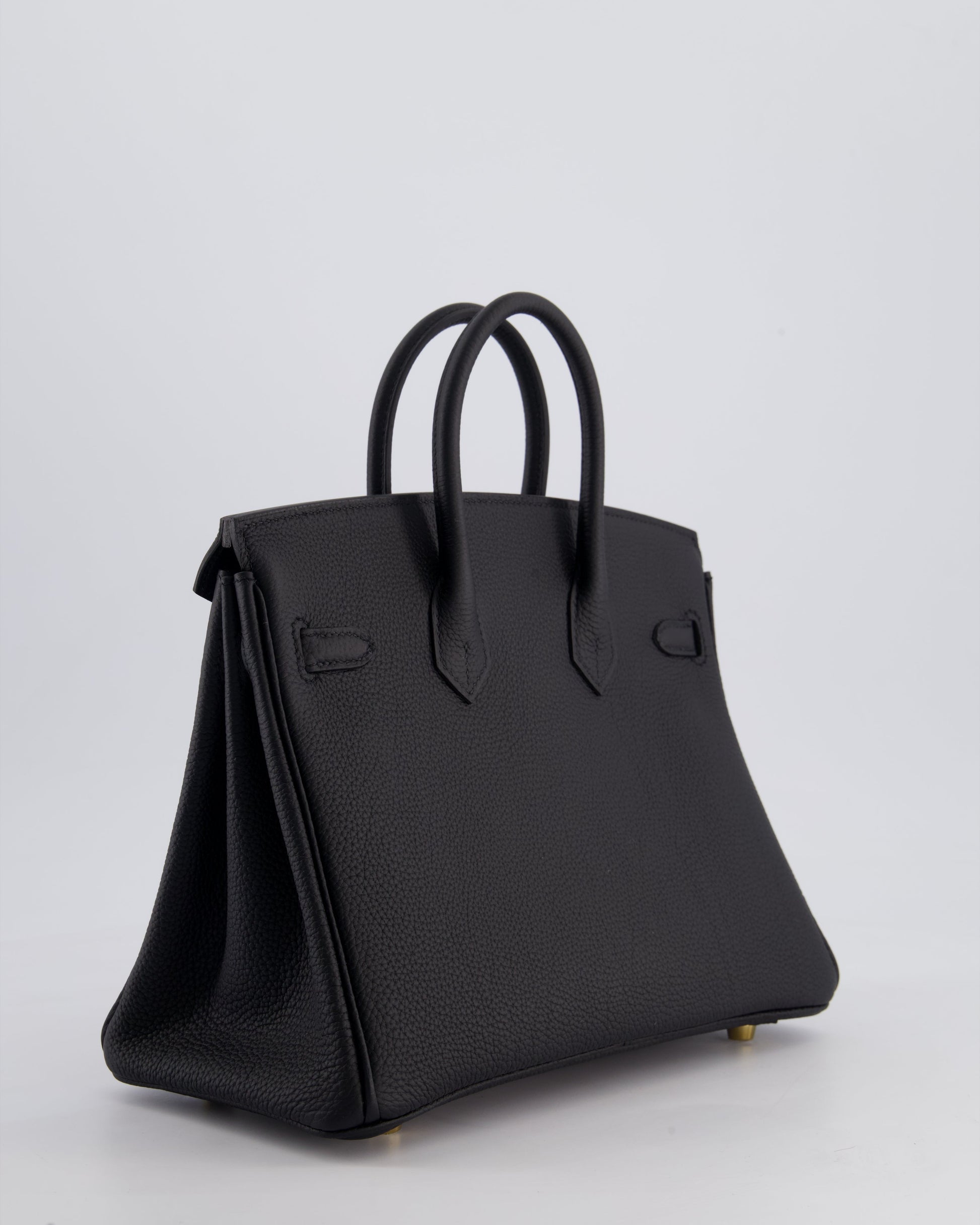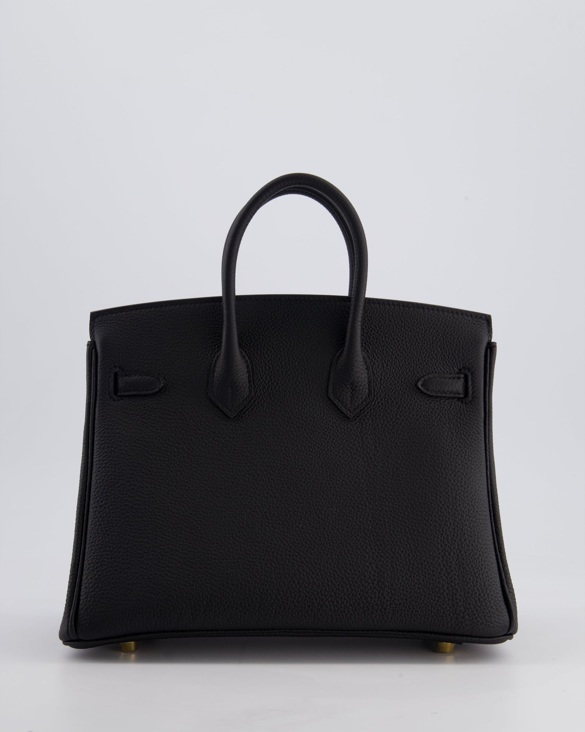 *SUPER RARE* Hermès Birkin 25 Retourne Bag in Noir Togo Leather with Brushed Gold Hardware