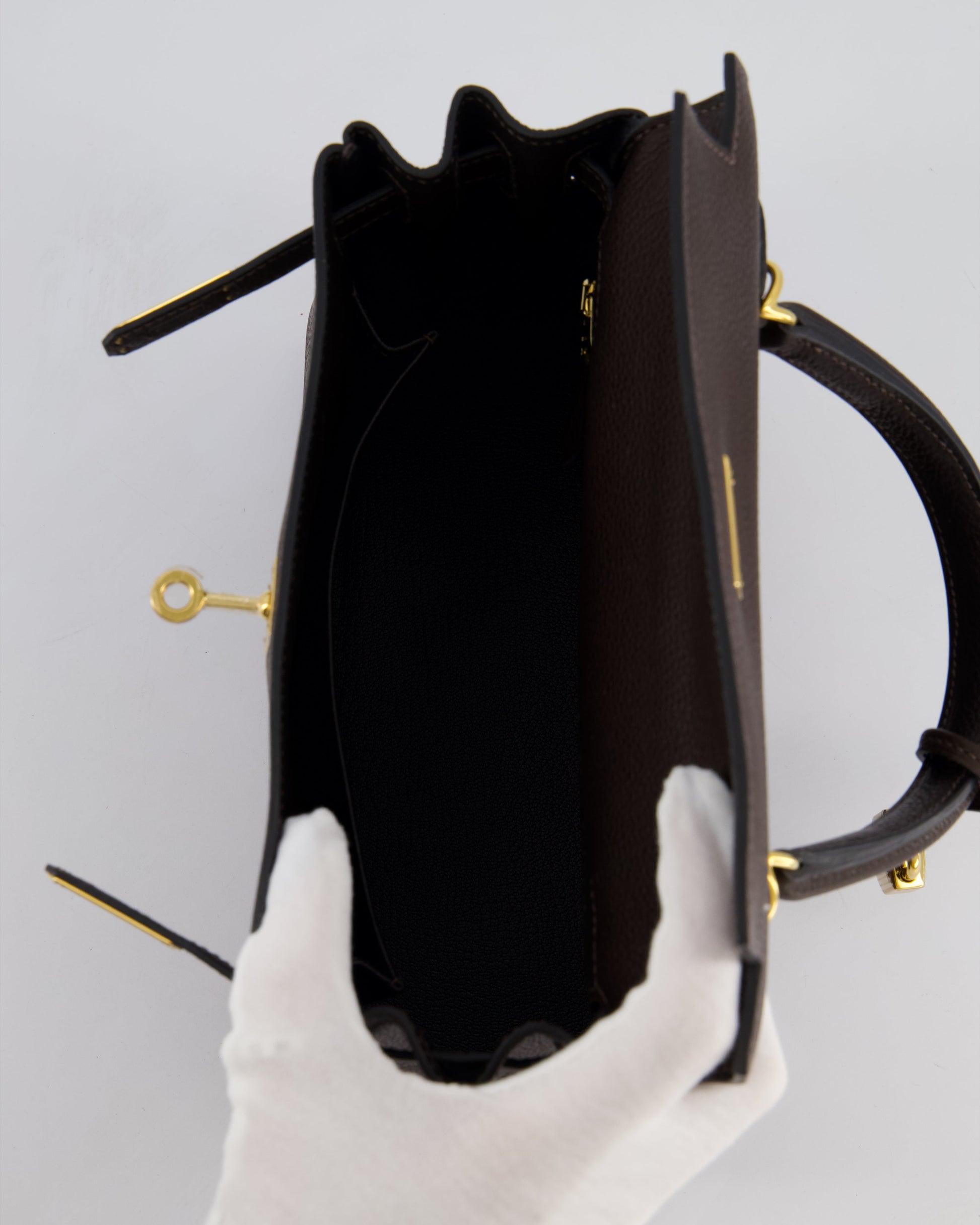 *SUPER RARE* Hermès Kelly Bag 25cm Retourne in Ebene Barenia Faubourg Leather with Gold Hardware
