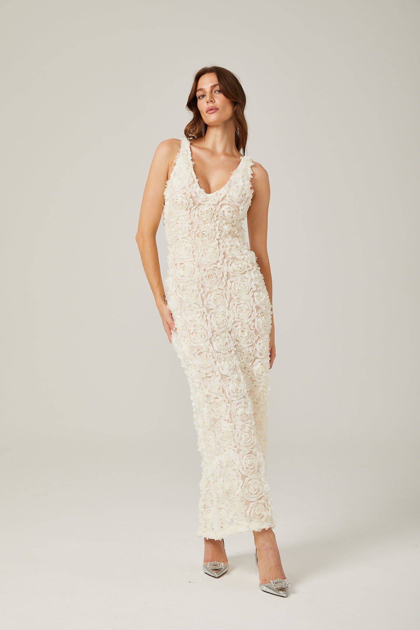 Sylvie faux-flower V-neck maxi dress in Neutrals