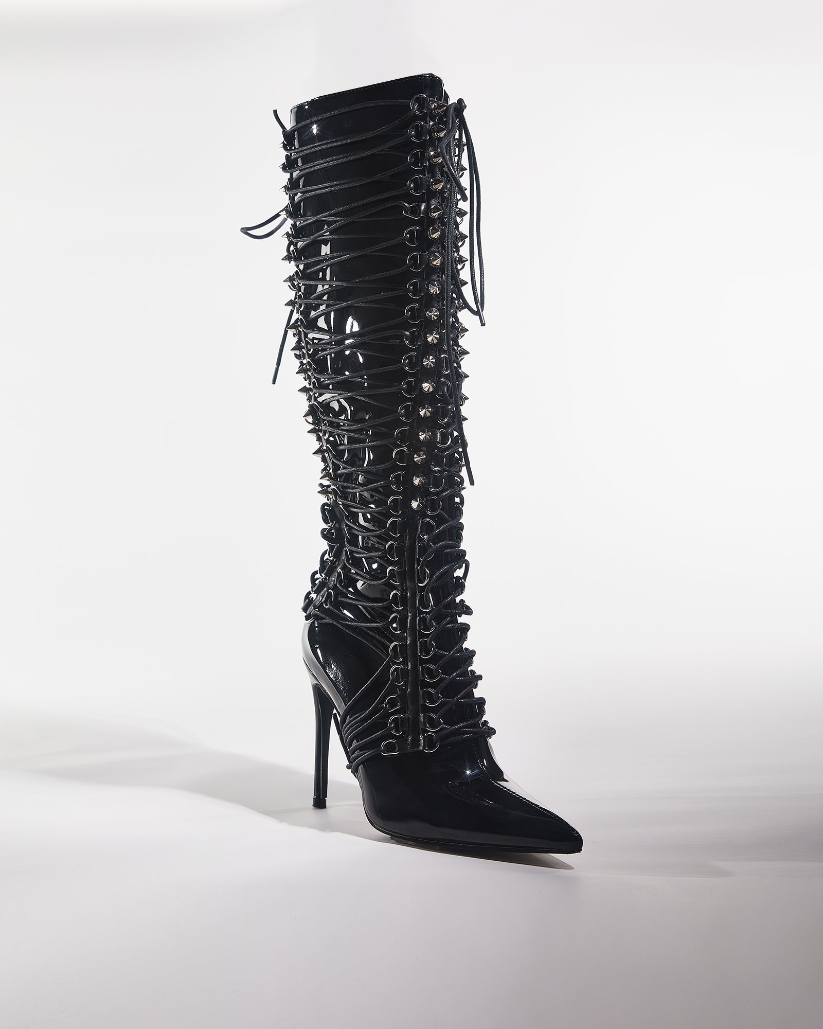 Step into bold elegance with our Tala Patent Leather Lace Up Knee High Boots. The glossy patent finish catches every light, while the lace-up design offers both adjustable comfort and head-turning style. These statement boots elevate any outfit from ordinary to extraordinary, creating a powerful silhouette that commands attention wherever you go.