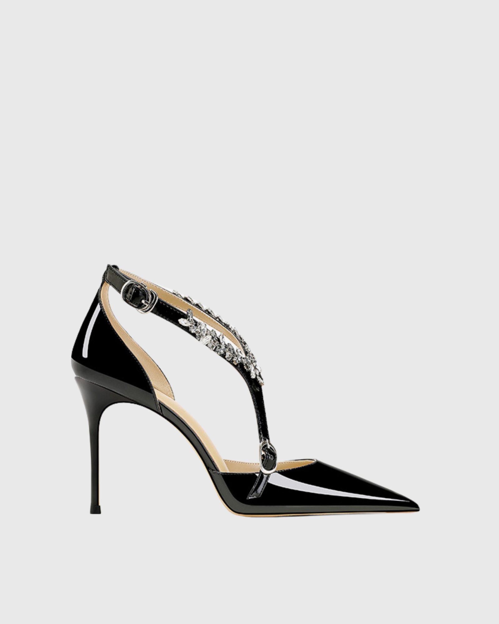 Teagan Rhinestone Halter Neck Strap Pumps In Black