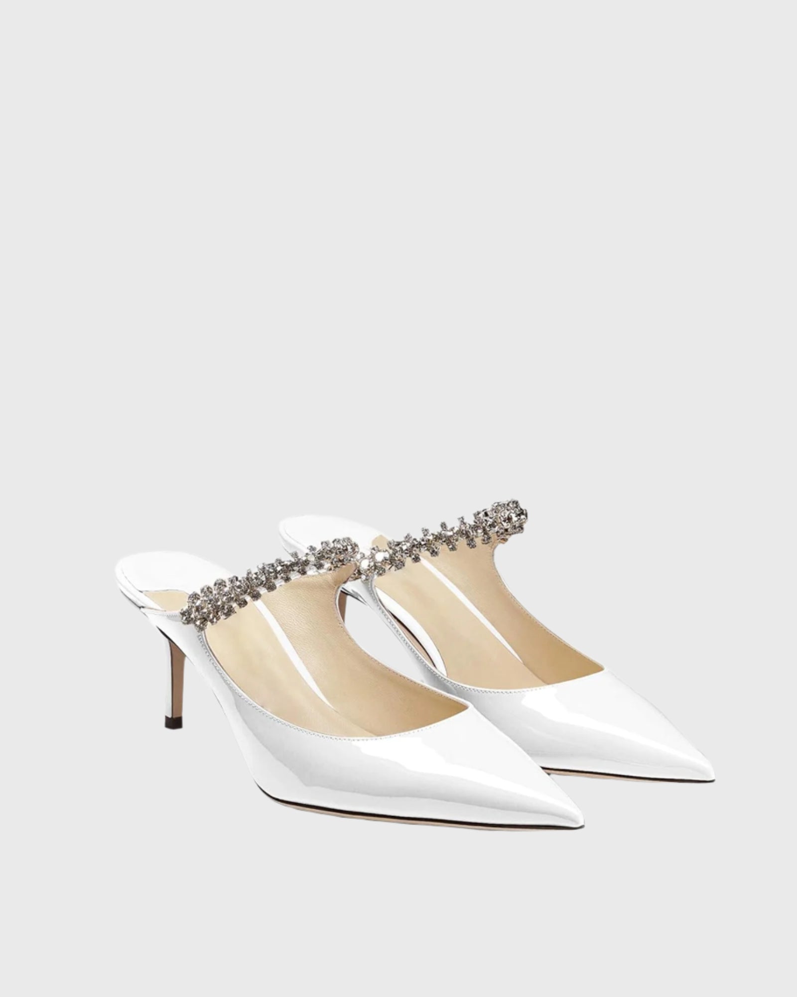 Elevate your style with these Terza Rhinestone Strap Mules! These stunning white mules feature a bedazzling rhinestone strap, adding a touch of glamour to any outfit. Slip into comfort and luxury with these must-have shoes. Perfect for a night out or a special occasion!