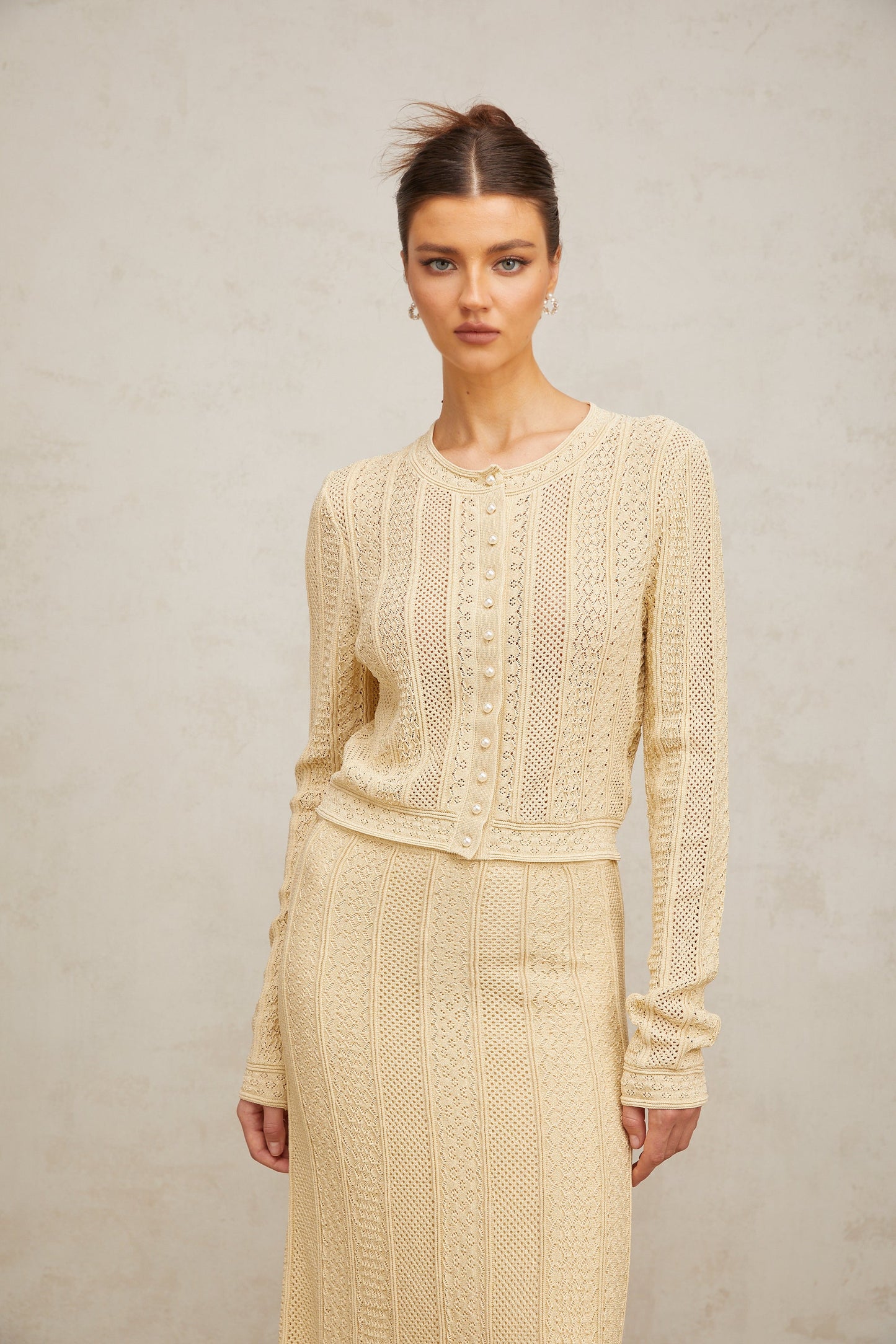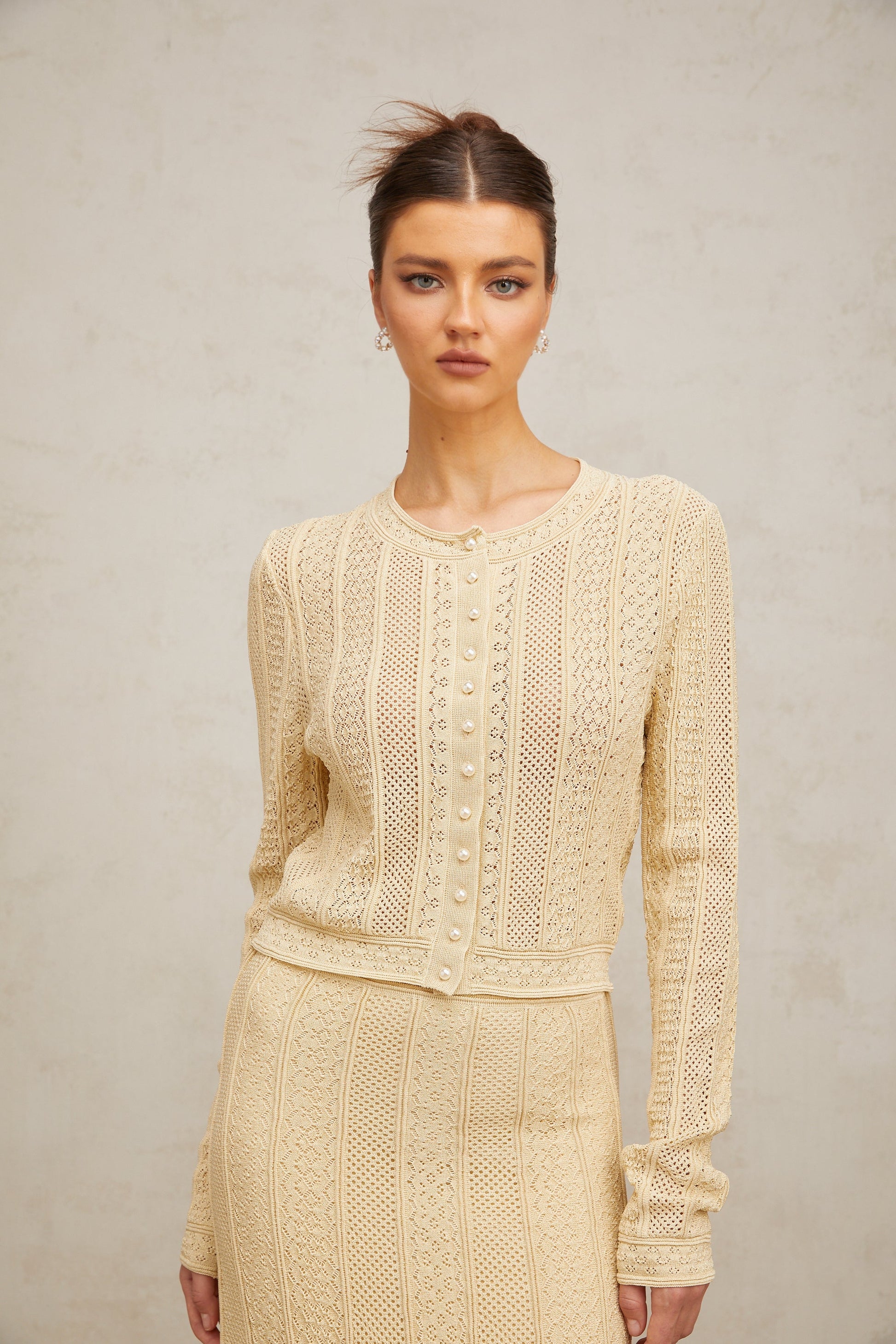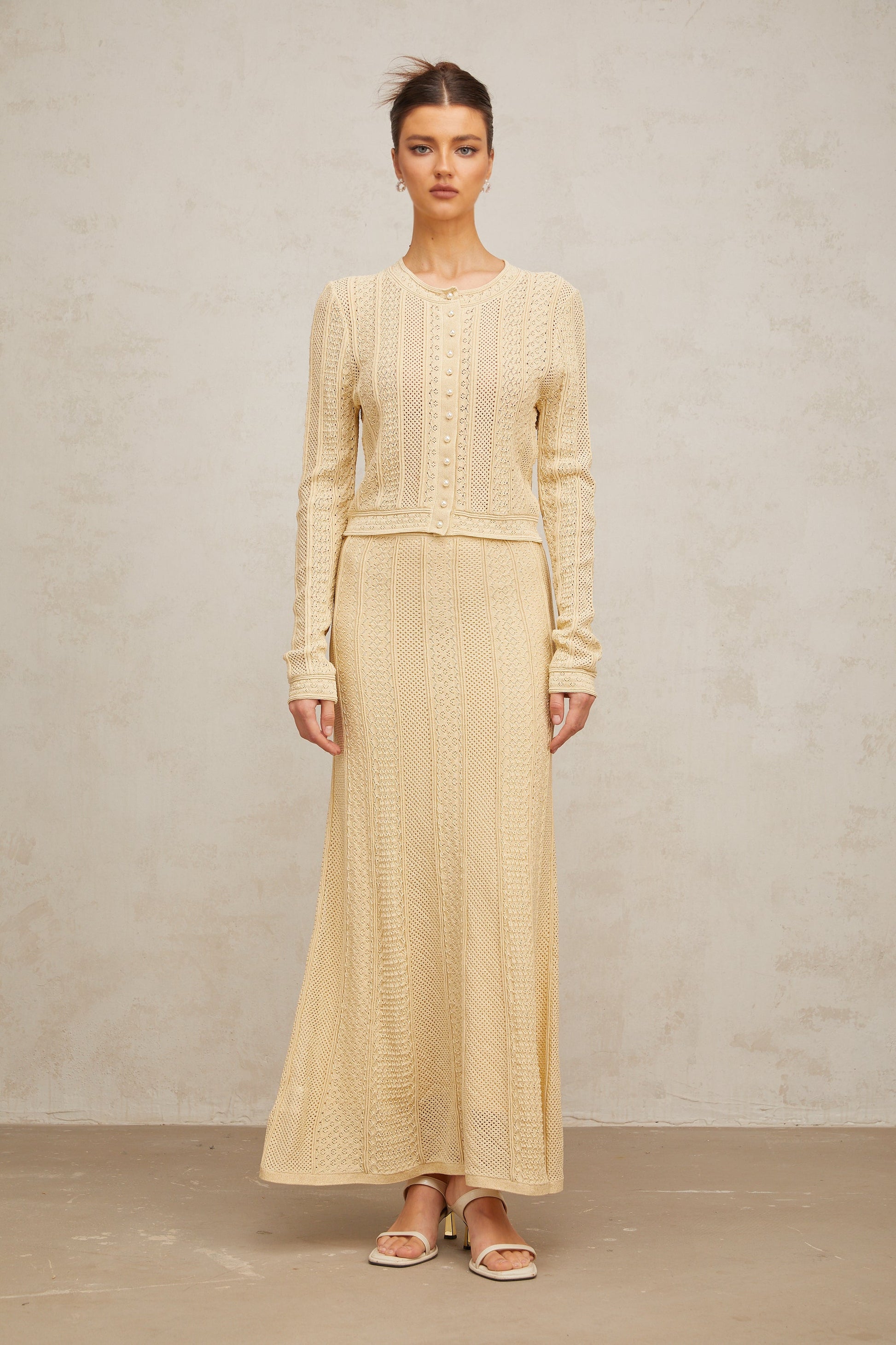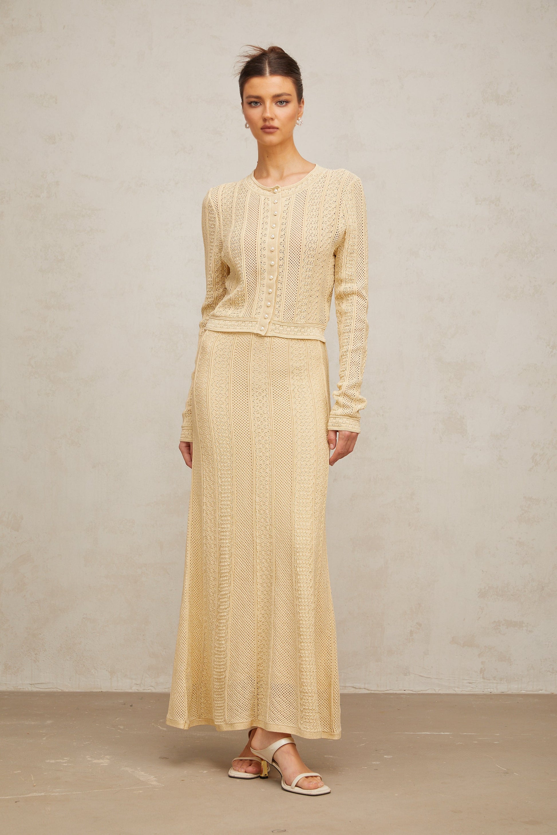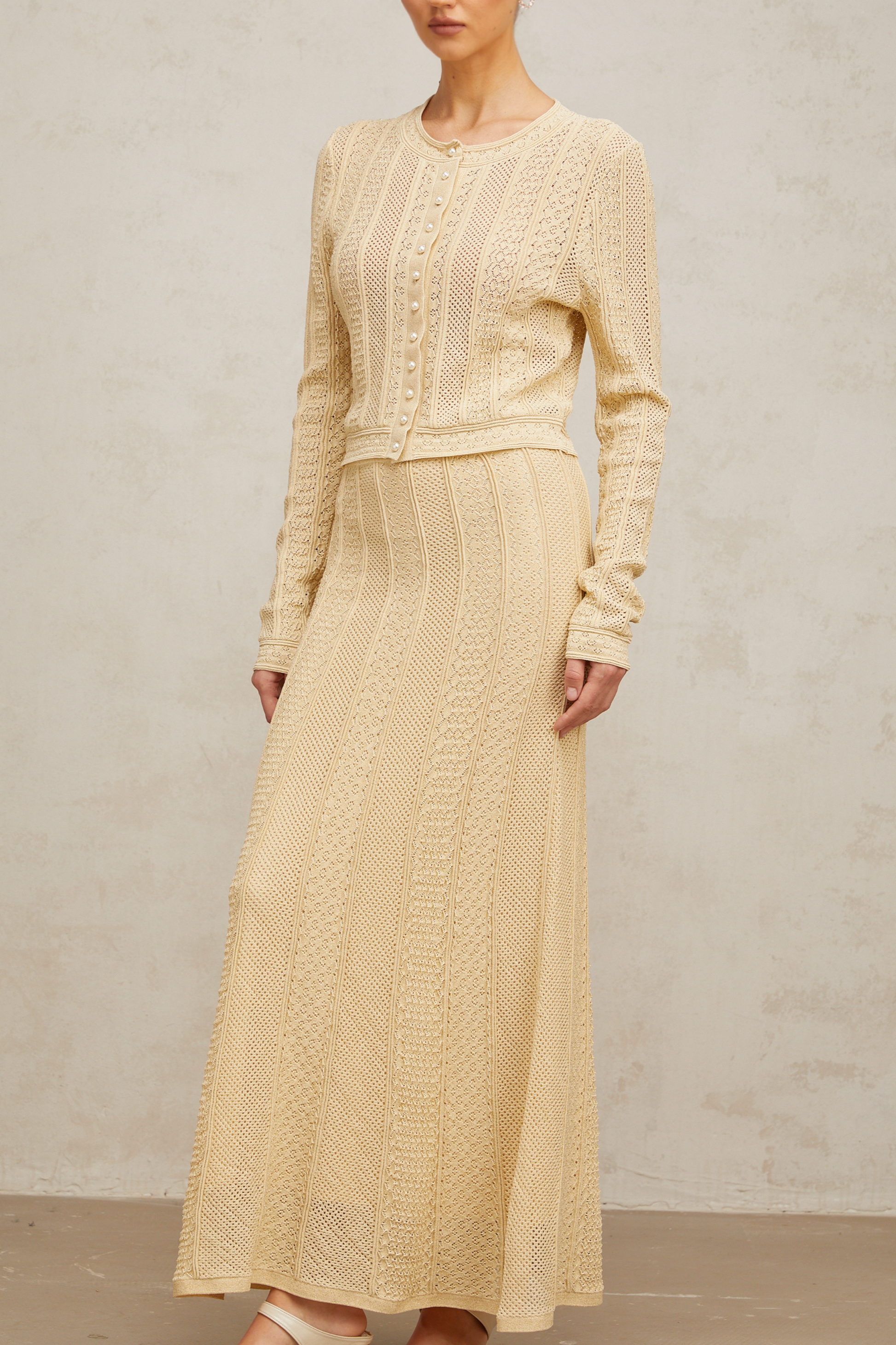 Tiphaine pointelle-knit cardigan & skirt matching set