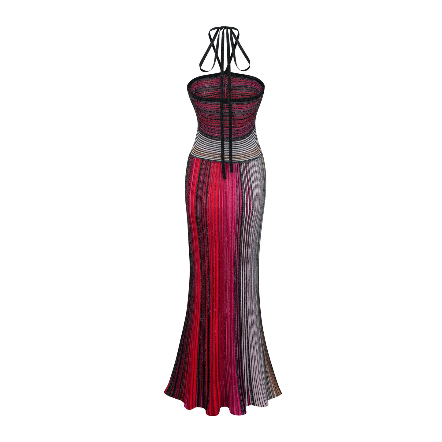 Ulysse Red Metallic Knit Halterneck Maxi Dress