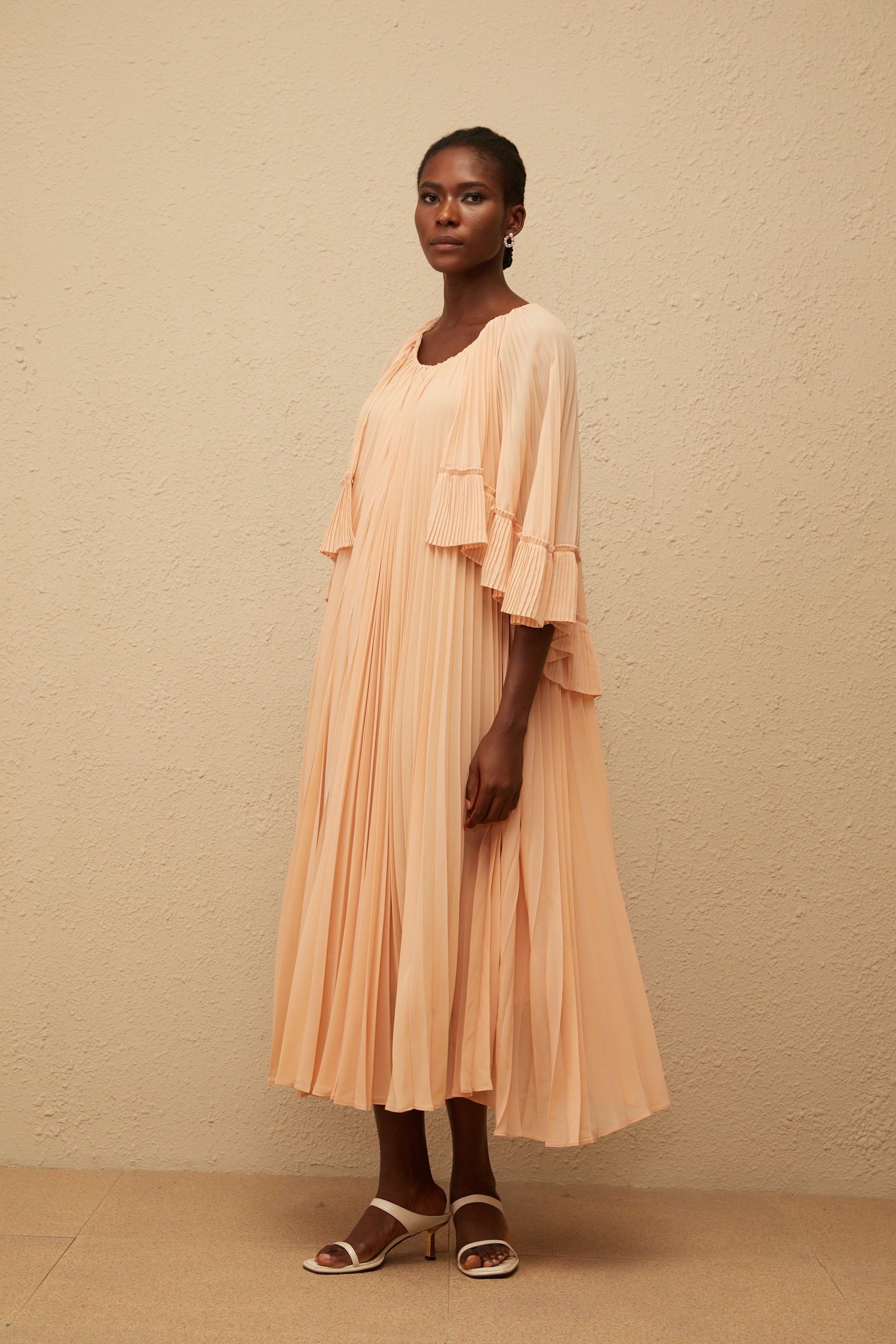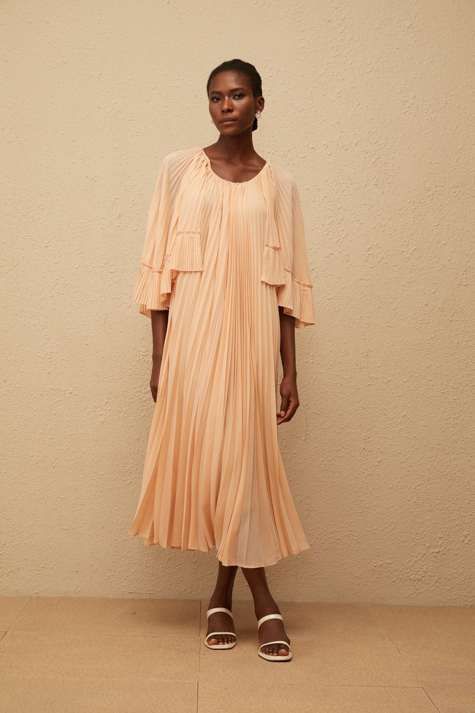 Urbaine Pink Cape Design Pleated Chiffon Midi Dress