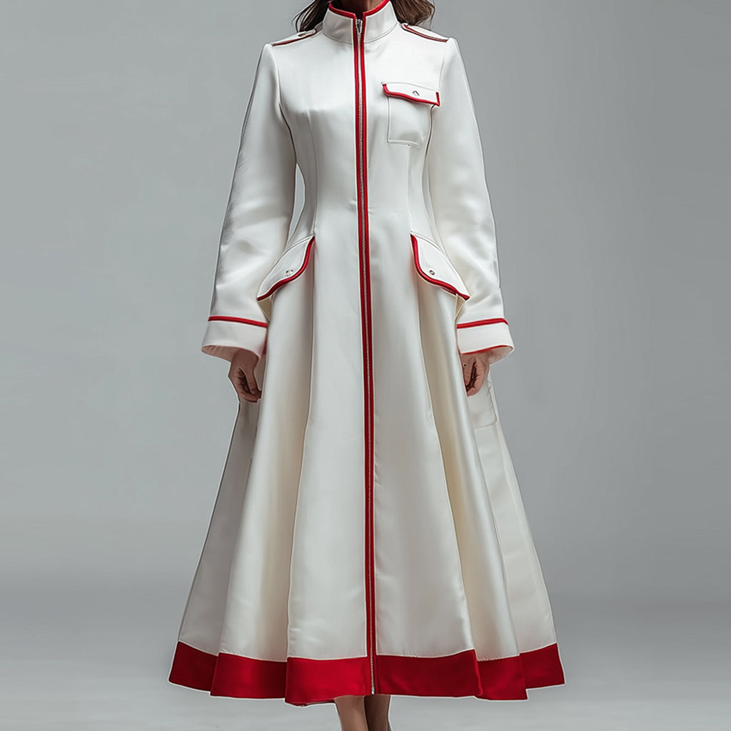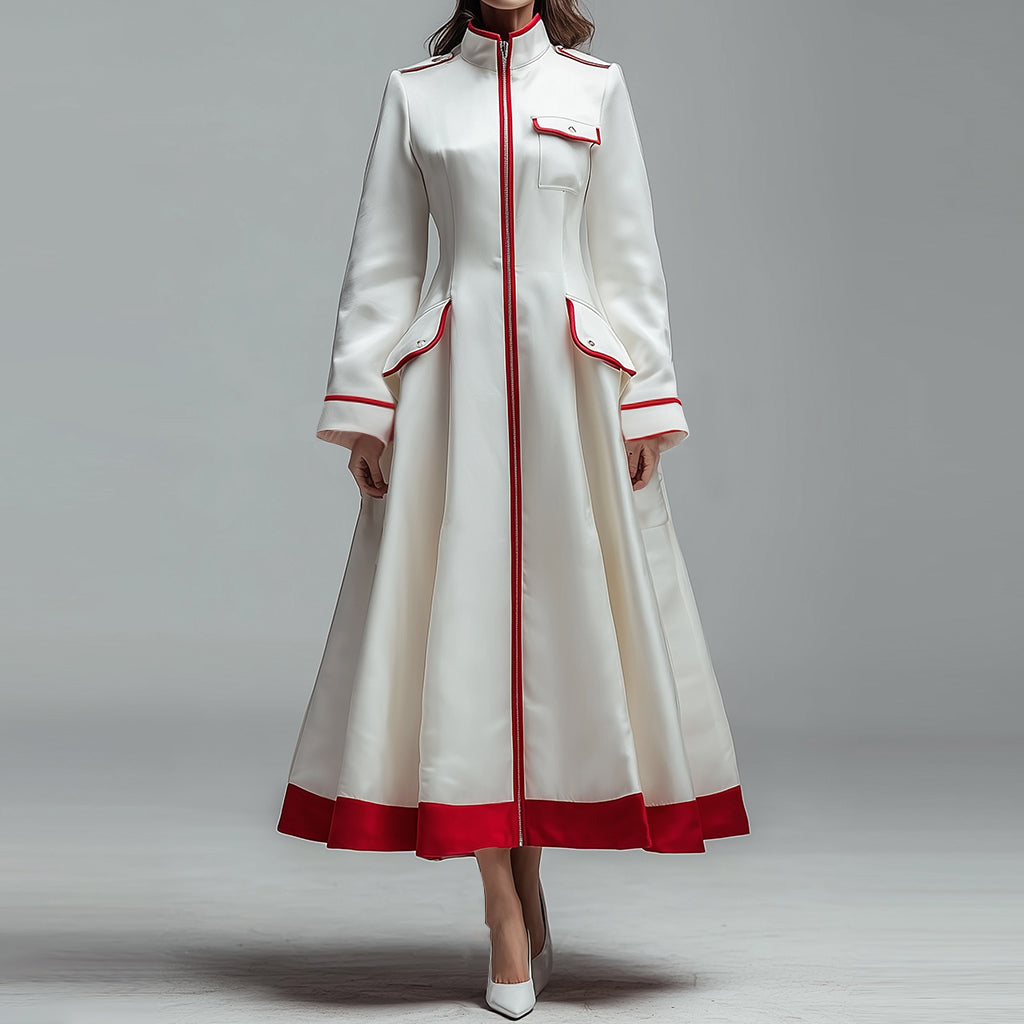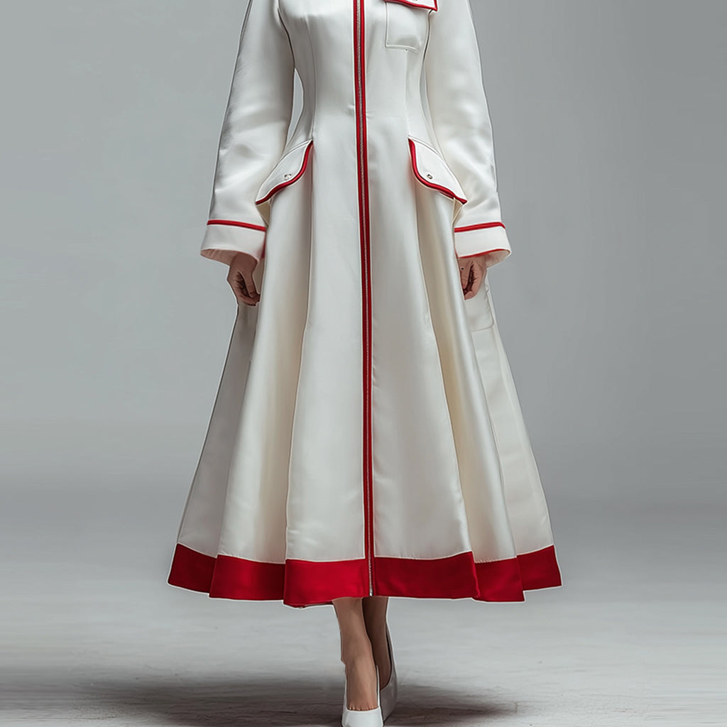 Ursime Contrast Binding Flap Pocket Long Sleeve Coat Midi Dress