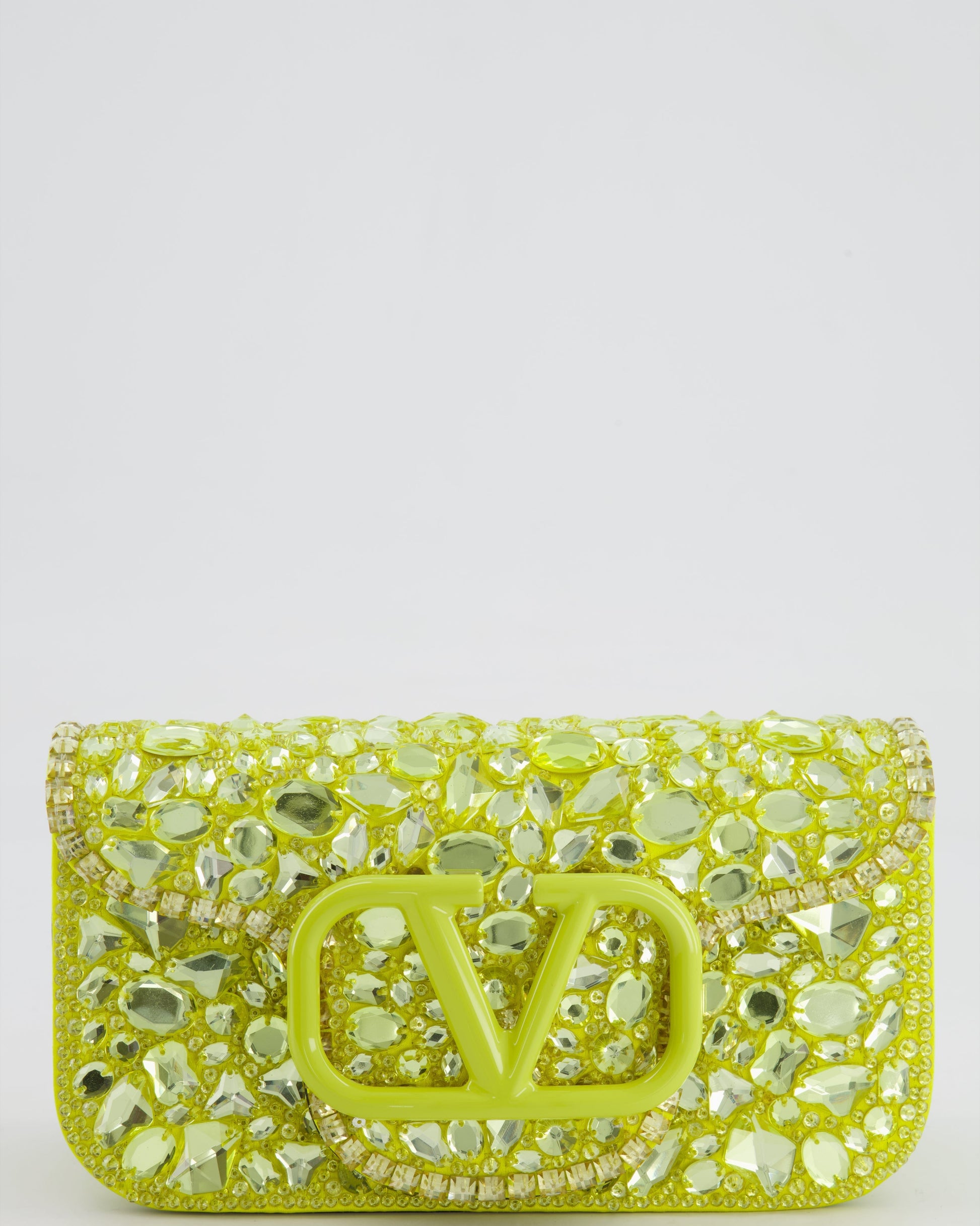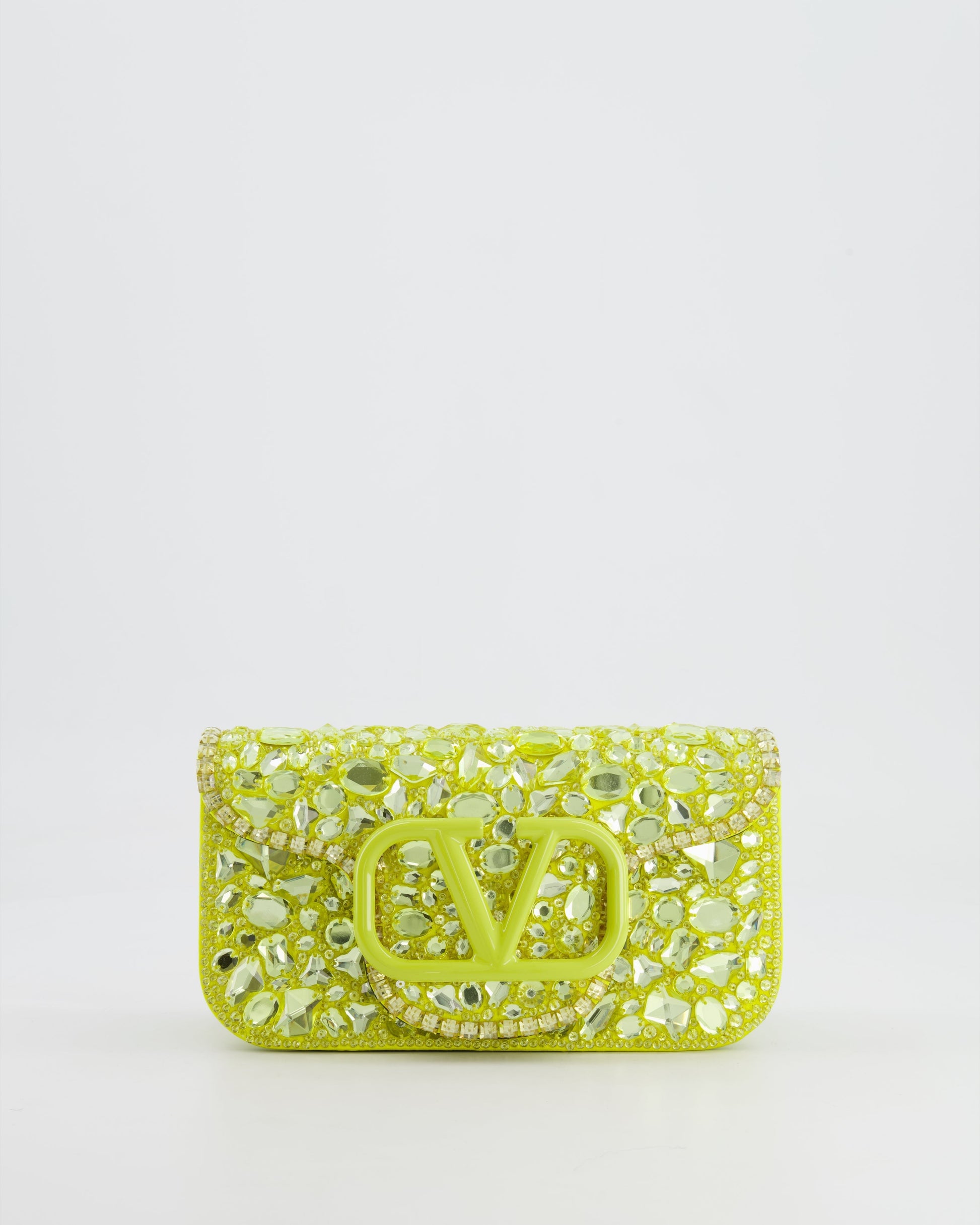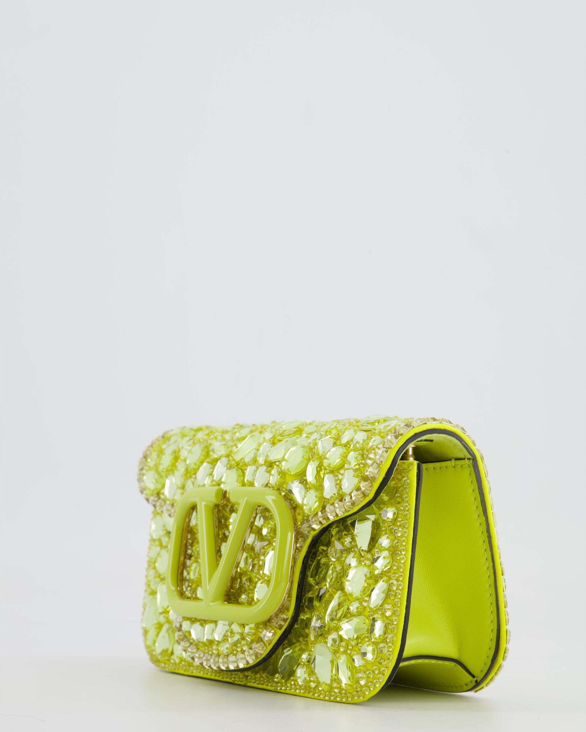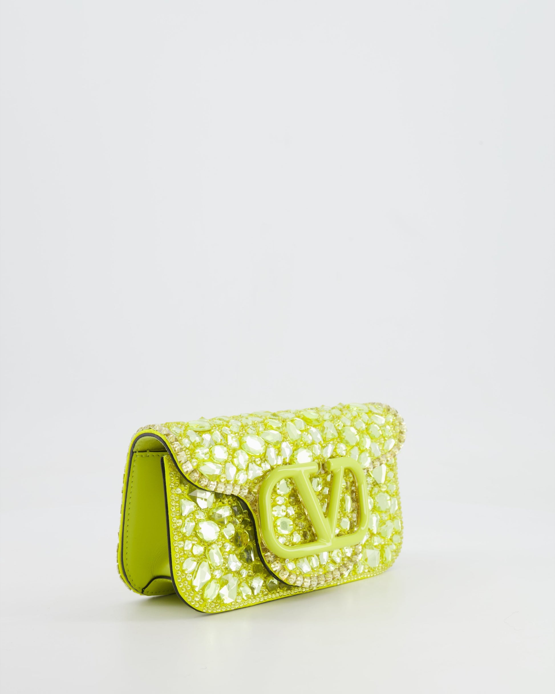 Valentino Lime Small Loco Bag with Crystal Embellishments and Silver Hardware RRP £3,250
