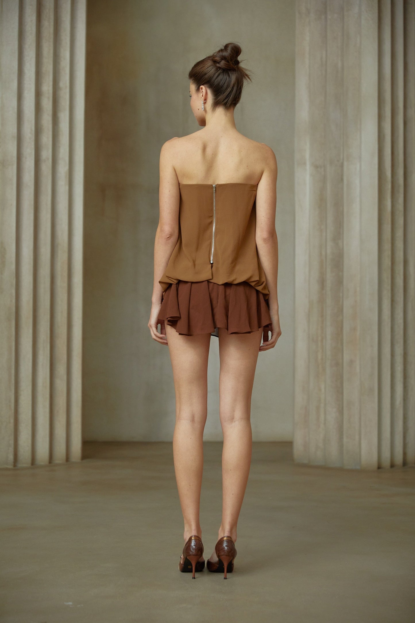 Vanessa brown butterfly-pin panelled top & skirt matching set