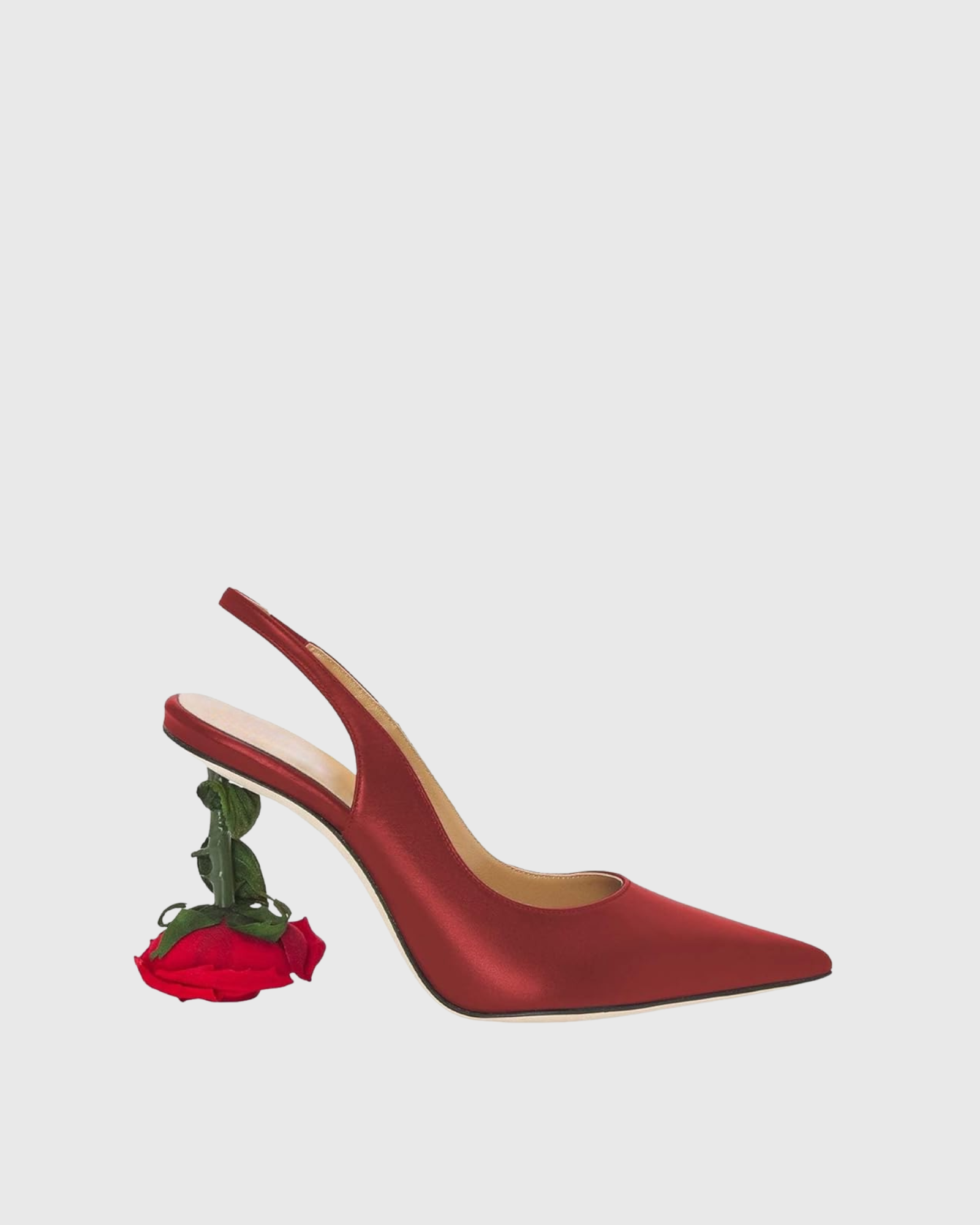 These Venice Flower Heel Satin Slingback Pumps In Red are the perfect combination of elegance and style. The beautiful flower heel adds a touch of femininity and the satin material gives a luxurious feel. Your feet will thank you for the comfort and support these pumps provide while you make a statement.