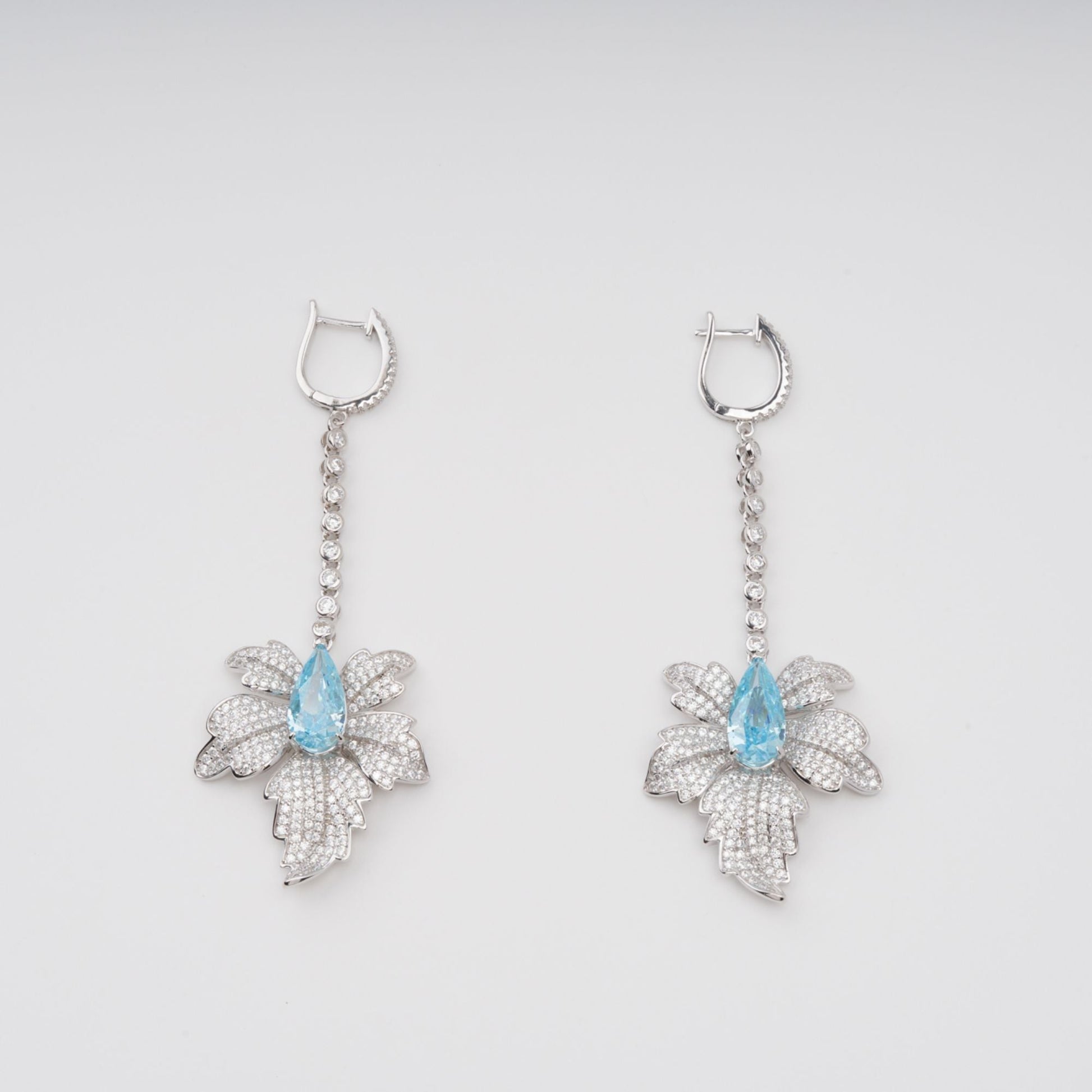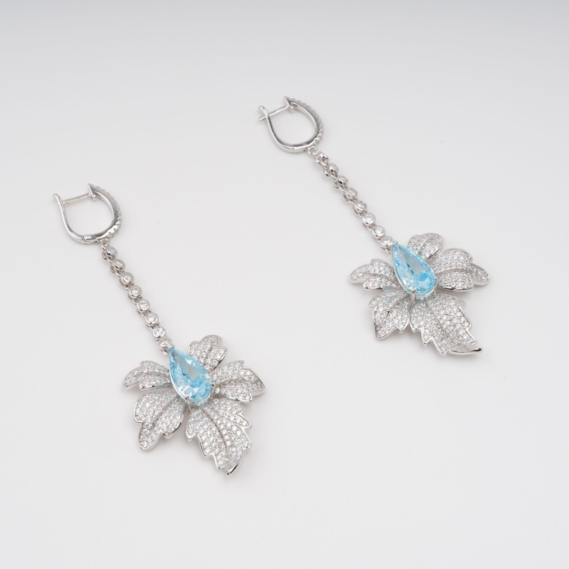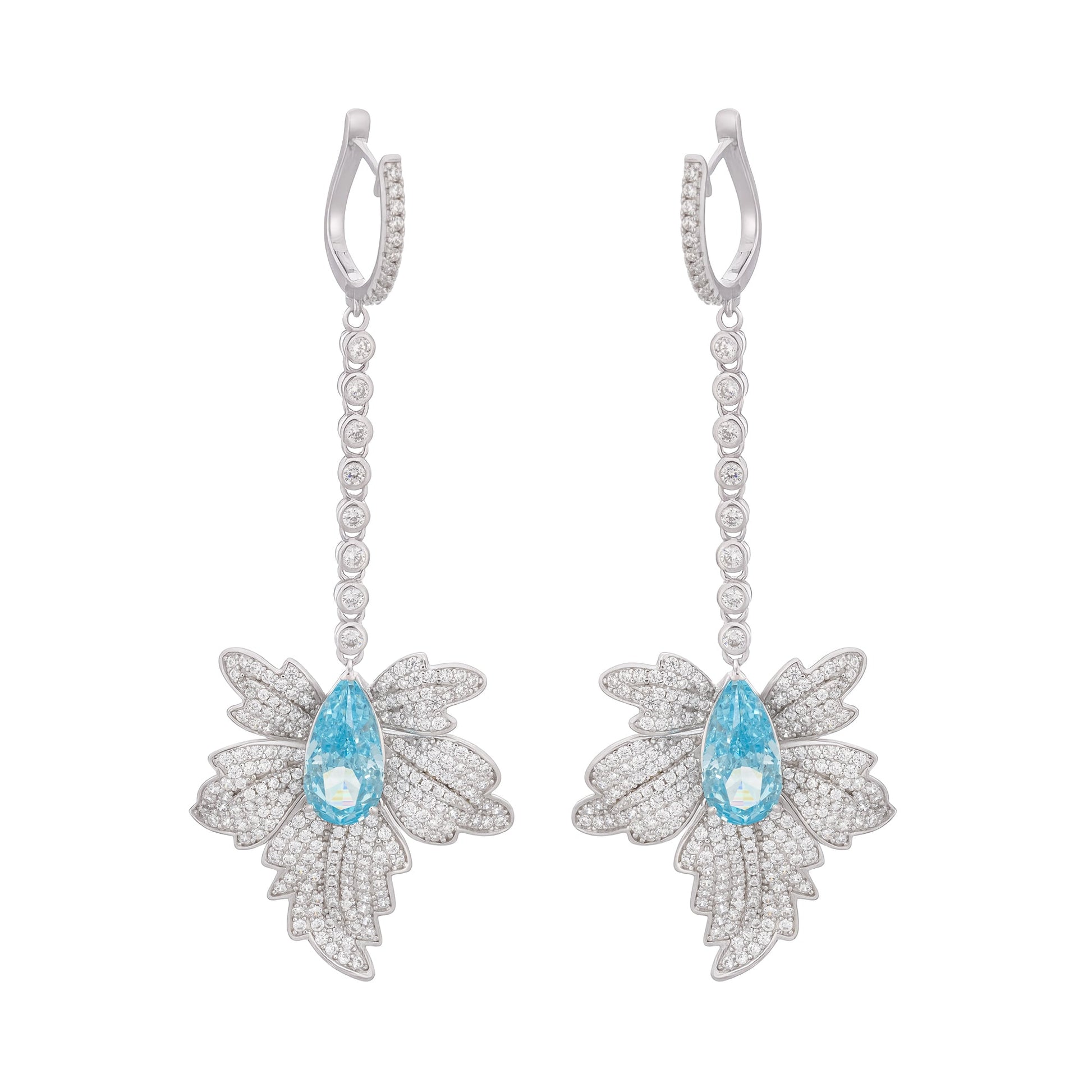 Vilhelmiina Blue Leaf Gemstone Dangle Sterling Silver Earrings