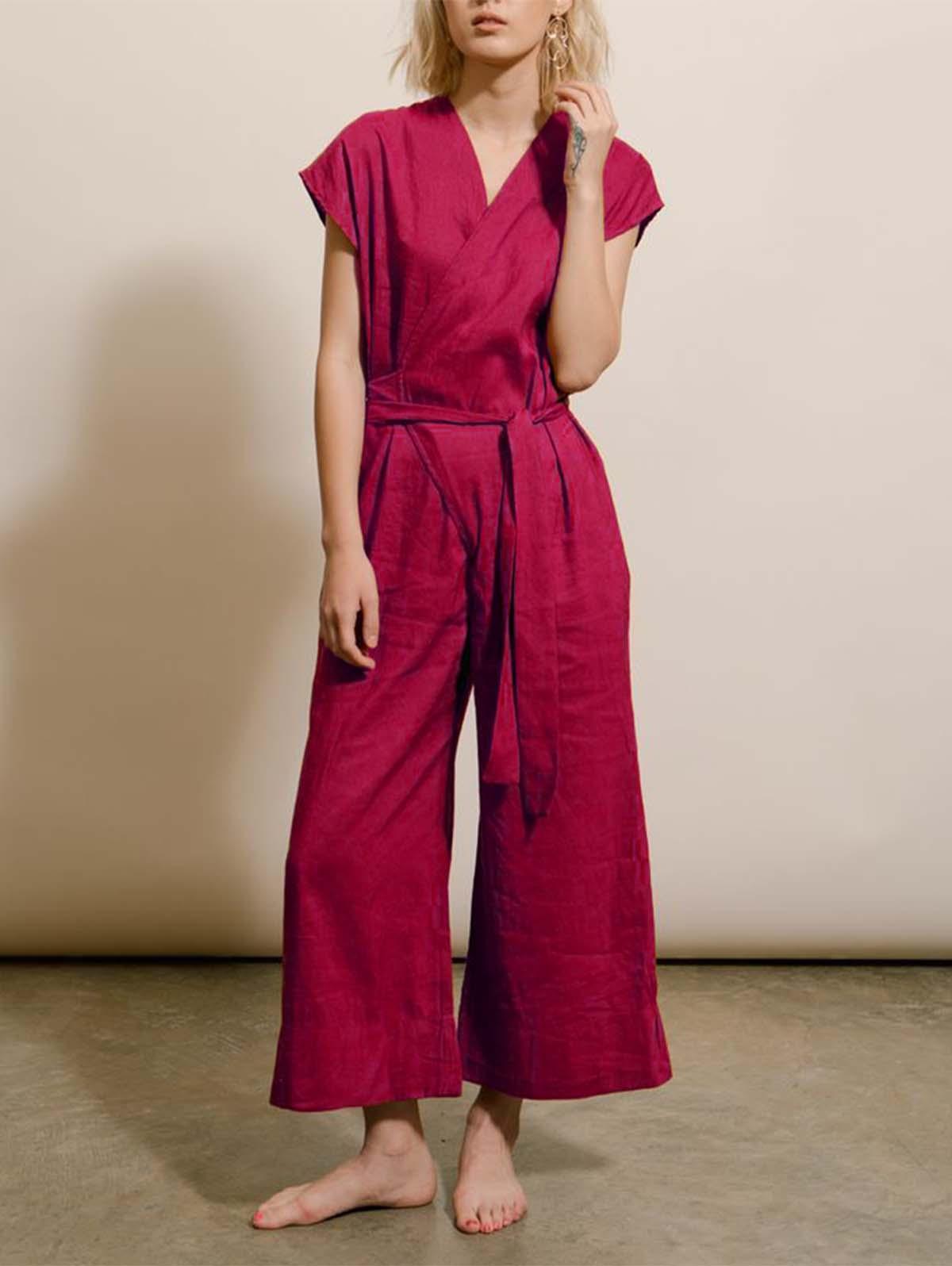 Vintage Wide Leg Linen Wrap Jumpsuit