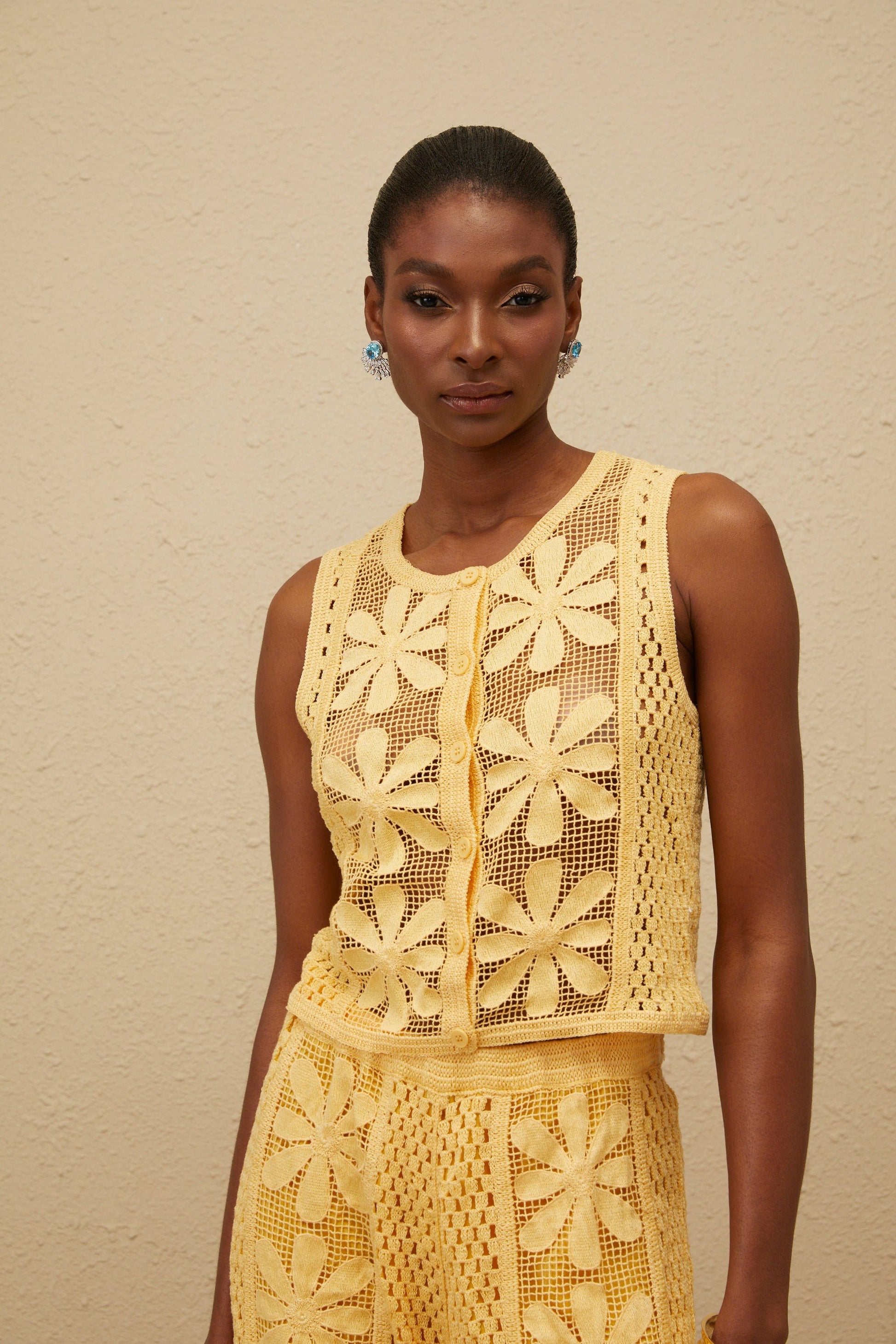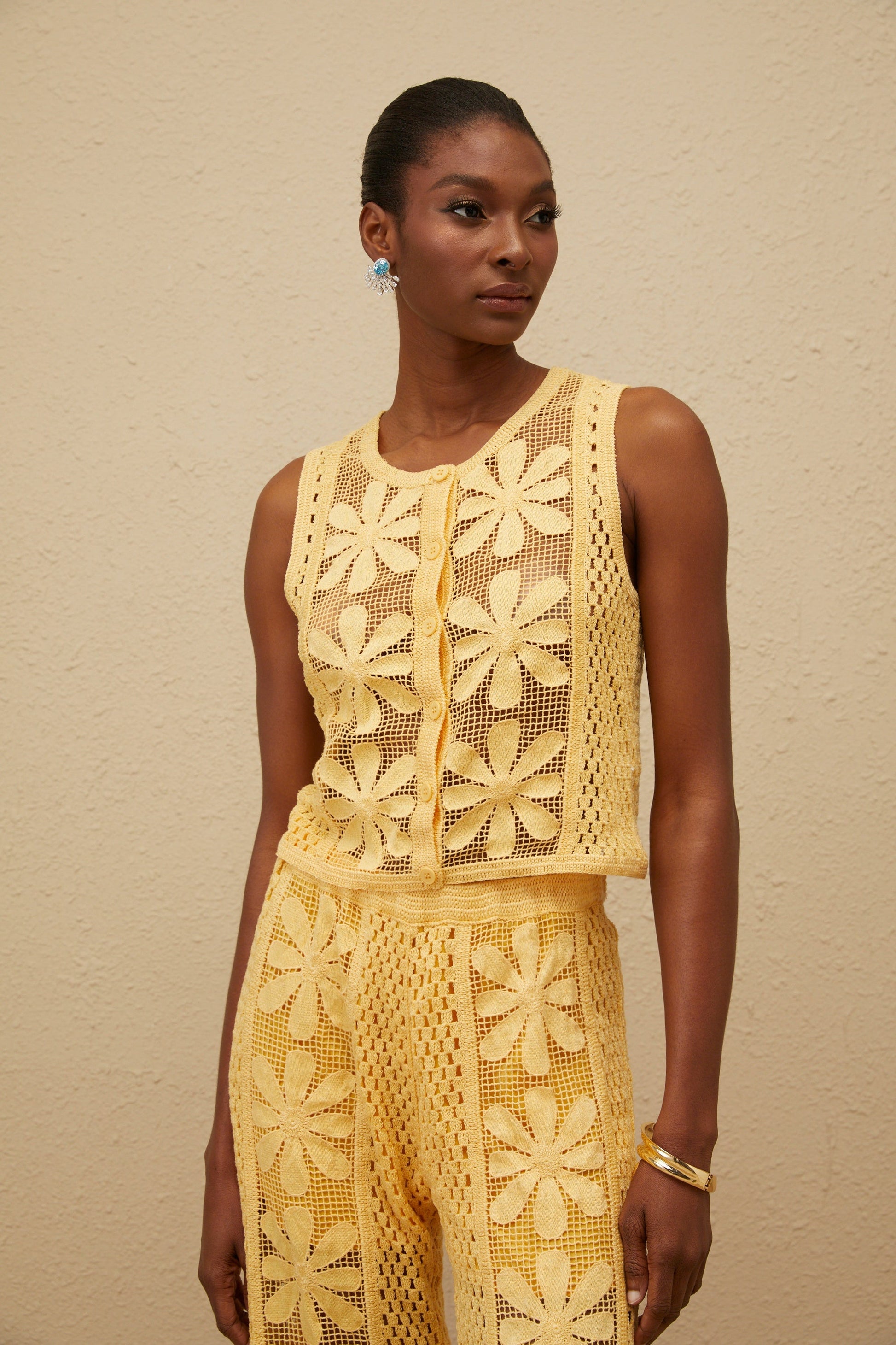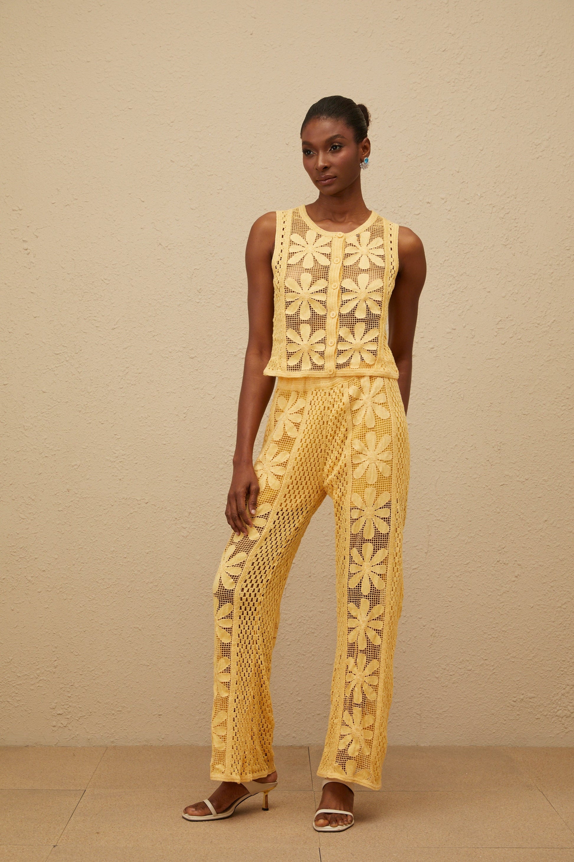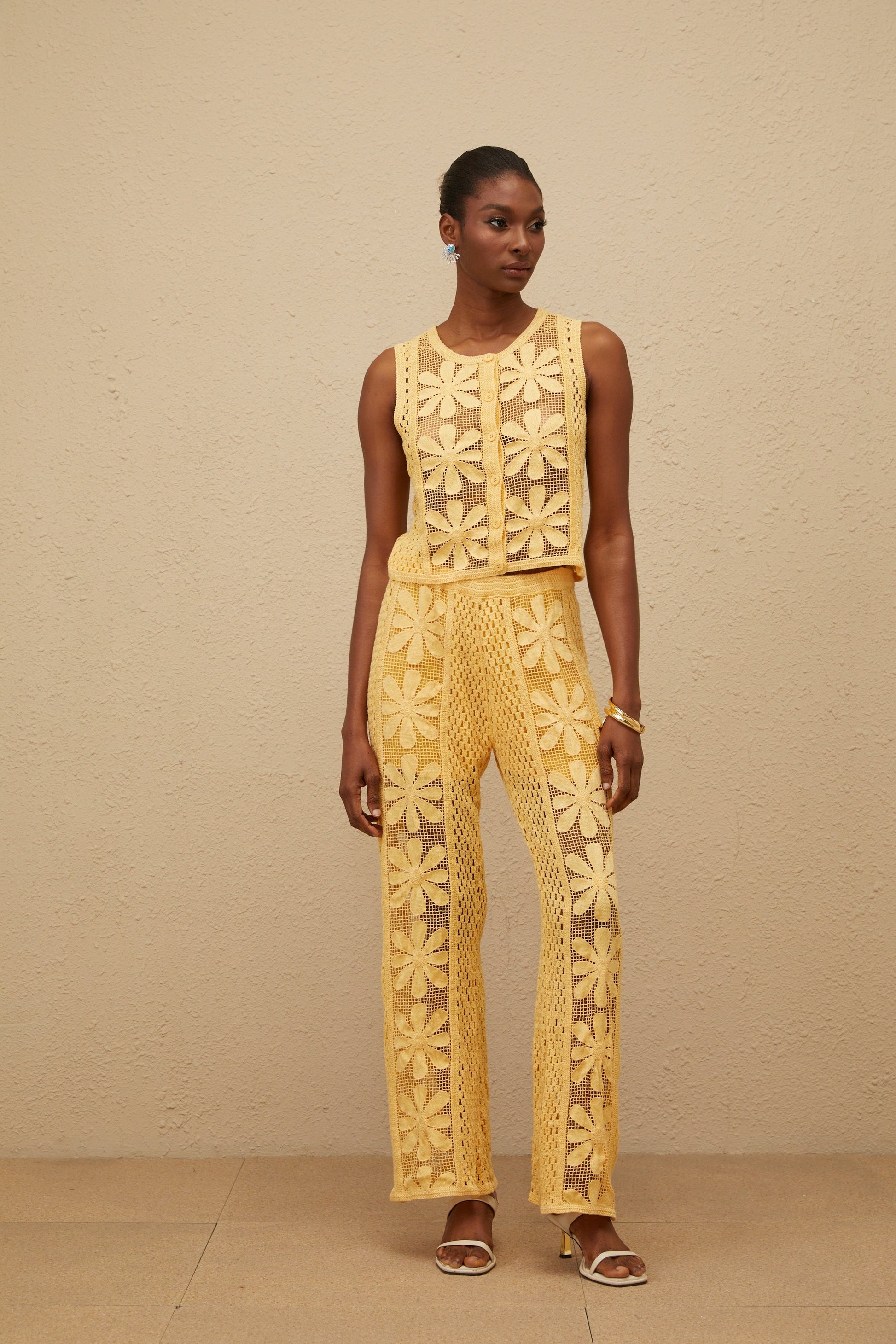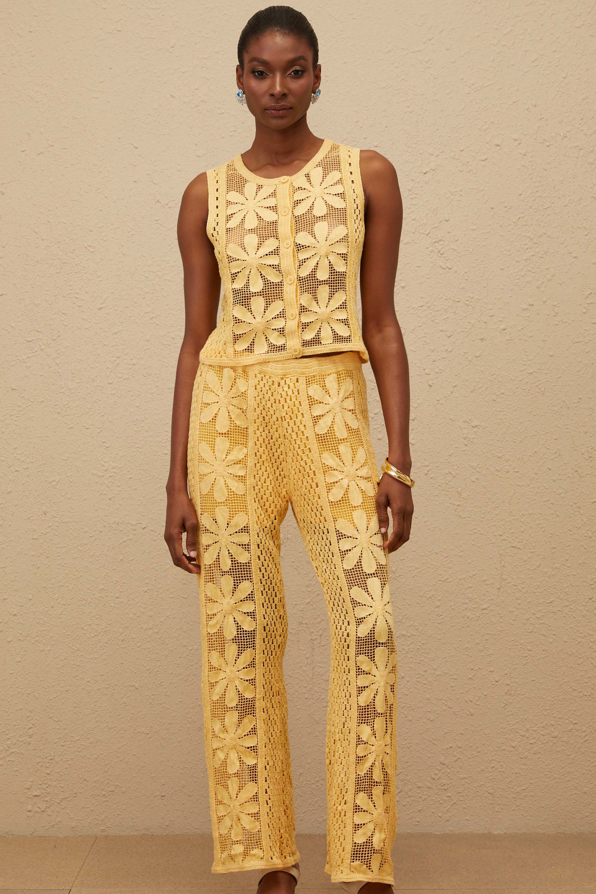 Vivienne Yellow Floral Crochet Knit Co-ord Set