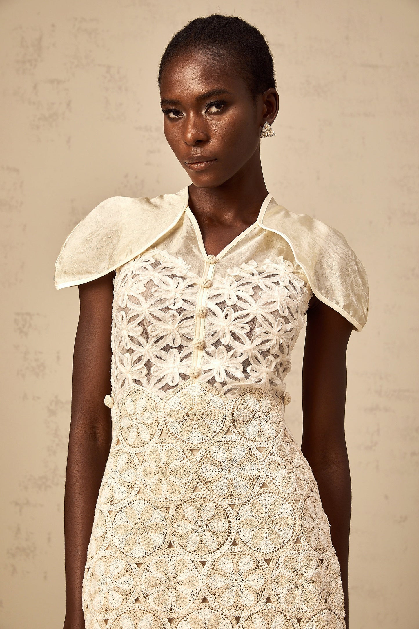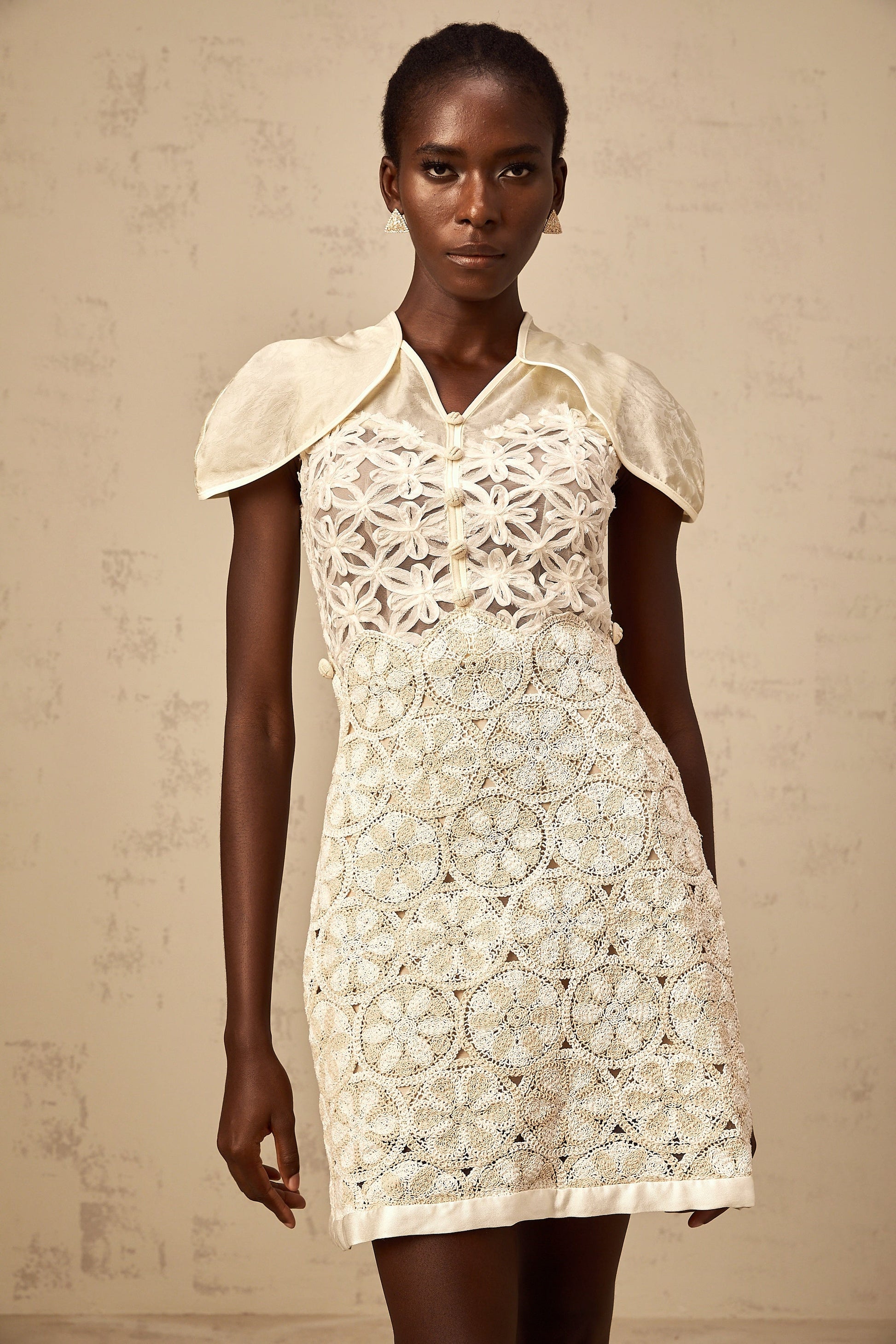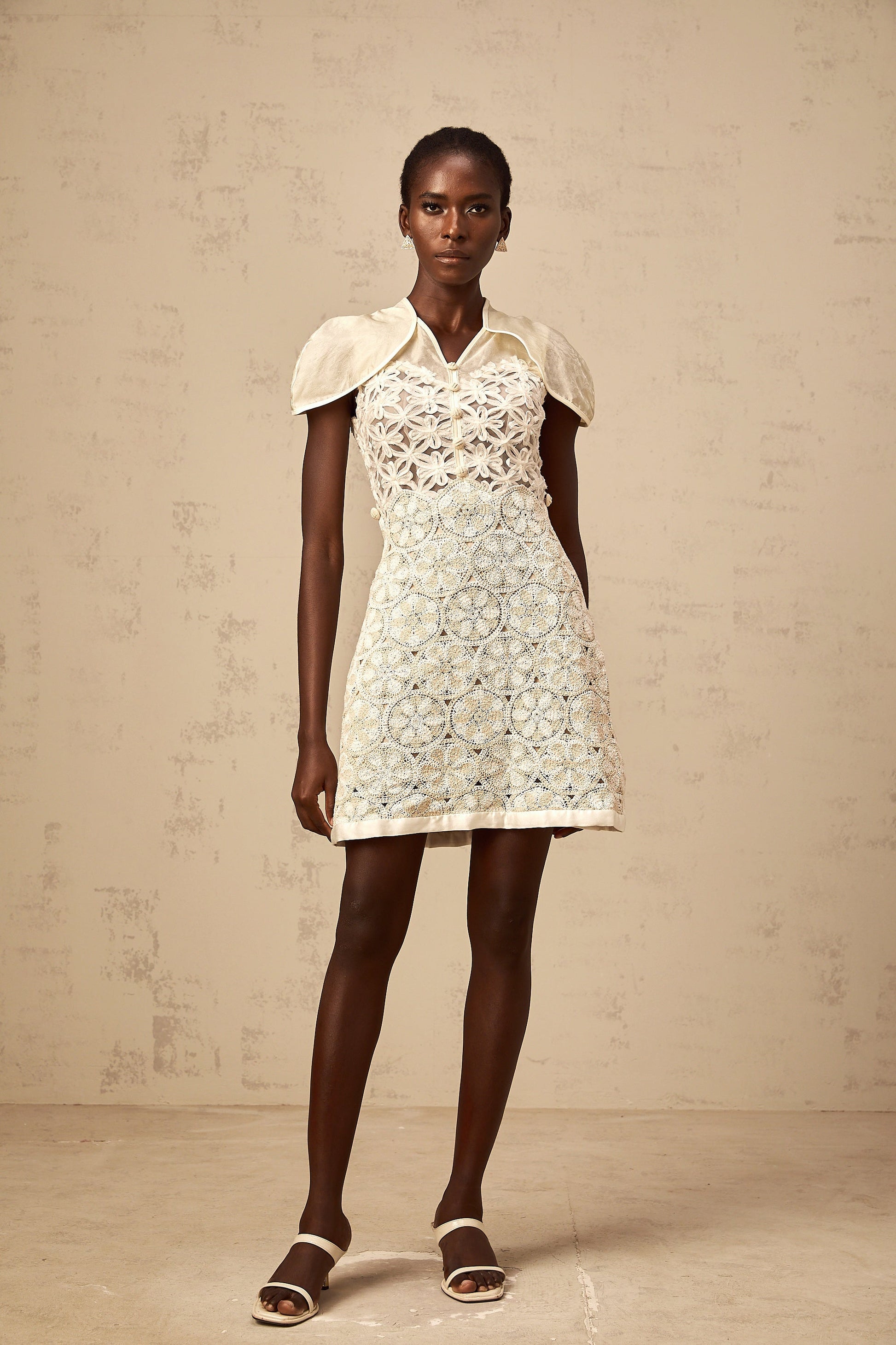 Wilhelmine cream embroidered panelled mini dress