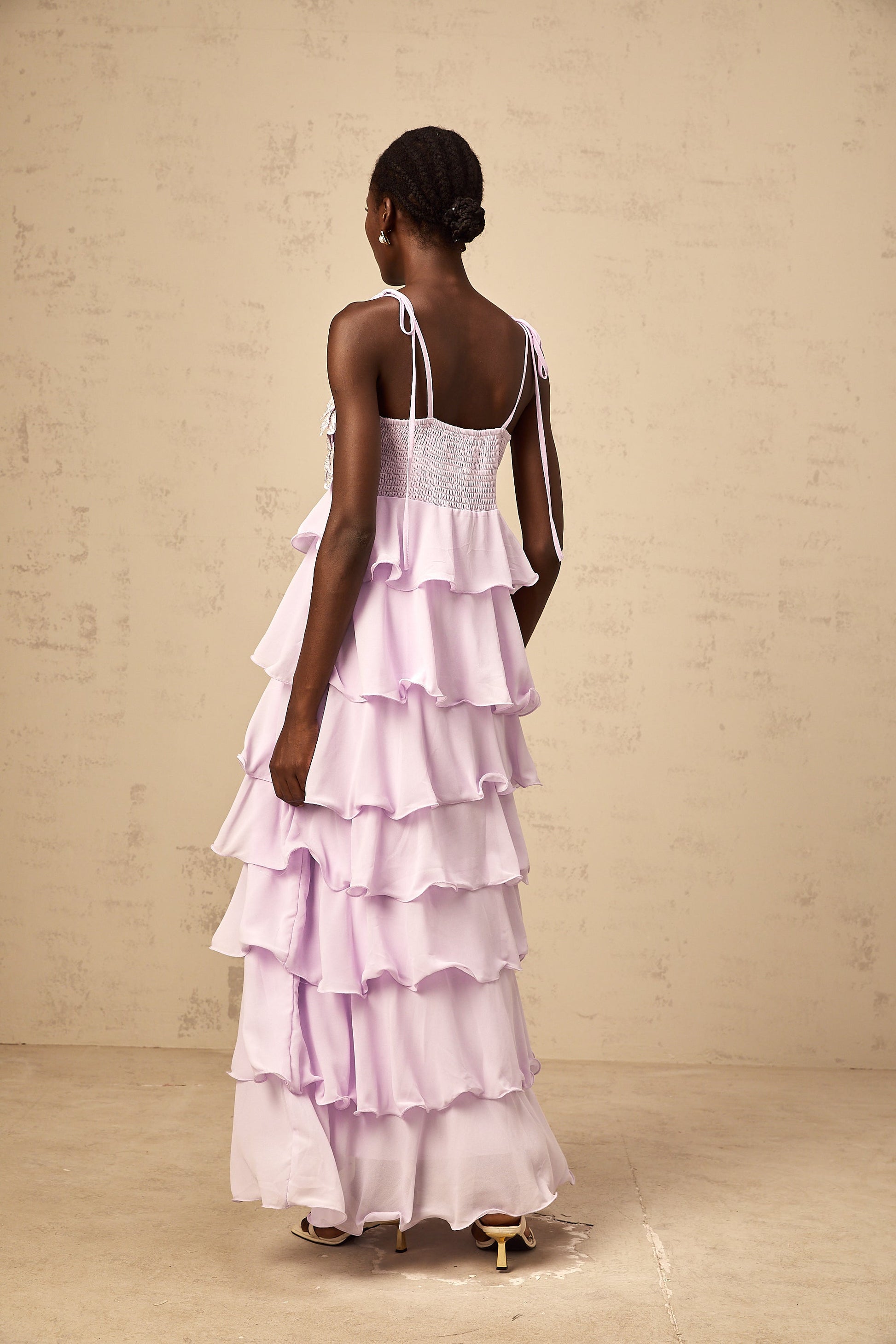 Wilhelmine purple sequined 3d-petal tiered maxi dress