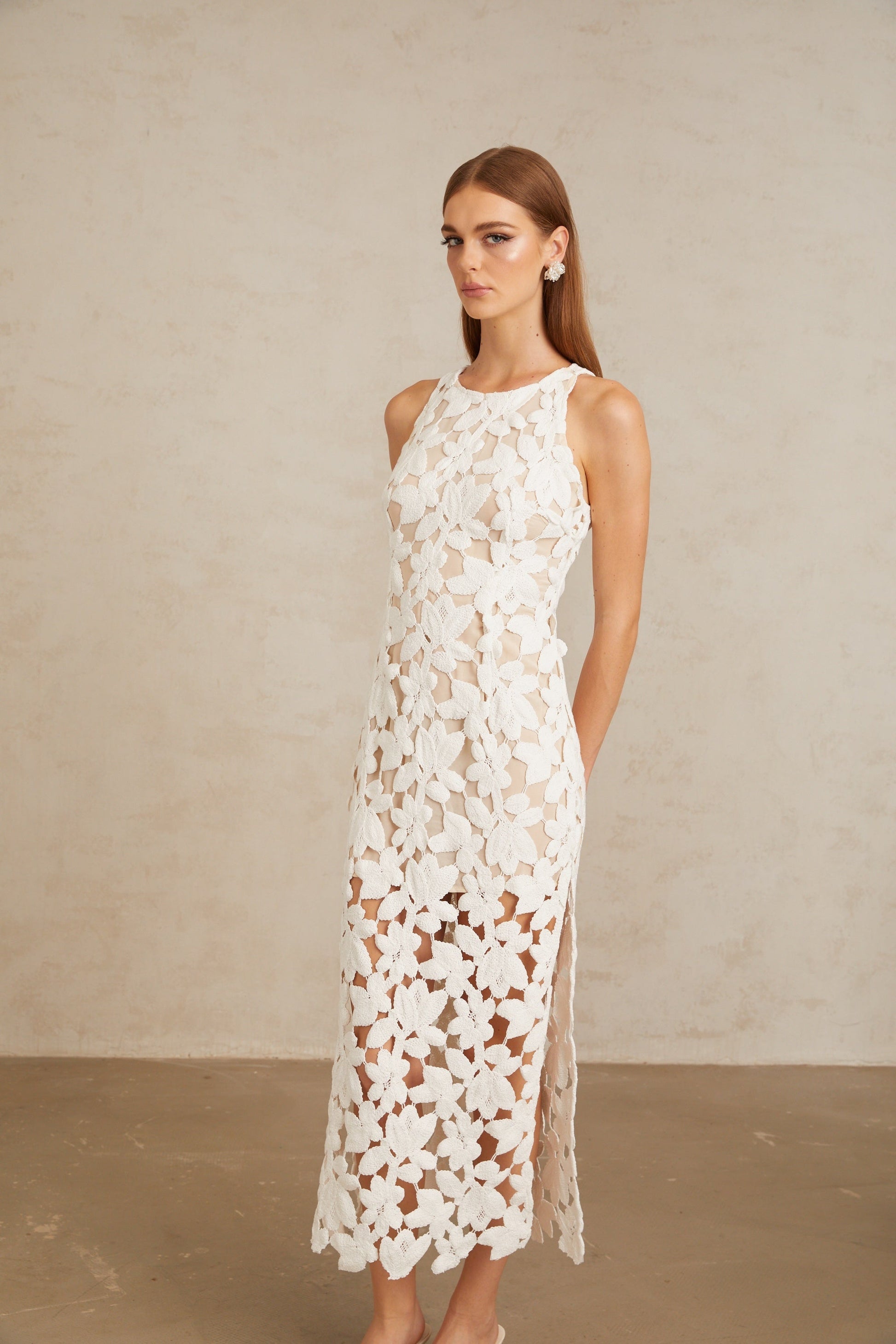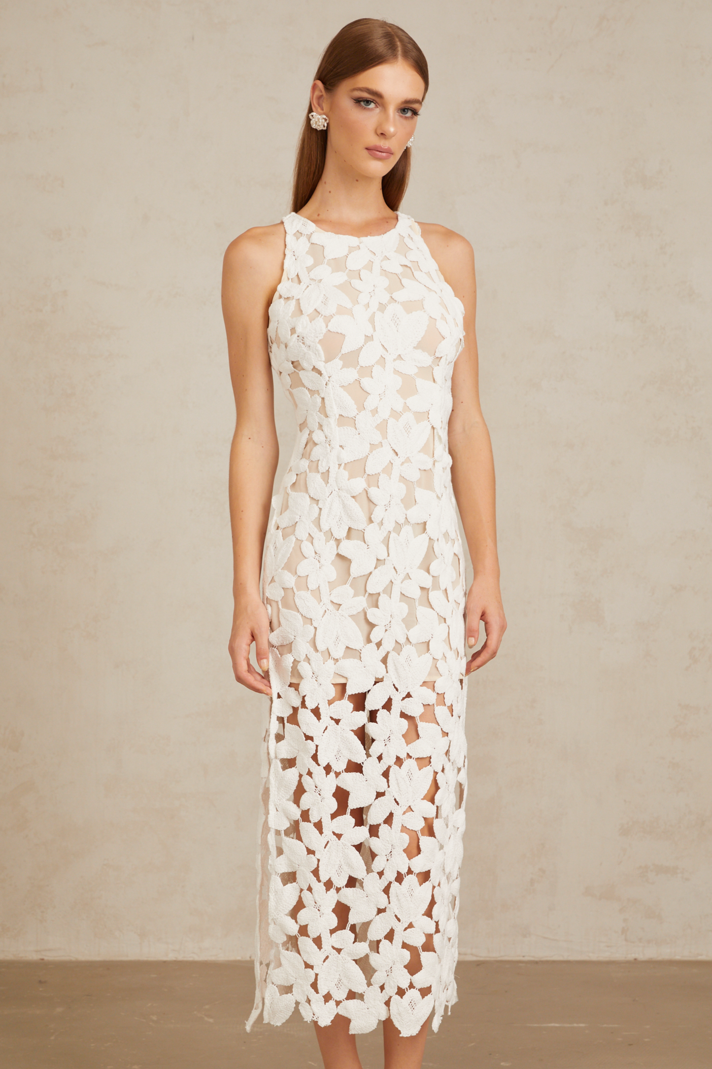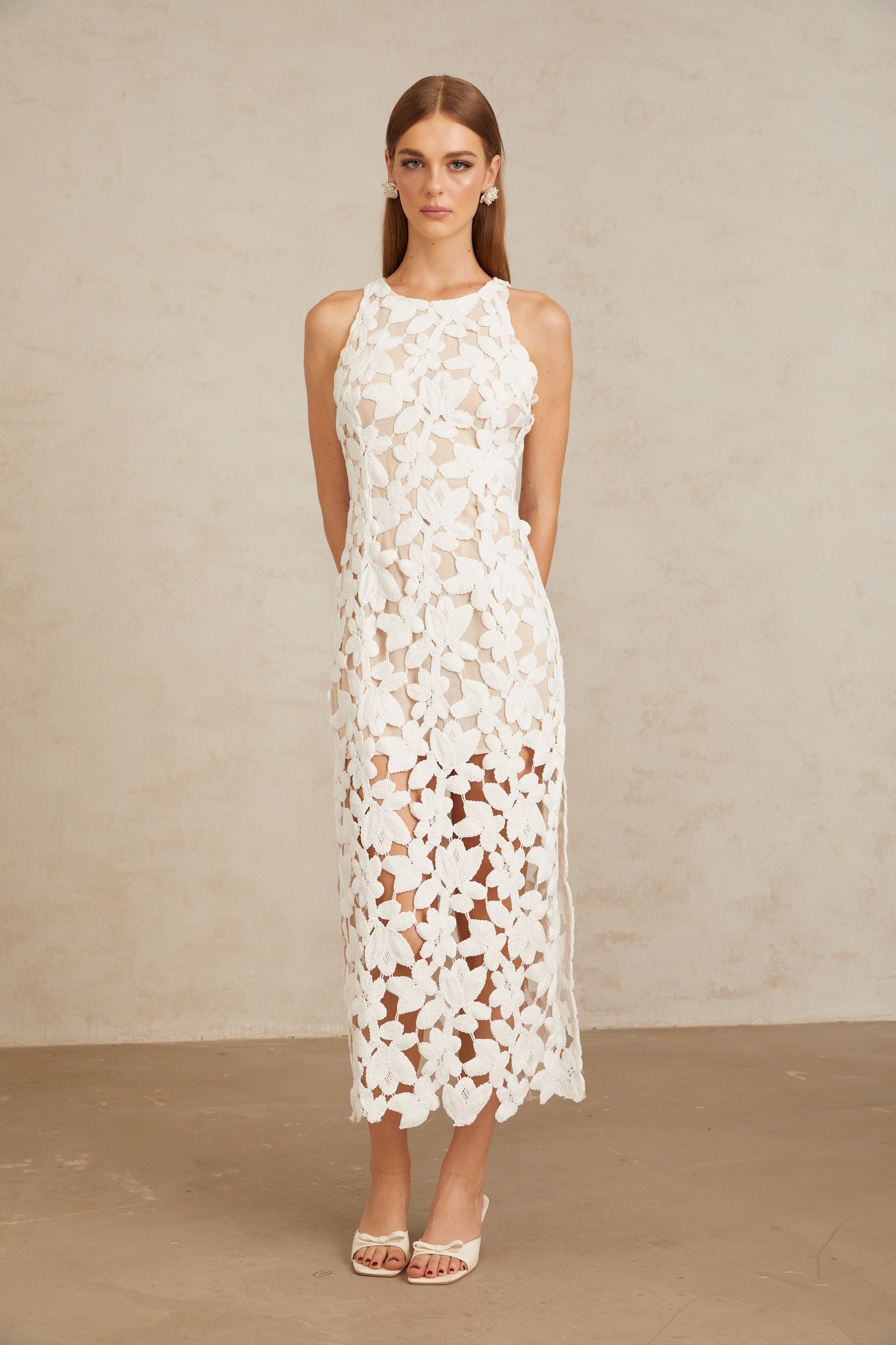 Wilhelmine White Cutout Embroidered Floral Midi Dress