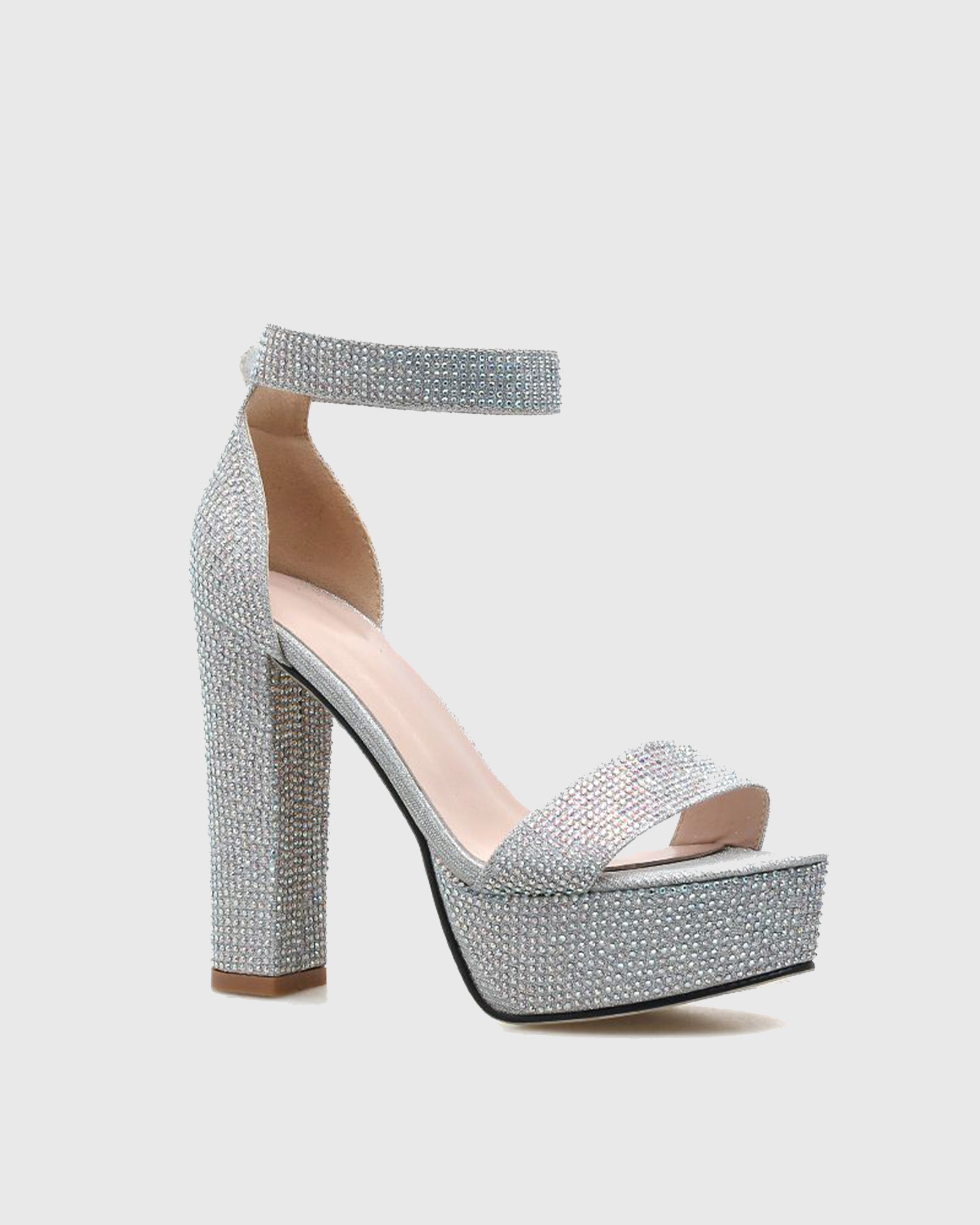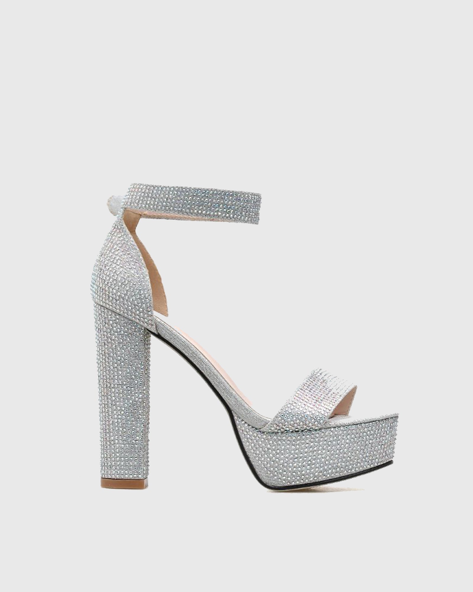 Elevate your style with our Xiu Rhinestone Strap Platform Sandals! These sandals feature delicate rhinestones on the strap and a platform for added height and comfort. Perfect for any occasion, these sandals will make you feel confident and glamorous. Step into luxury today!